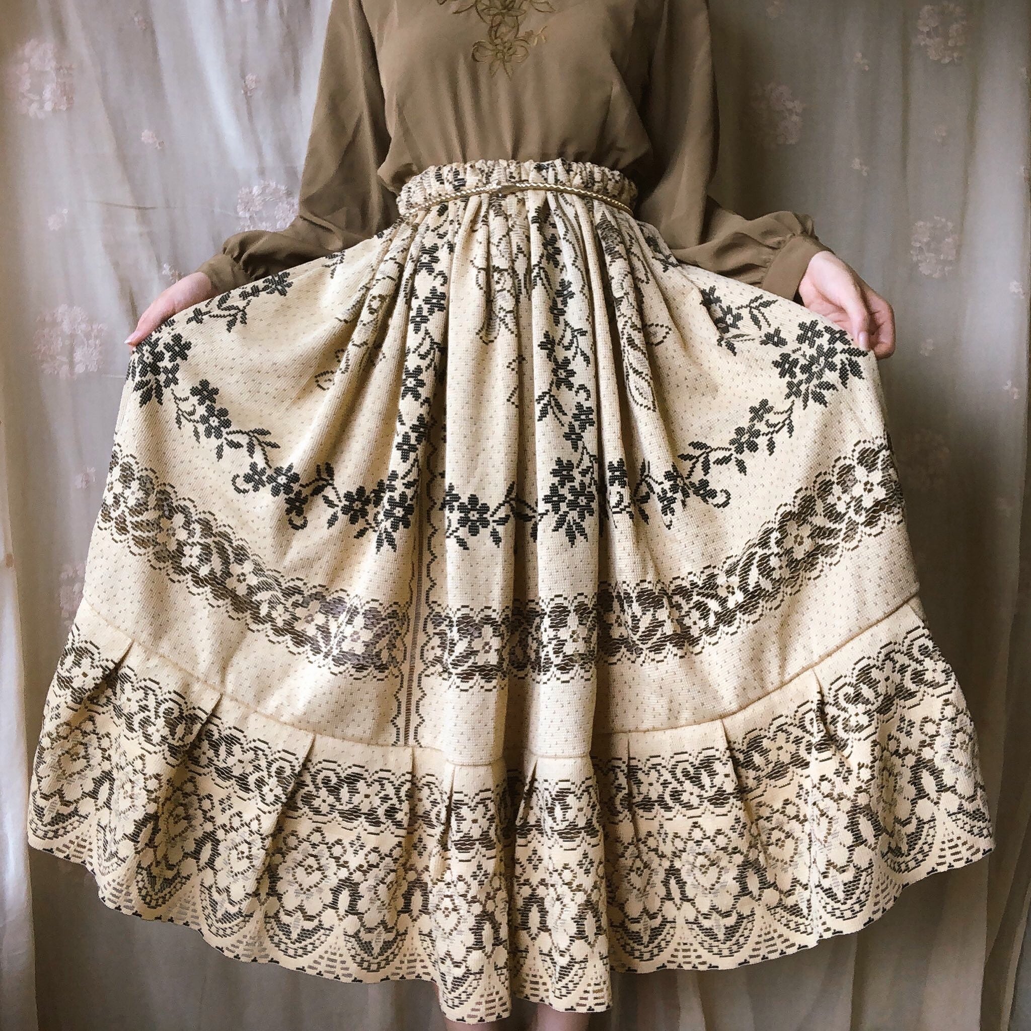 ベージュ×ブラウンの厚手レースの生地をふんだんに使用したボリュームたっぷりのスカート。
