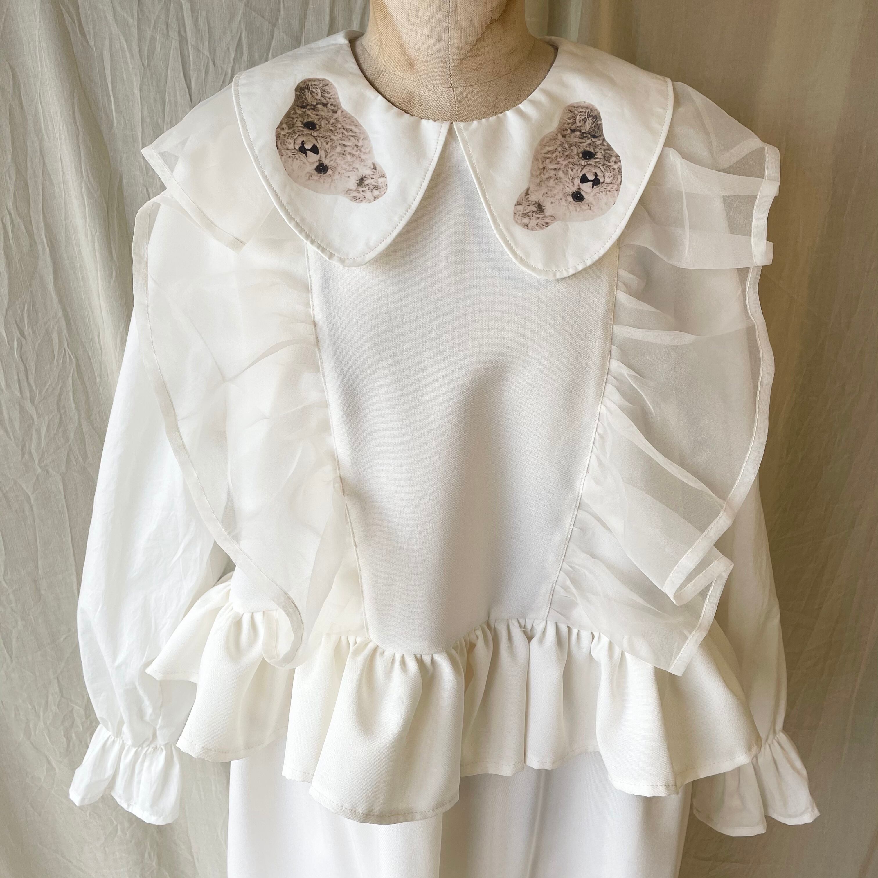 オリジナルプリントのテディベア襟が可愛いです。