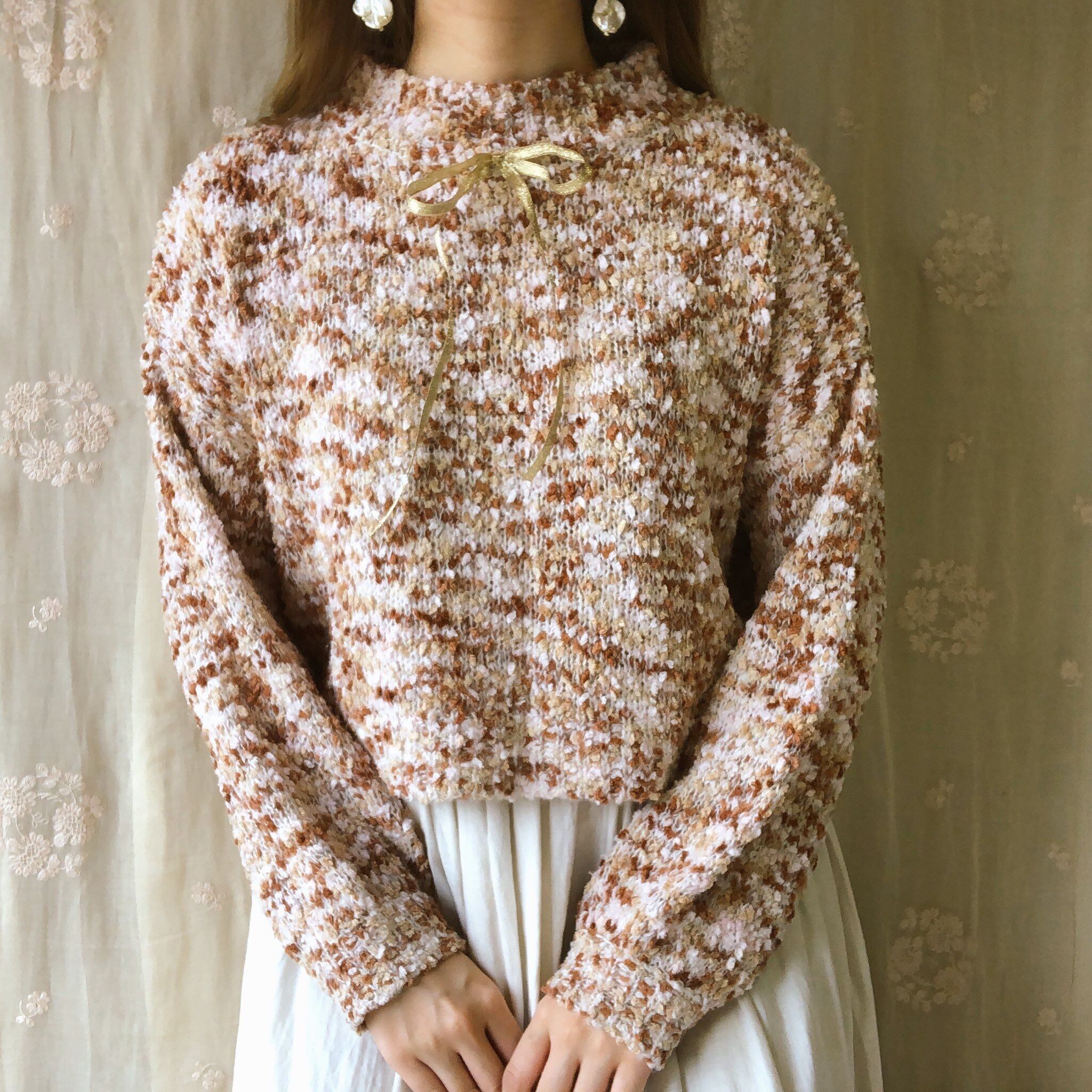 淡いピンク×茶色に胸元のゴールドリボンとっても可愛いです。