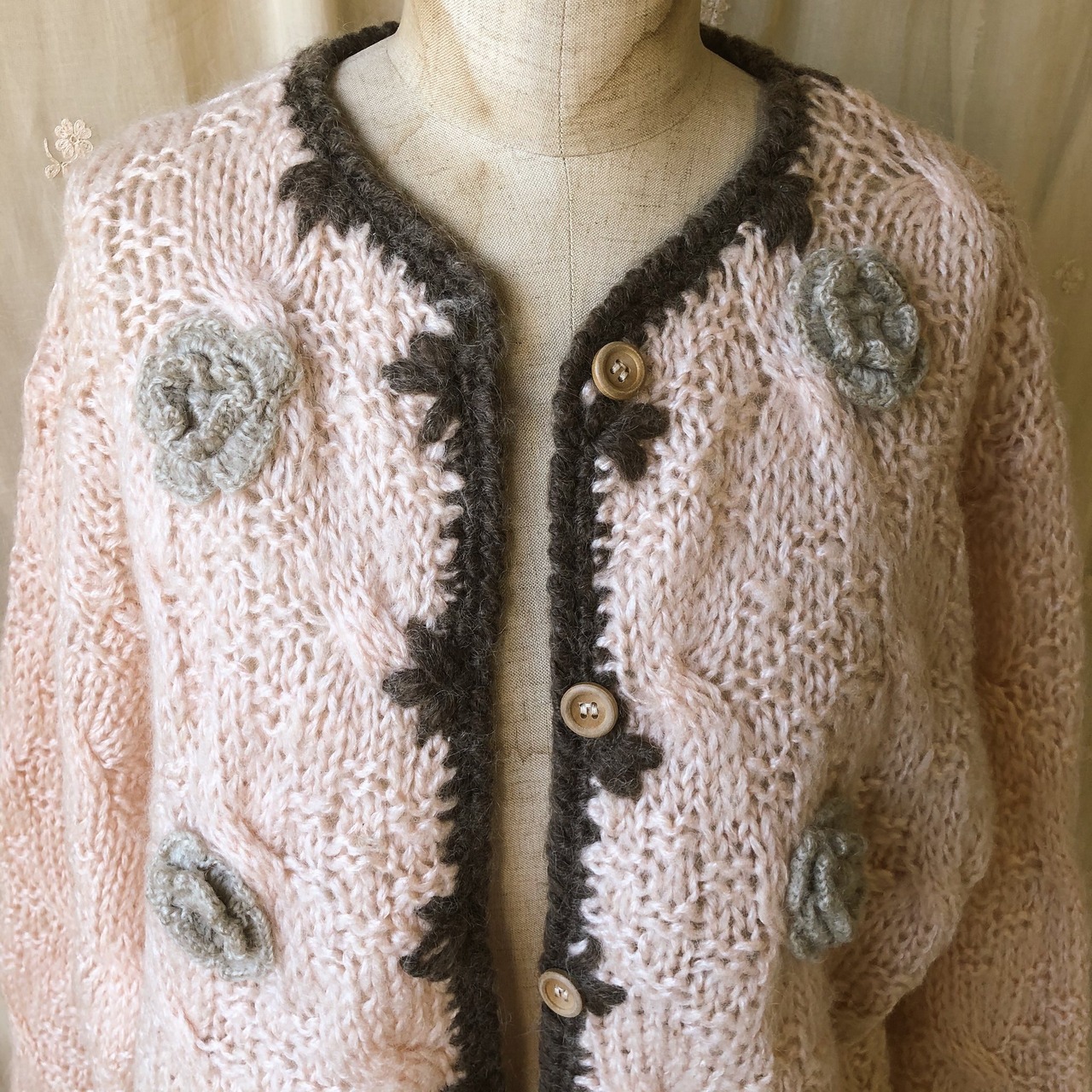 木のボタンや立体的なニットの薔薇がとっても可愛いです。