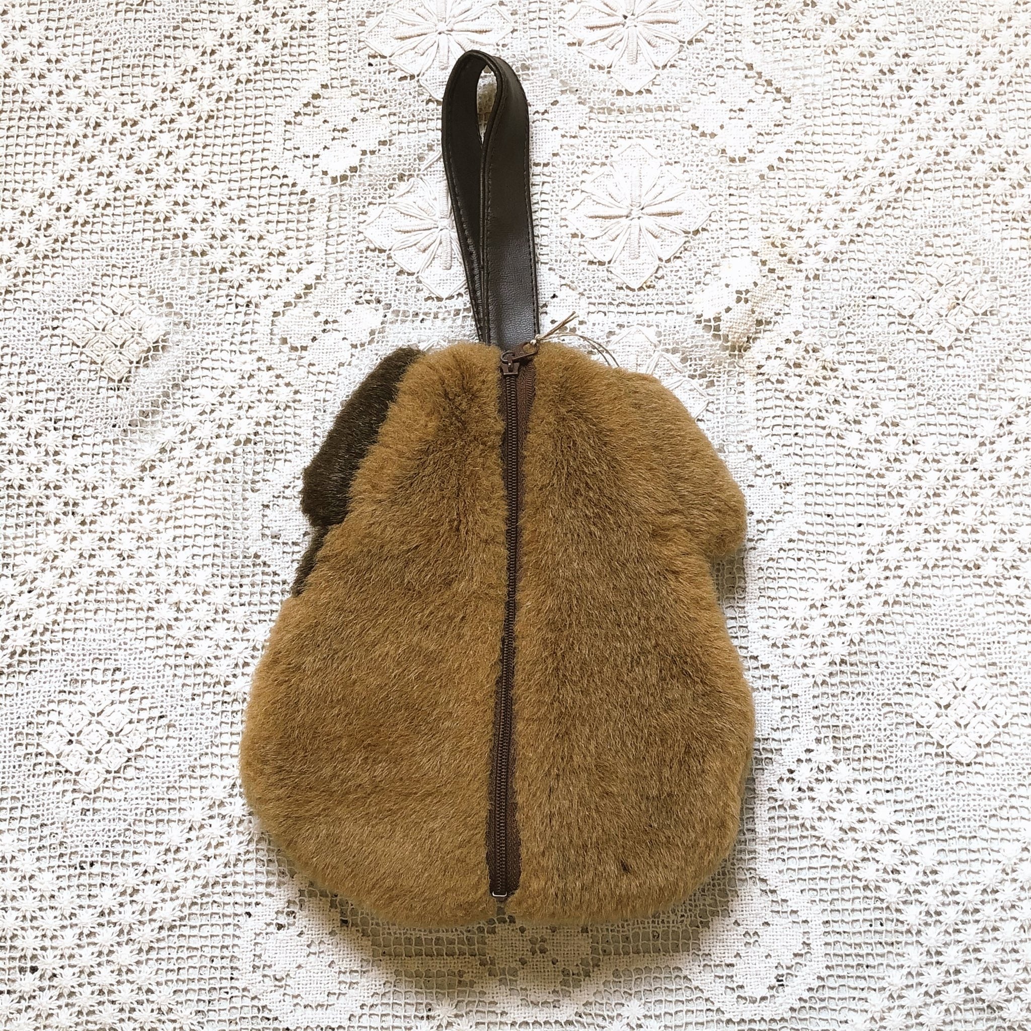 わんこの顔みたいな、後ろ姿みたいなデザインのハンドバッグ。