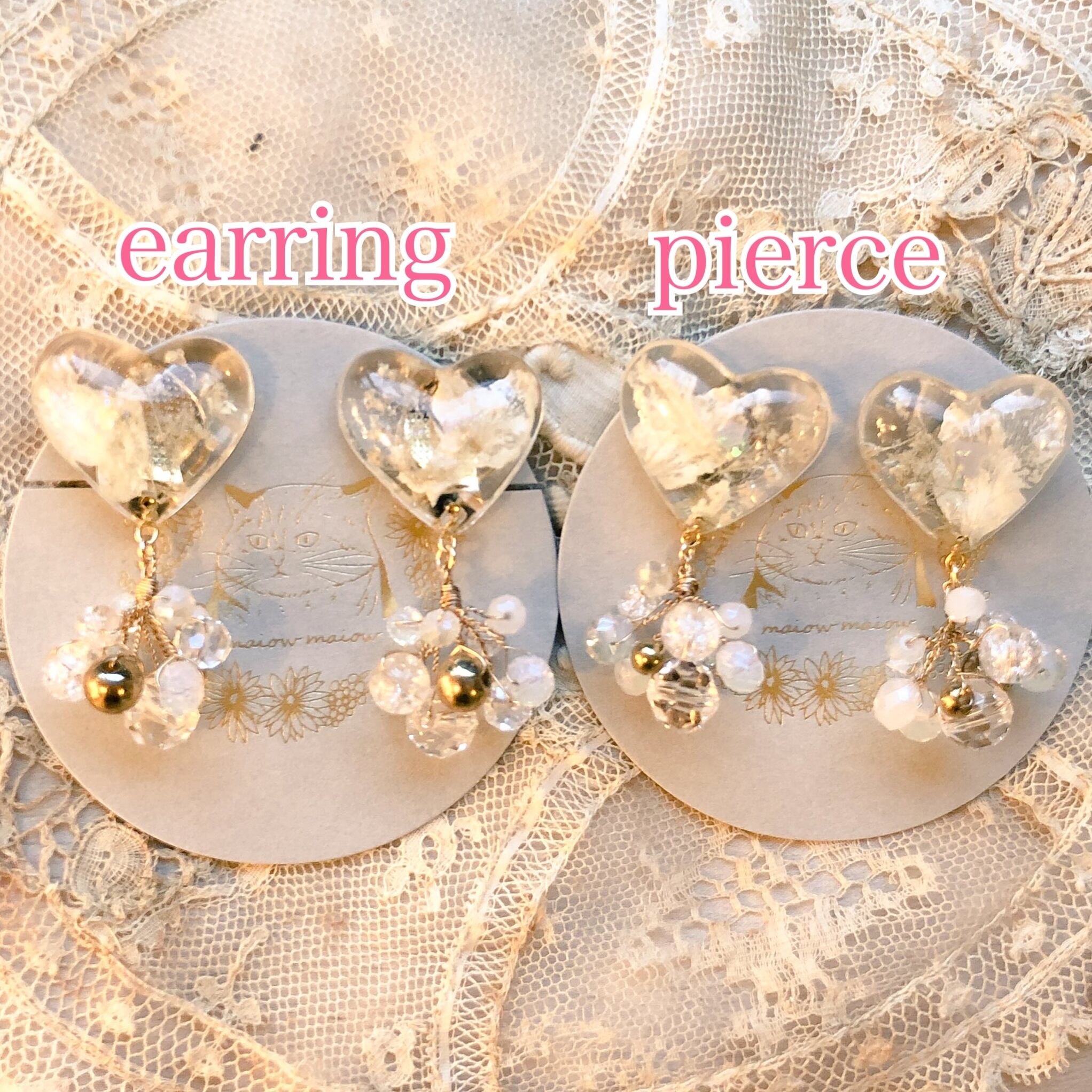 イヤリング・ピアス共装飾は同じデザインですがハンドメイドのためお花の入り方等個体差があります。