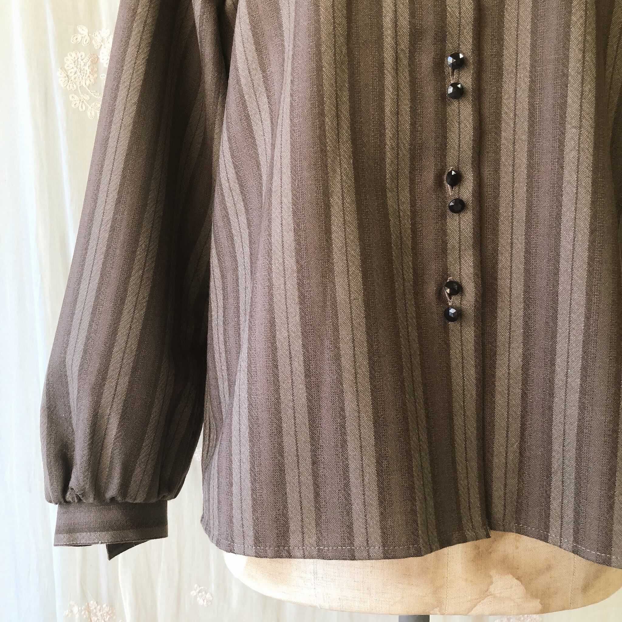 黒の小さいvintageボタンが縦に並んでいて、袖も少しふっくらした形でシンプルですがとても可愛いです。
