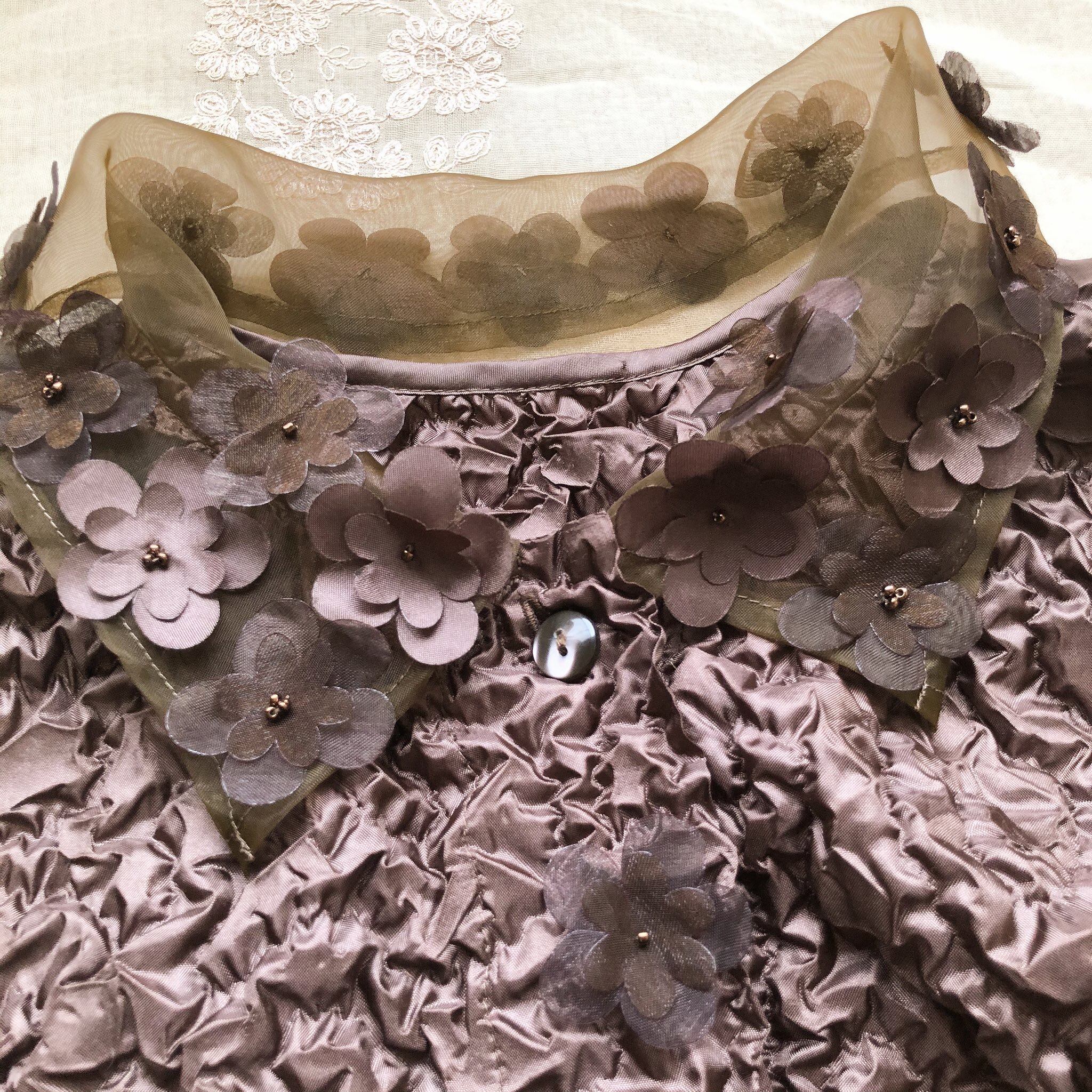 襟部分はオーガンジーに立体的なお花がたくさん縫い付けられたとっても可愛いです。