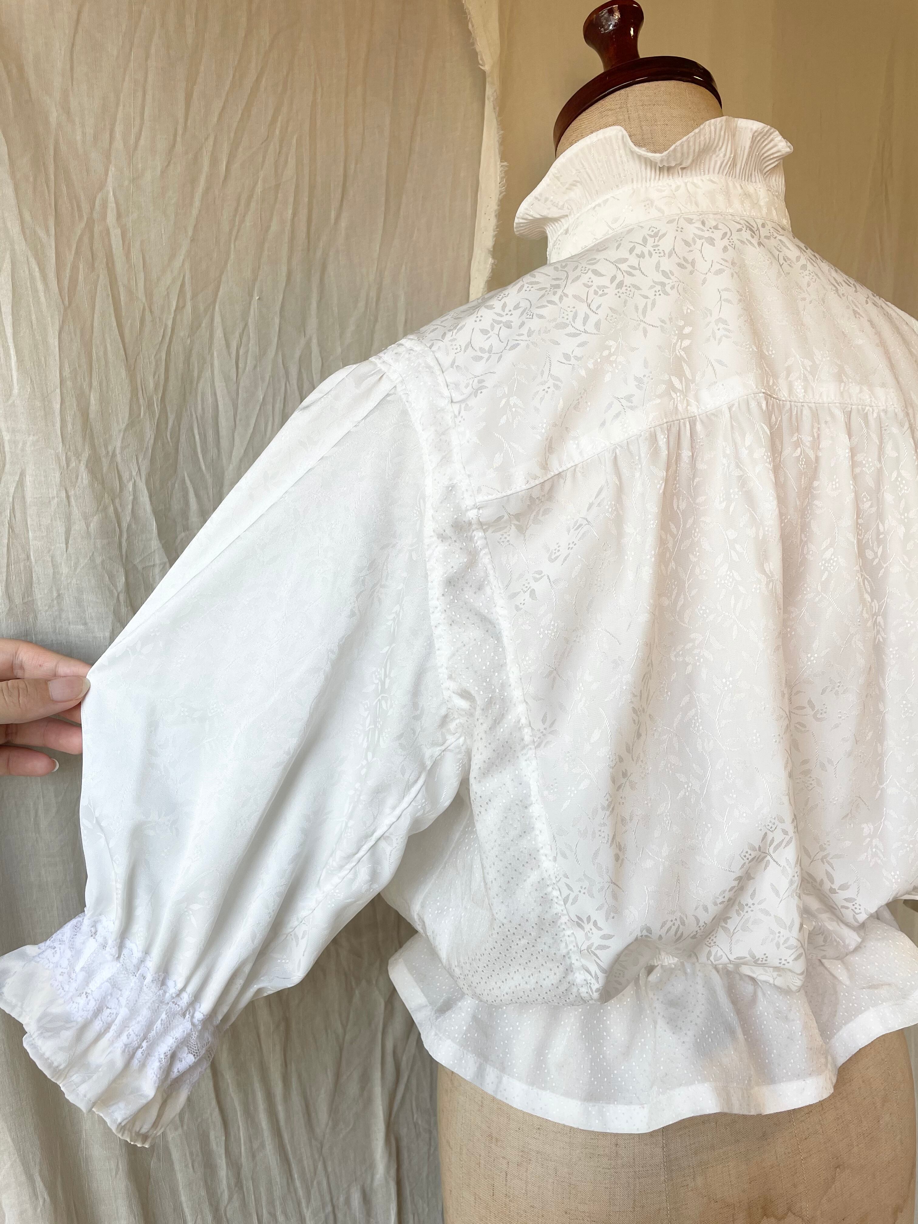 vintageブラウスをショート丈パフスリーブの可愛いシルエットにリメイクした一着。