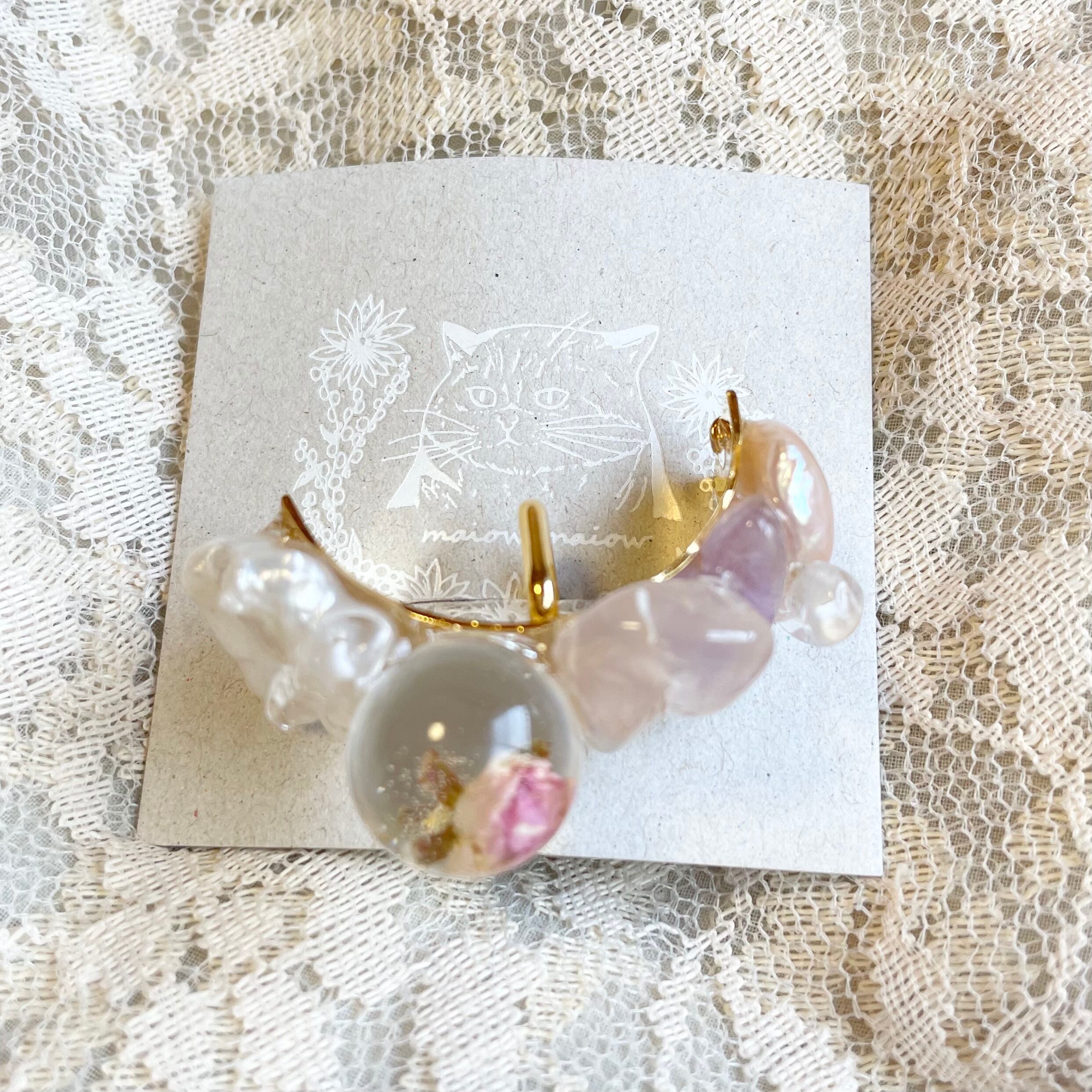 樹脂パーツからハンドメイドで制作した繊細なデザインのアクセサリー。