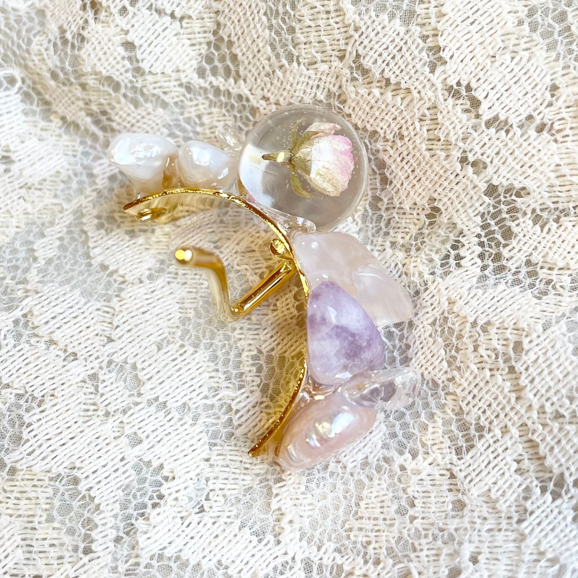 お花や鉱石を閉じ込めたオリジナルパーツが可愛いポニーフックです。