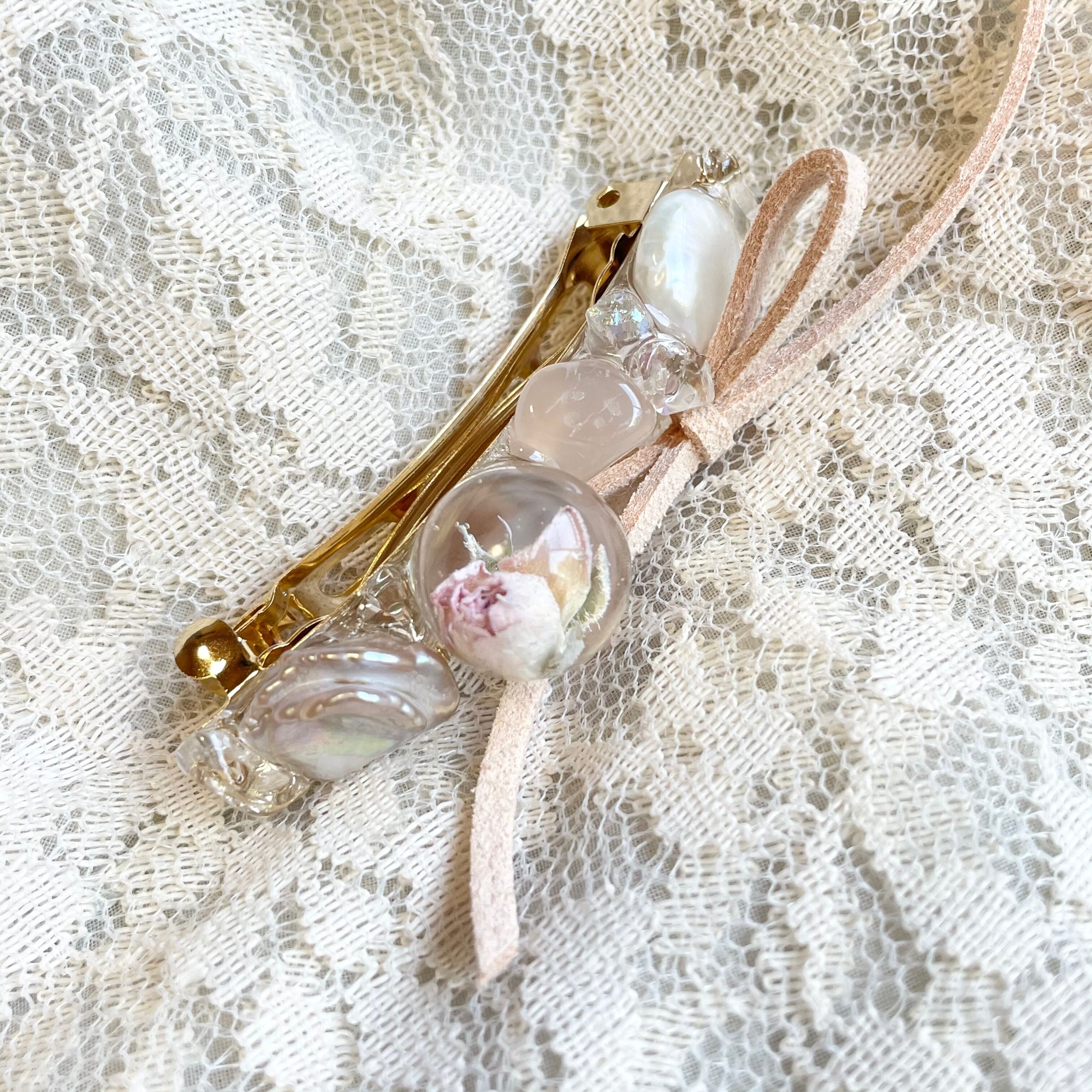 お花や鉱石を閉じ込めたオリジナルパーツが可愛いバレッタです。