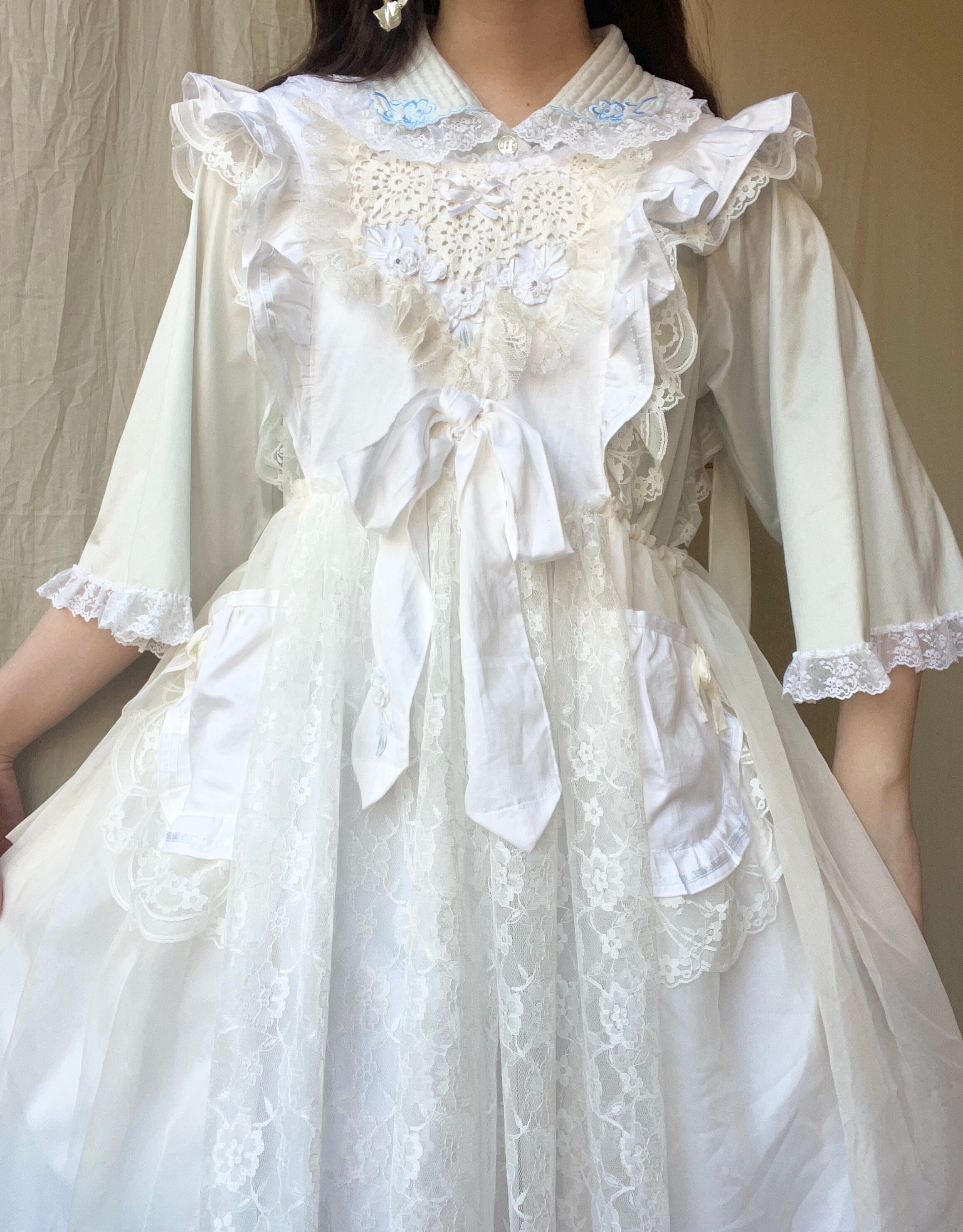 お花部分や肩とポッケのフリルにはとても淡い水色が入っています。