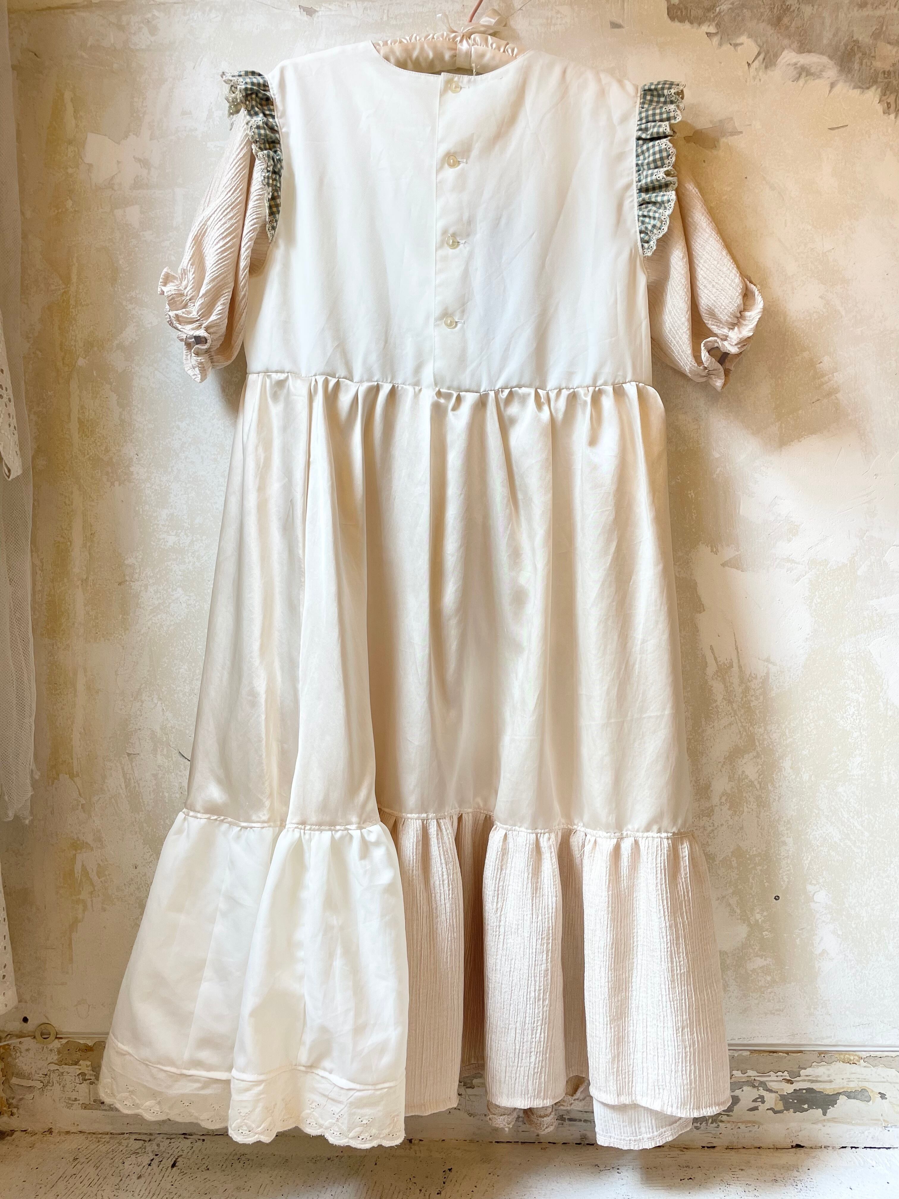 刺繍で描かれたぞうさんが可愛いvintageブラウスをメインに制作したワンピース。