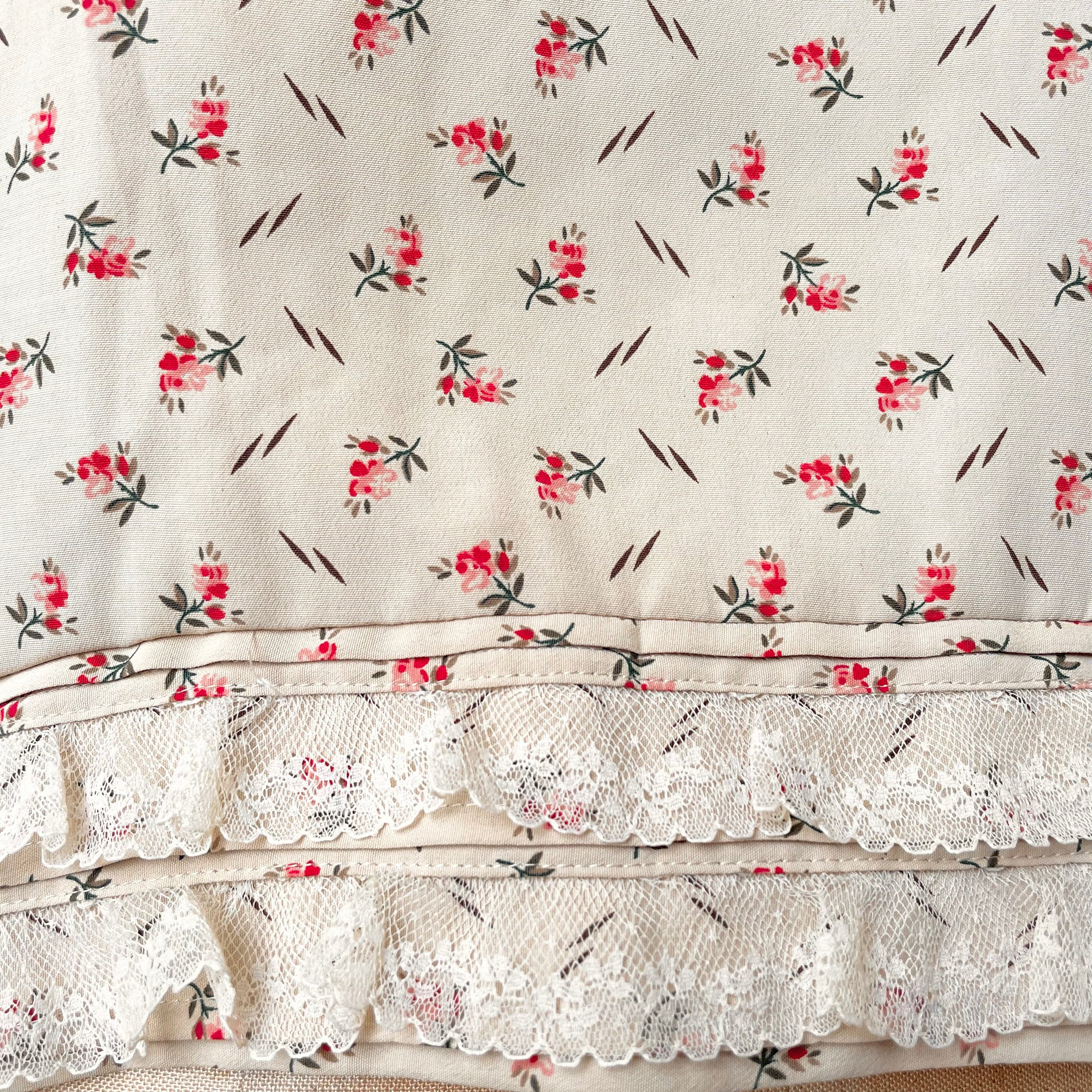 大きな共布のリボンにベージュレースの縁取がとっても可愛いです。