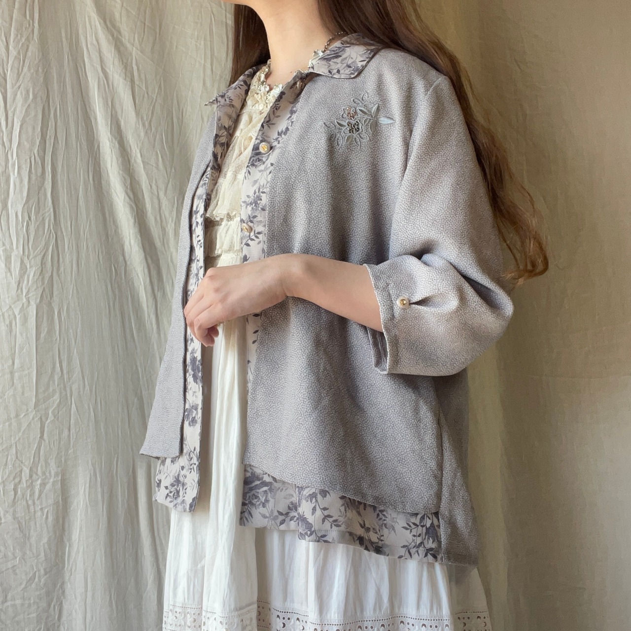 ブルーローズ模様のブラウスと重ね着をしているようなデザインのブラウス 。