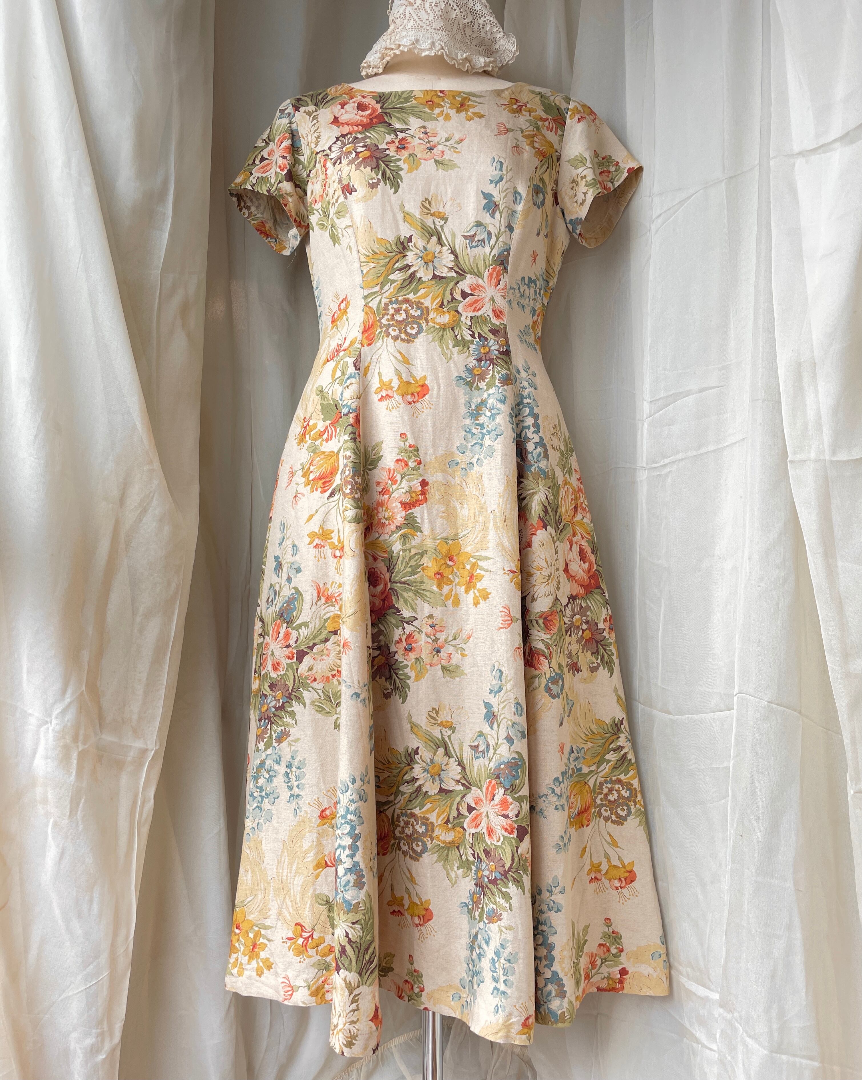 宮殿のカーテンみたいな大きな花柄の生地が可愛いワンピース。