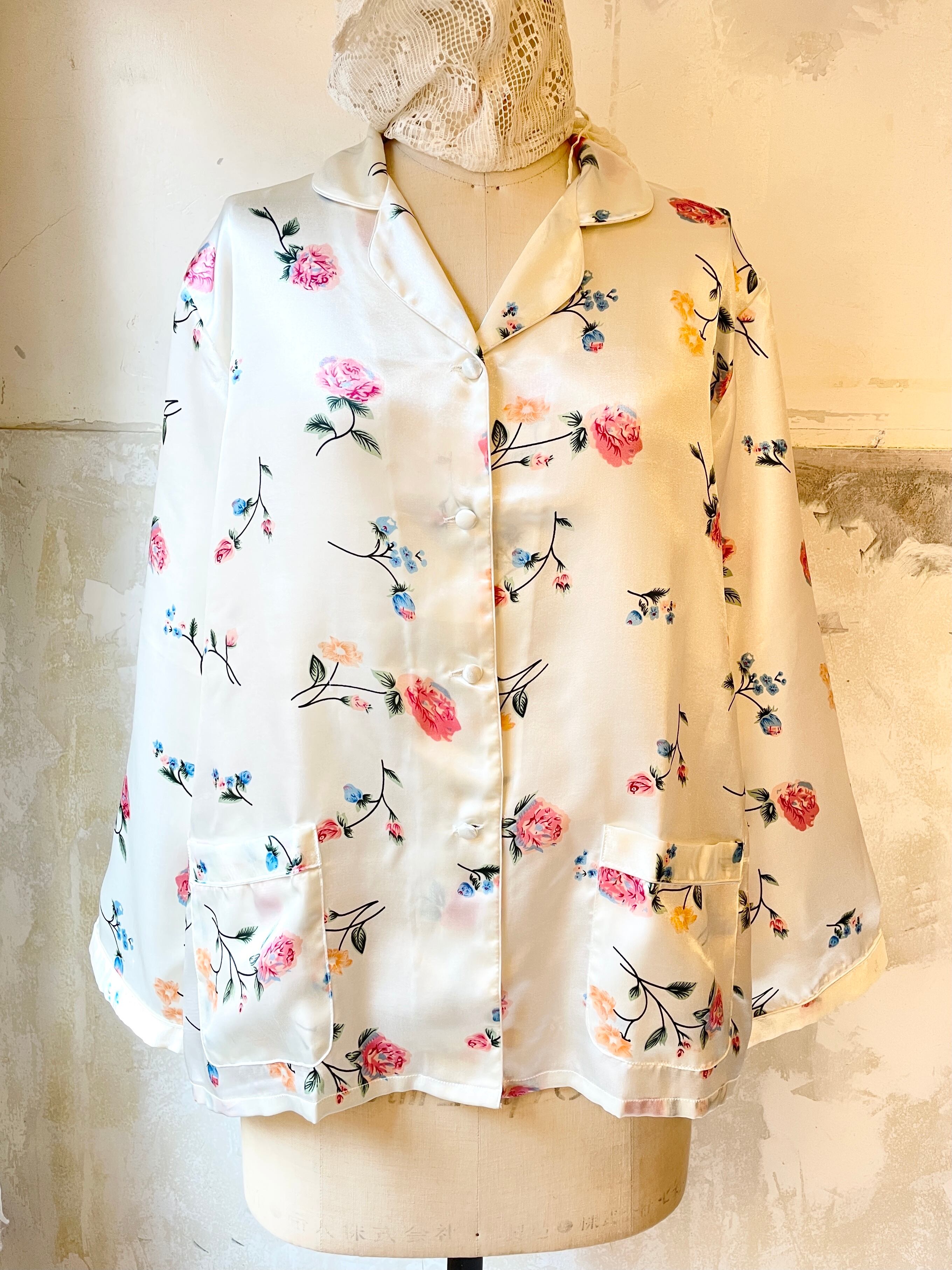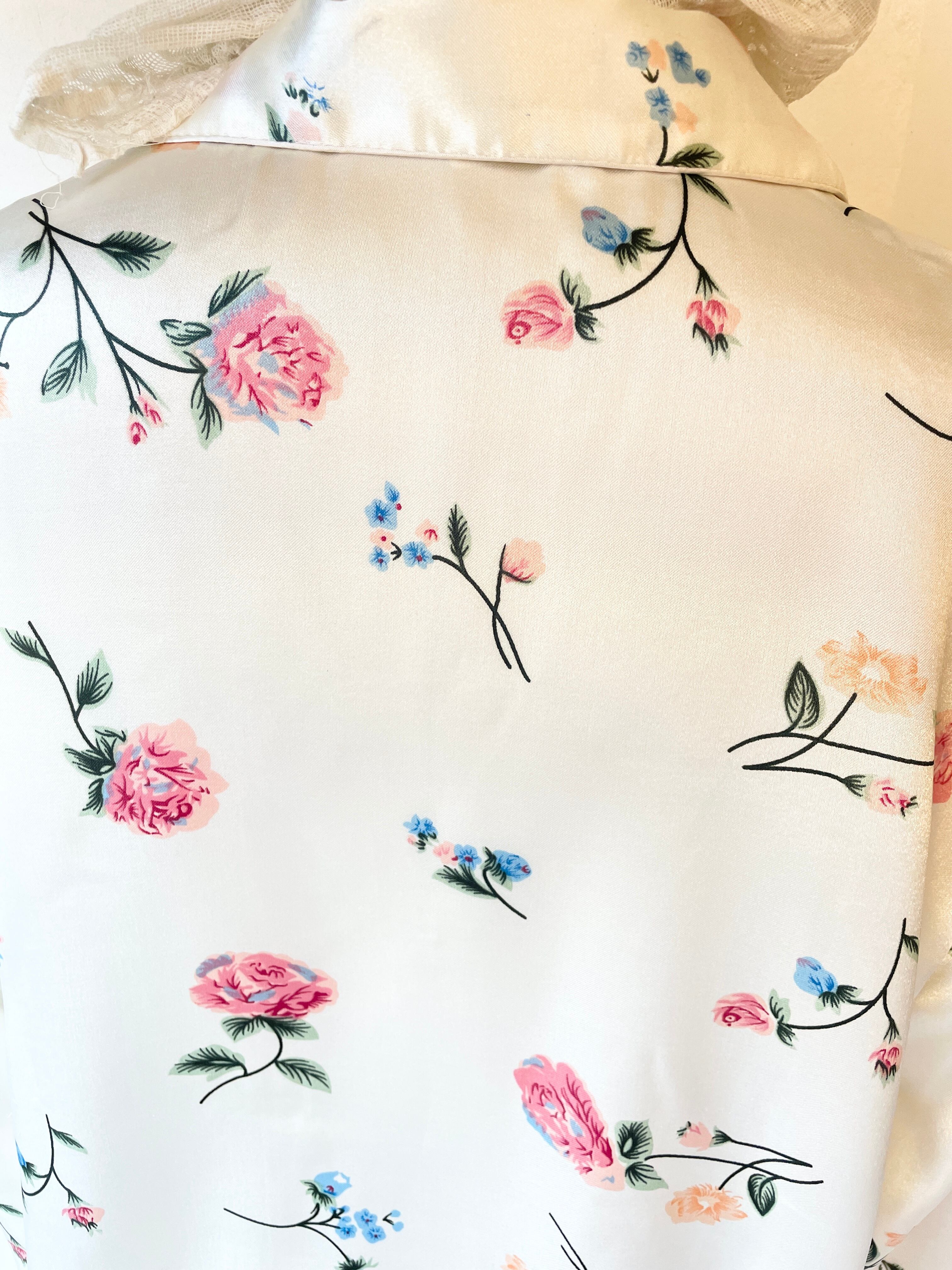 白地ににカラフルすぎない薔薇模様が可愛いガウン。