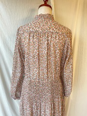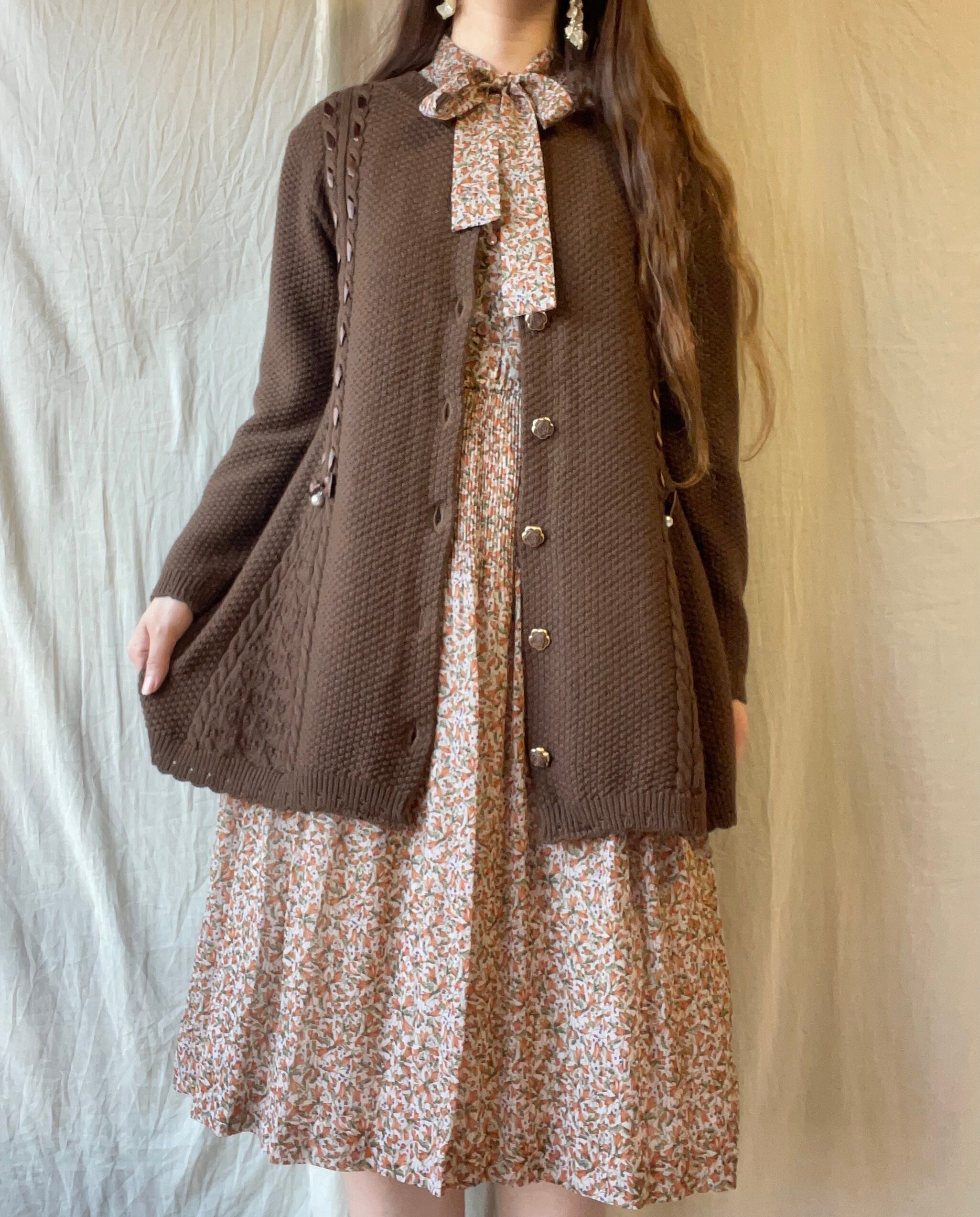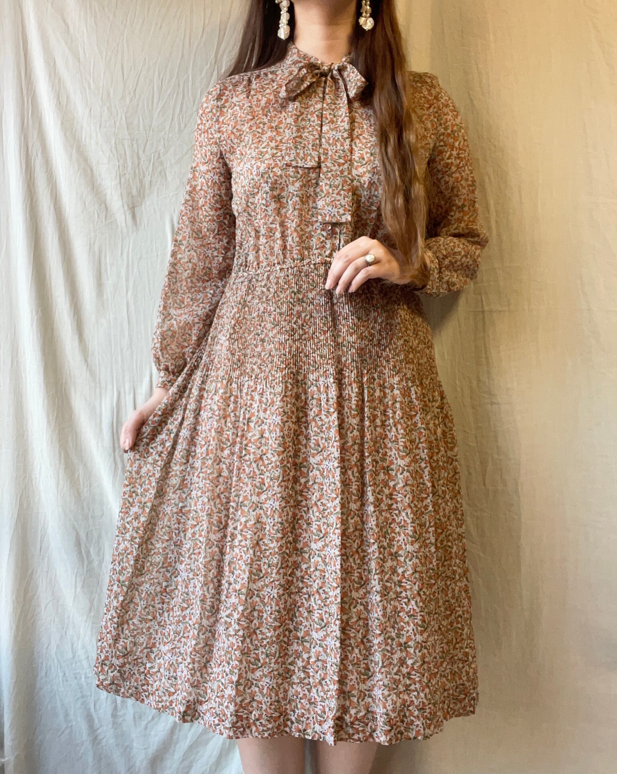 オレンジブラウン系の小花柄が秋らしくて可愛いシフォンプリーツワンピース