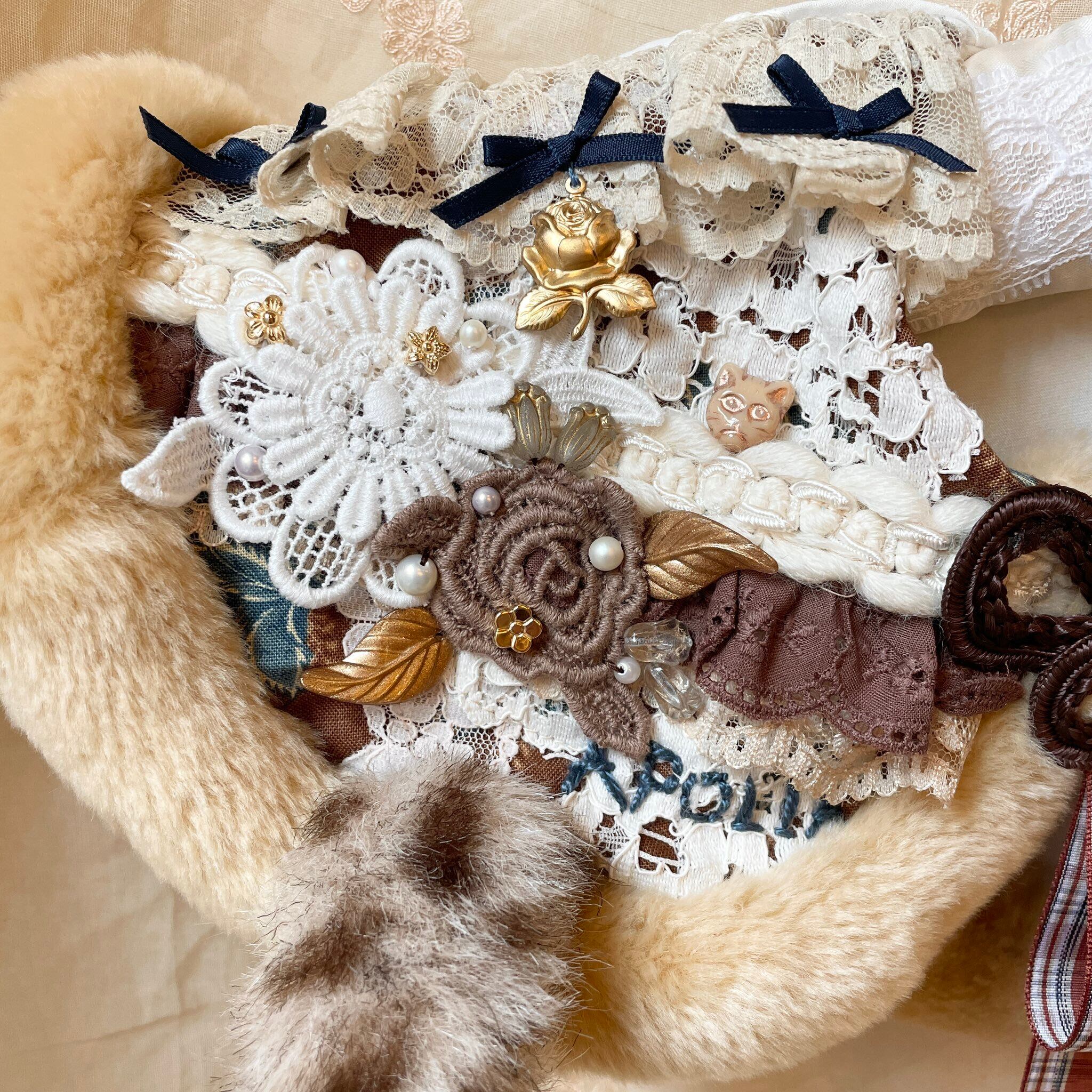 チェシャ猫の尻尾や枯れた時期外れの花々、アリスを連想させるりぼんやblueの差し色達と、眺めているだけでワンダーランドに入れる様なスペシャルアイテム。