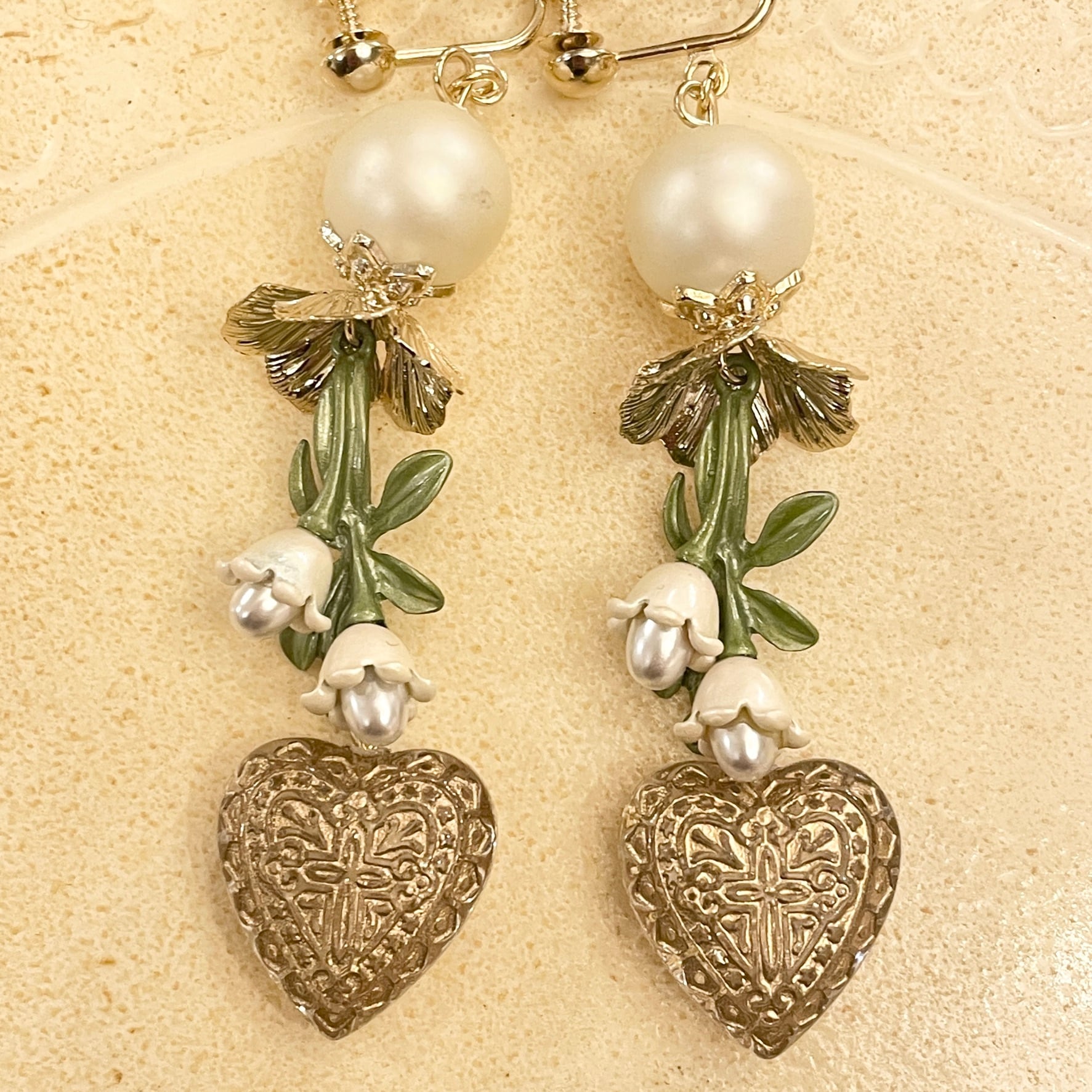 すずらんやハートなどの可愛いパーツを合わせたイヤリング。