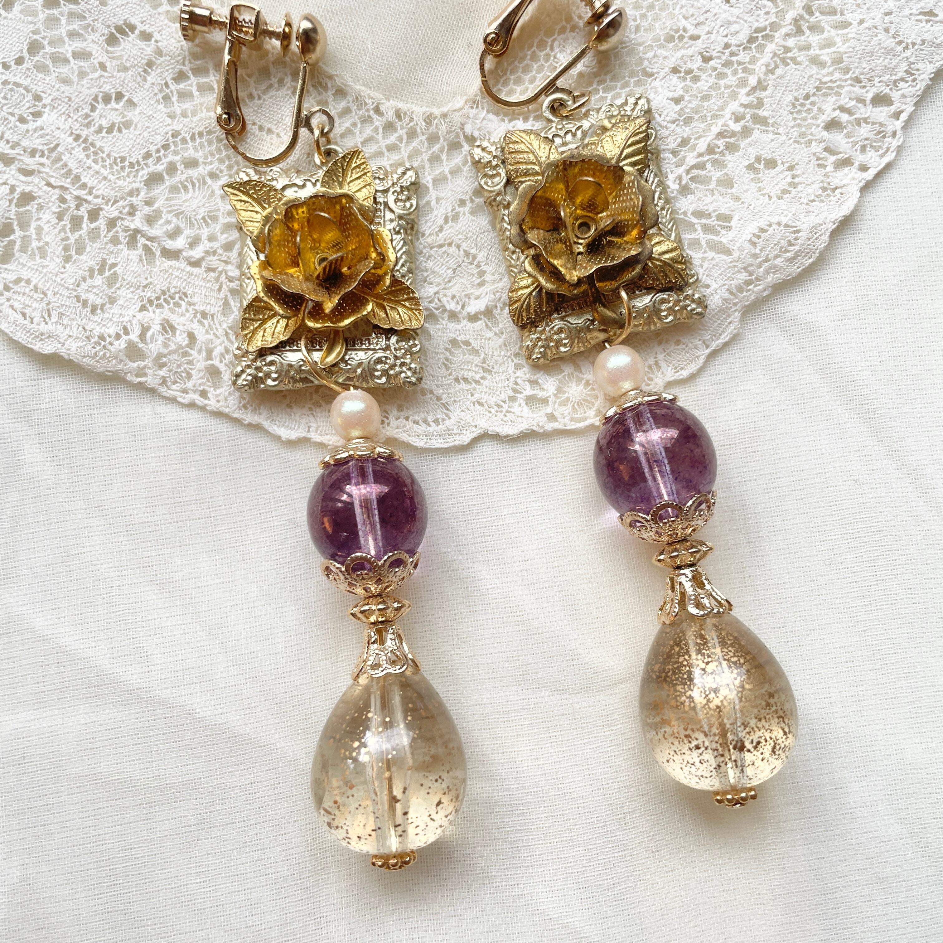 海外で集めたvintageパーツ等も使用して制作された華やかで個性的なデザインがとても可愛いアクセサリーです。