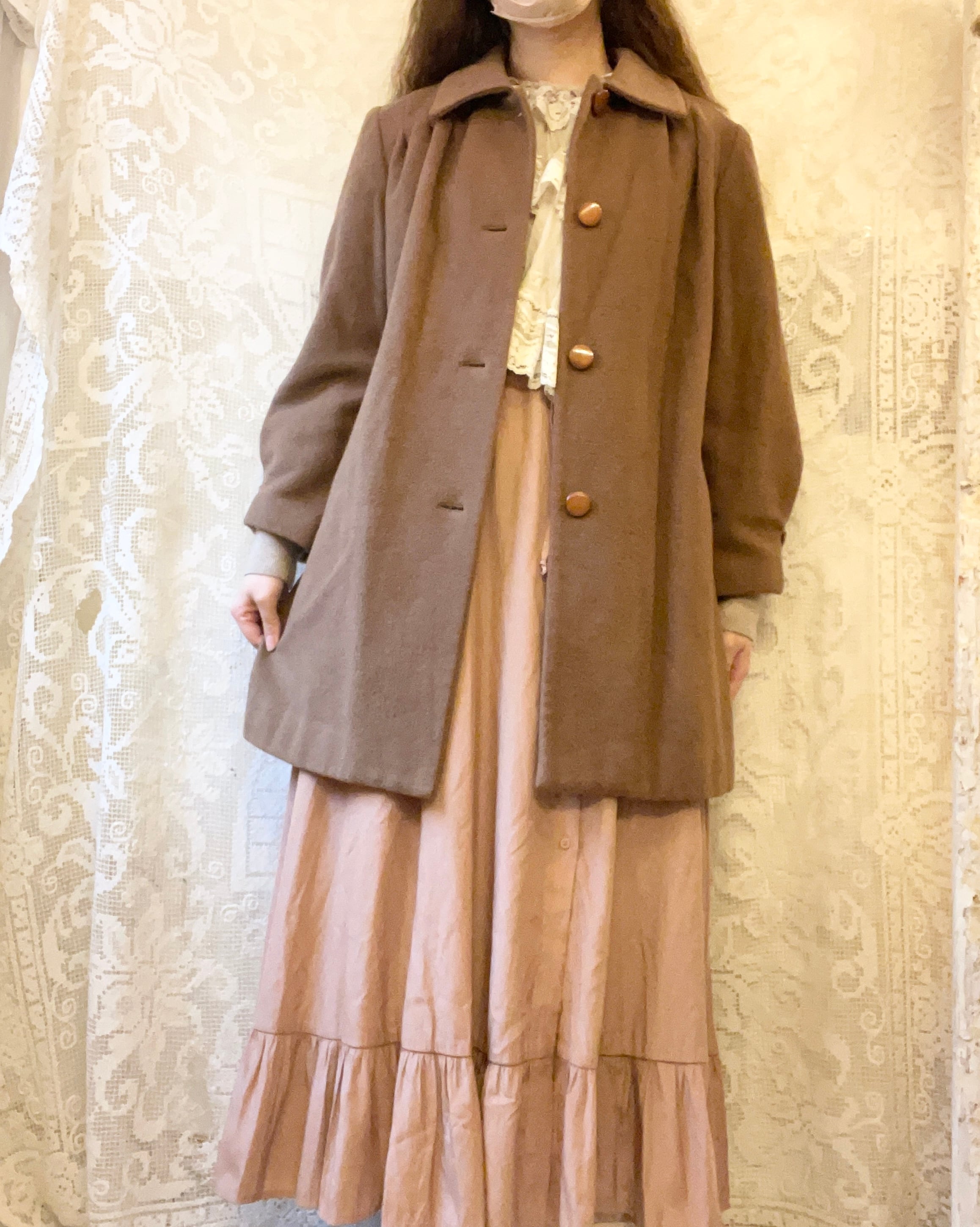温かみのあるブラウンウールのコート。
