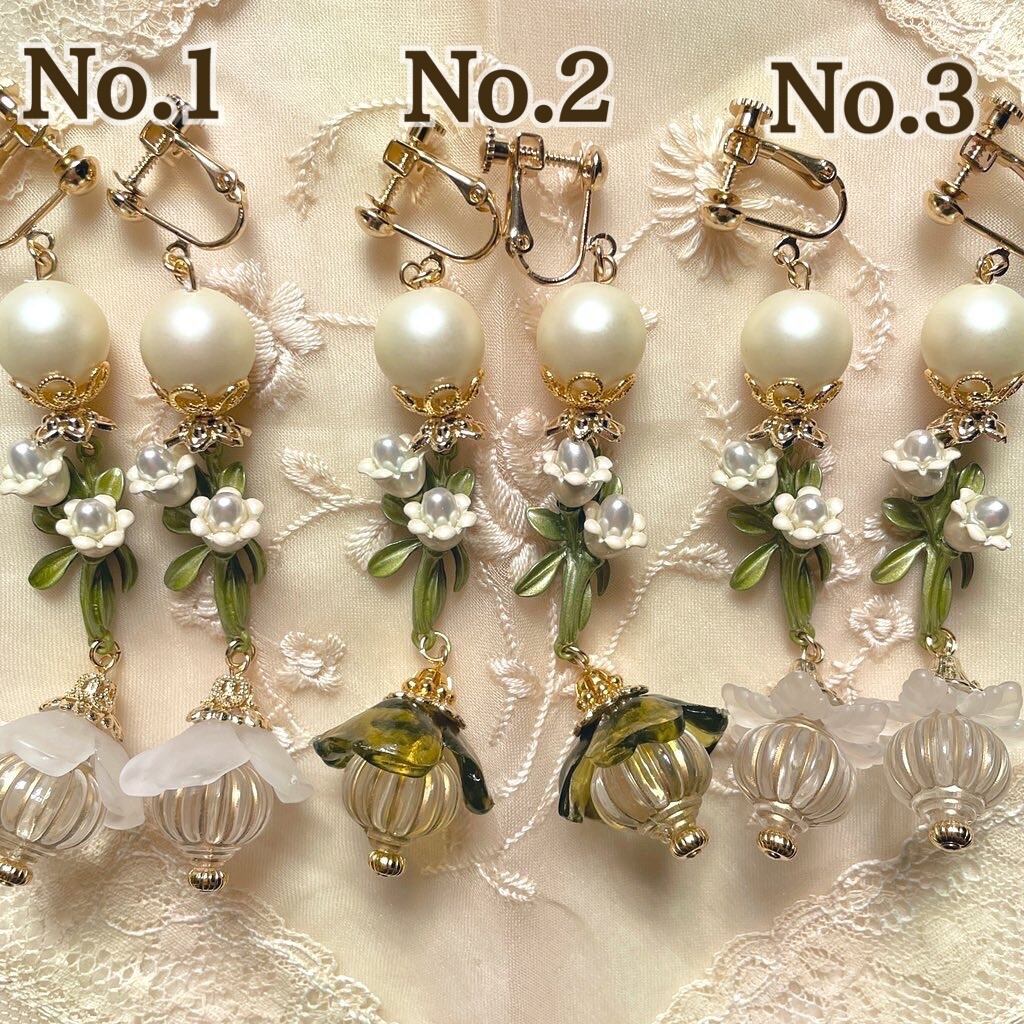 パールやすずらんみたいな繊細で可愛いパーツを合わせたイヤリング。