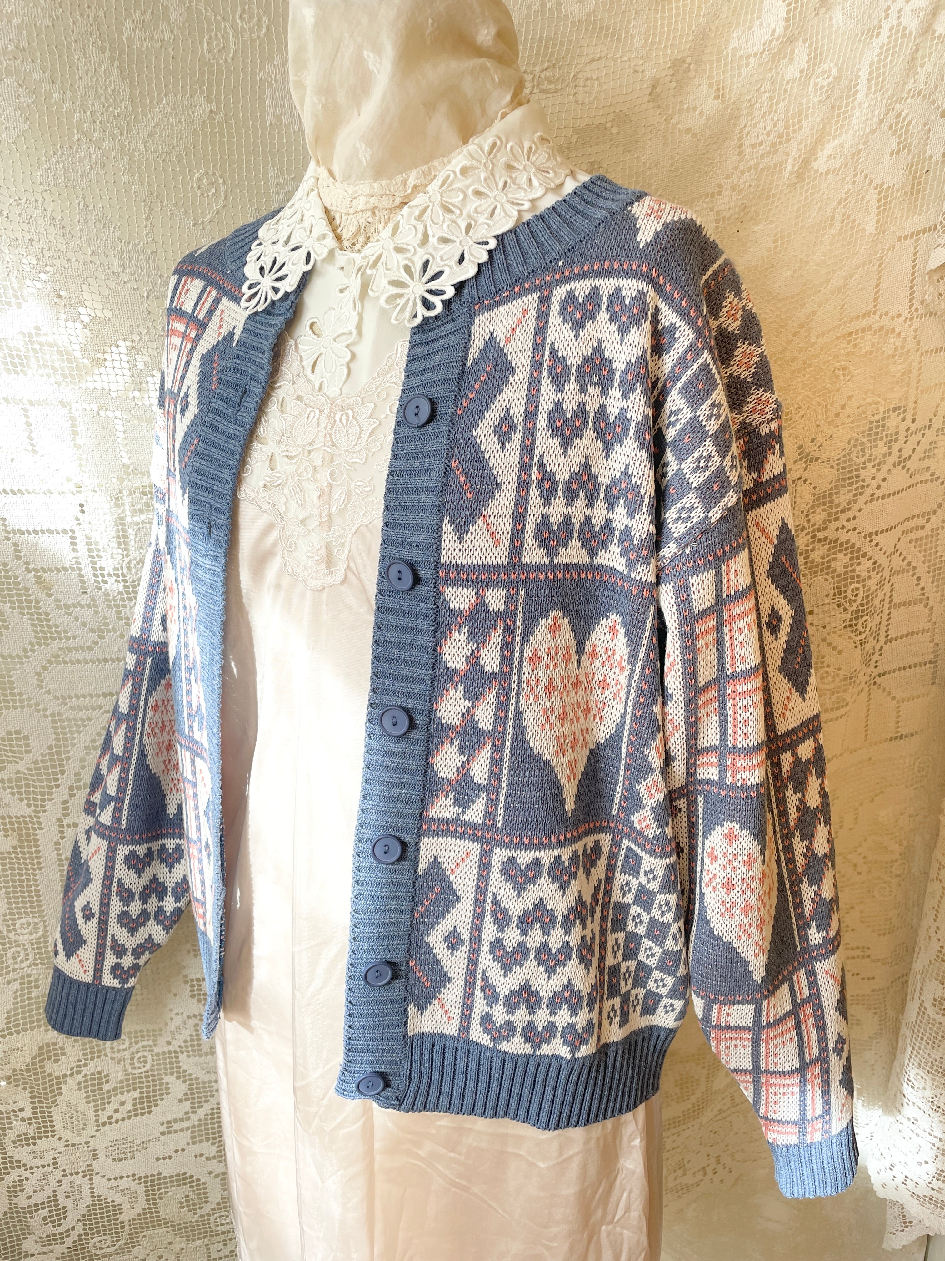 淡いブルーとピンク、春らしいカラーのニットカーディガン。