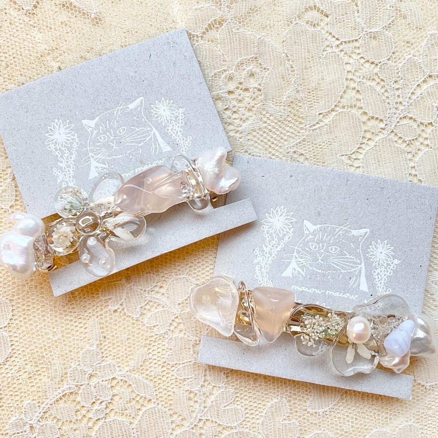 樹脂パーツからハンドメイドで制作した繊細なデザインのアクセサリー。