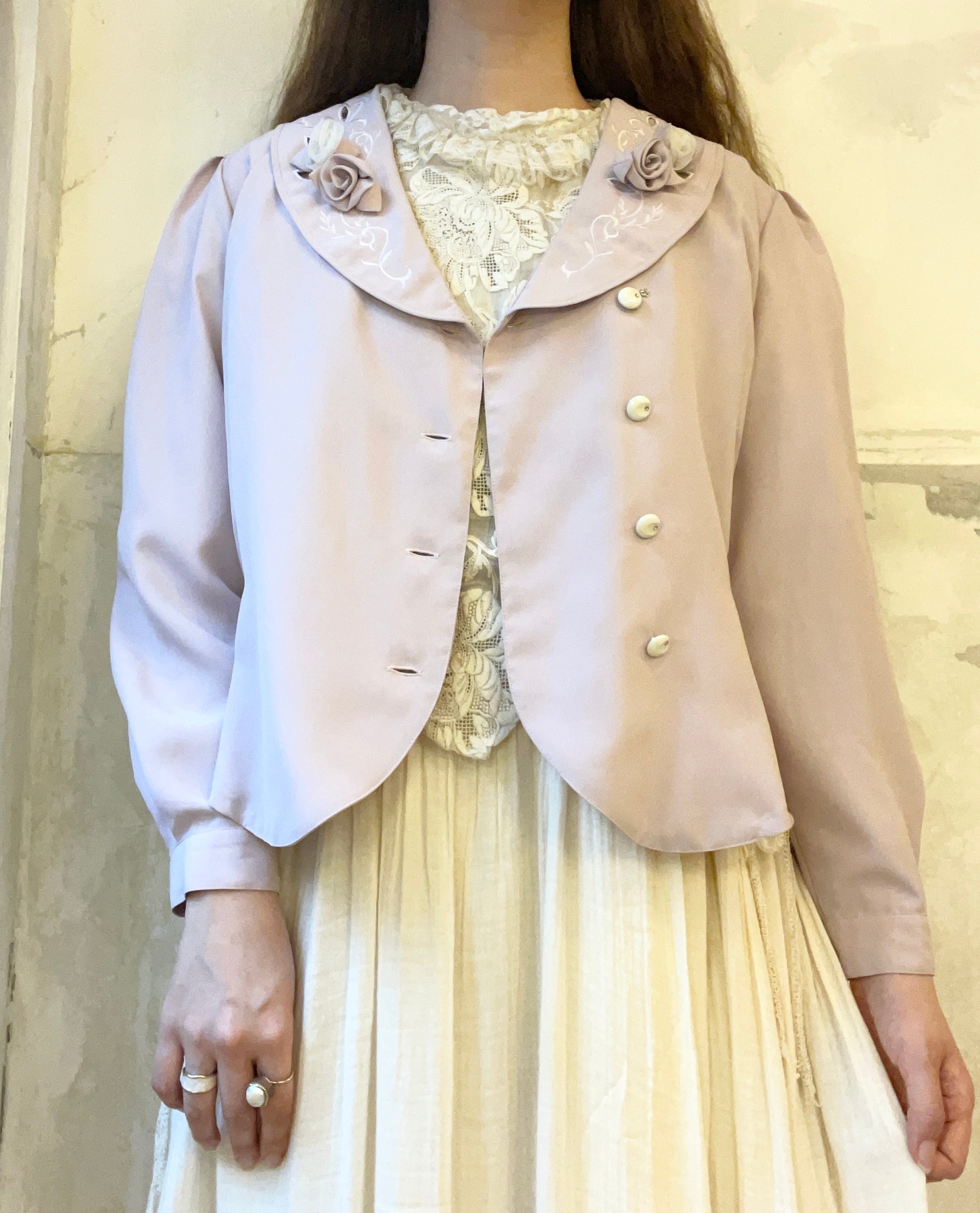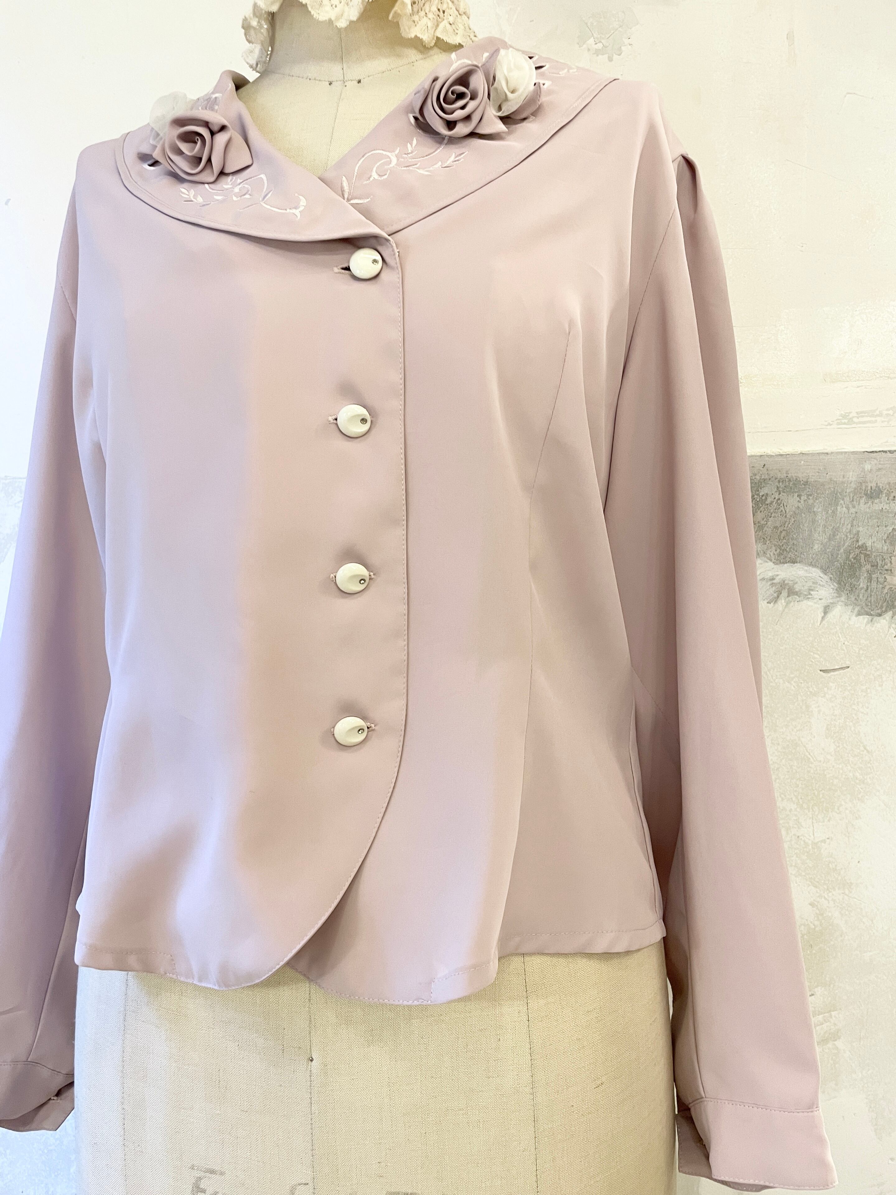 立体的な薔薇や刺繍の襟が可愛いブラウス。