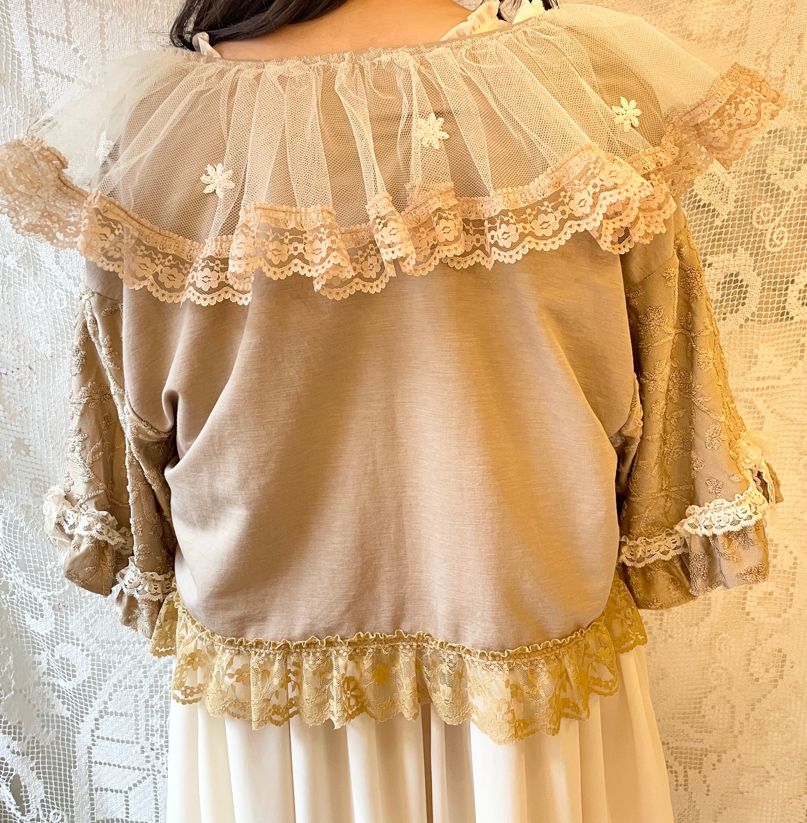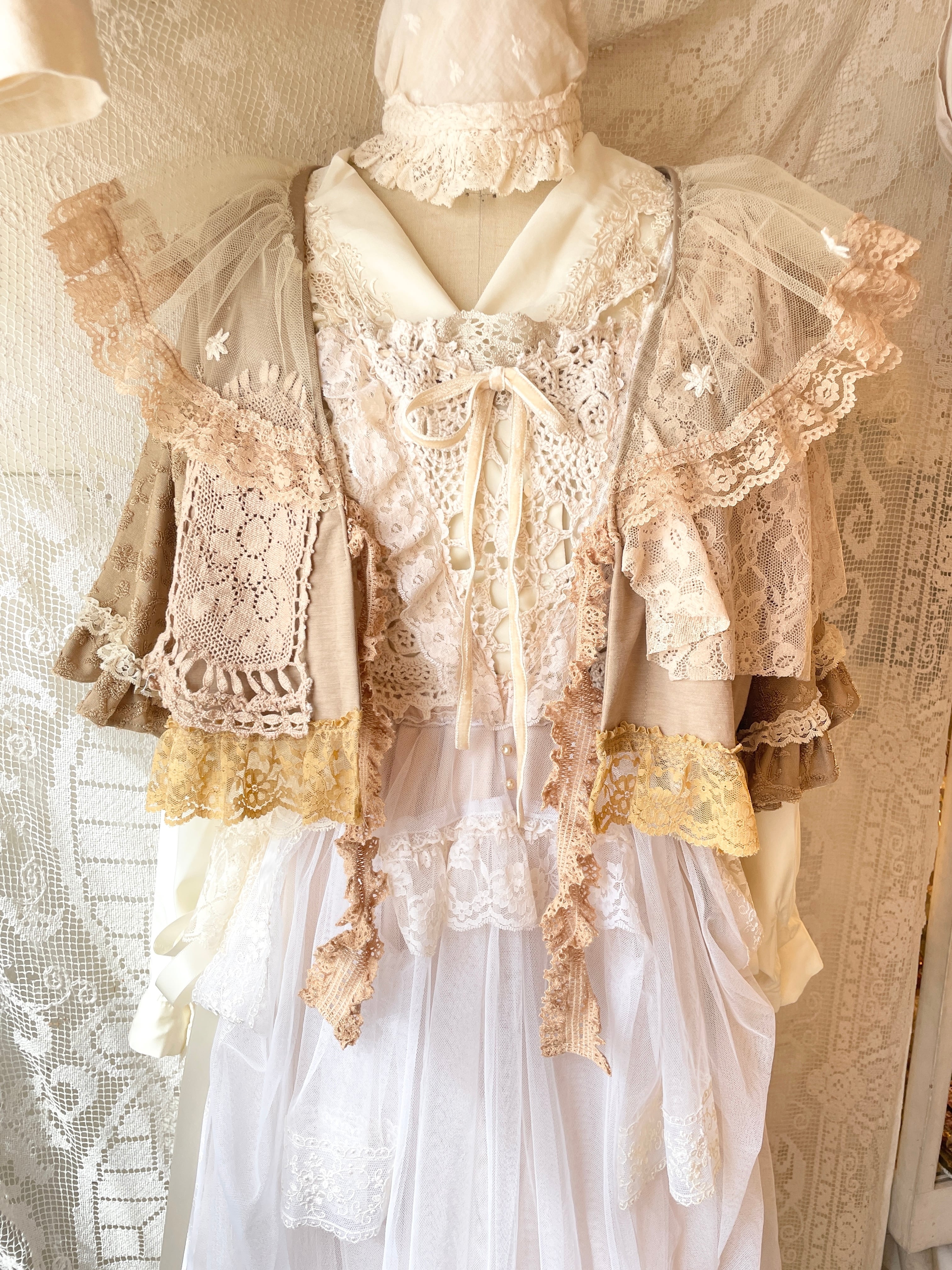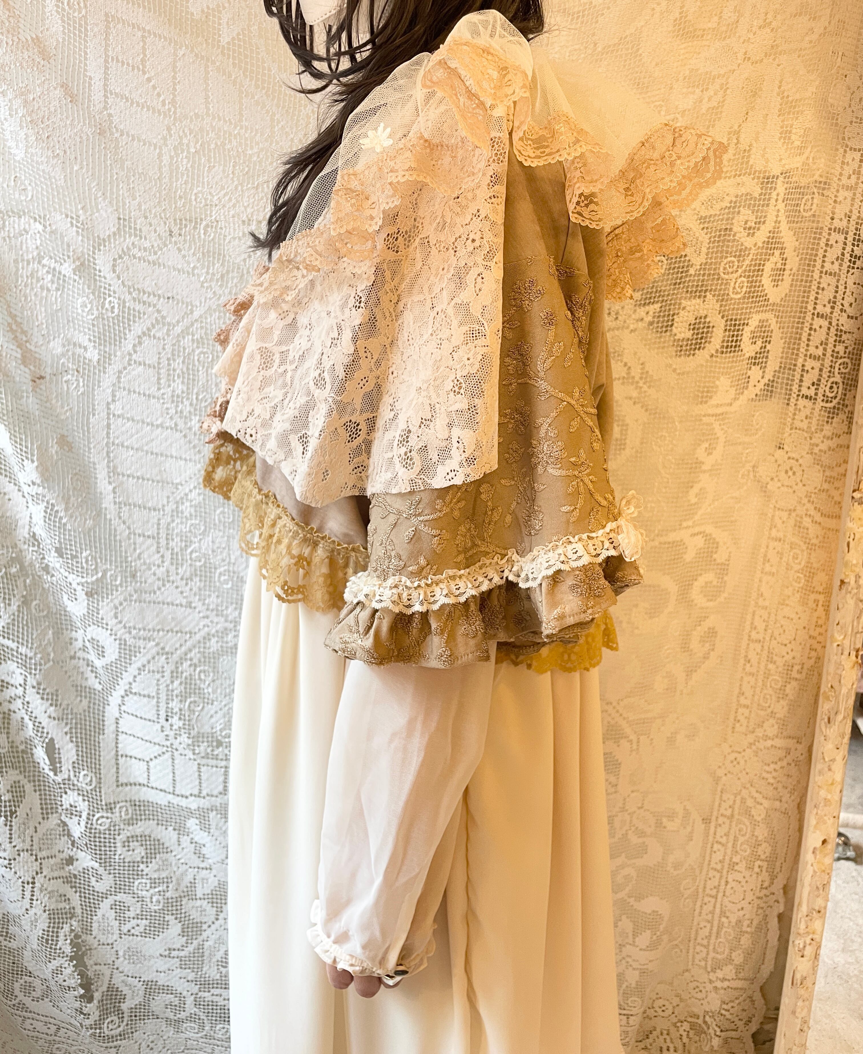 いろんな古着や素材を使用したボレロ。