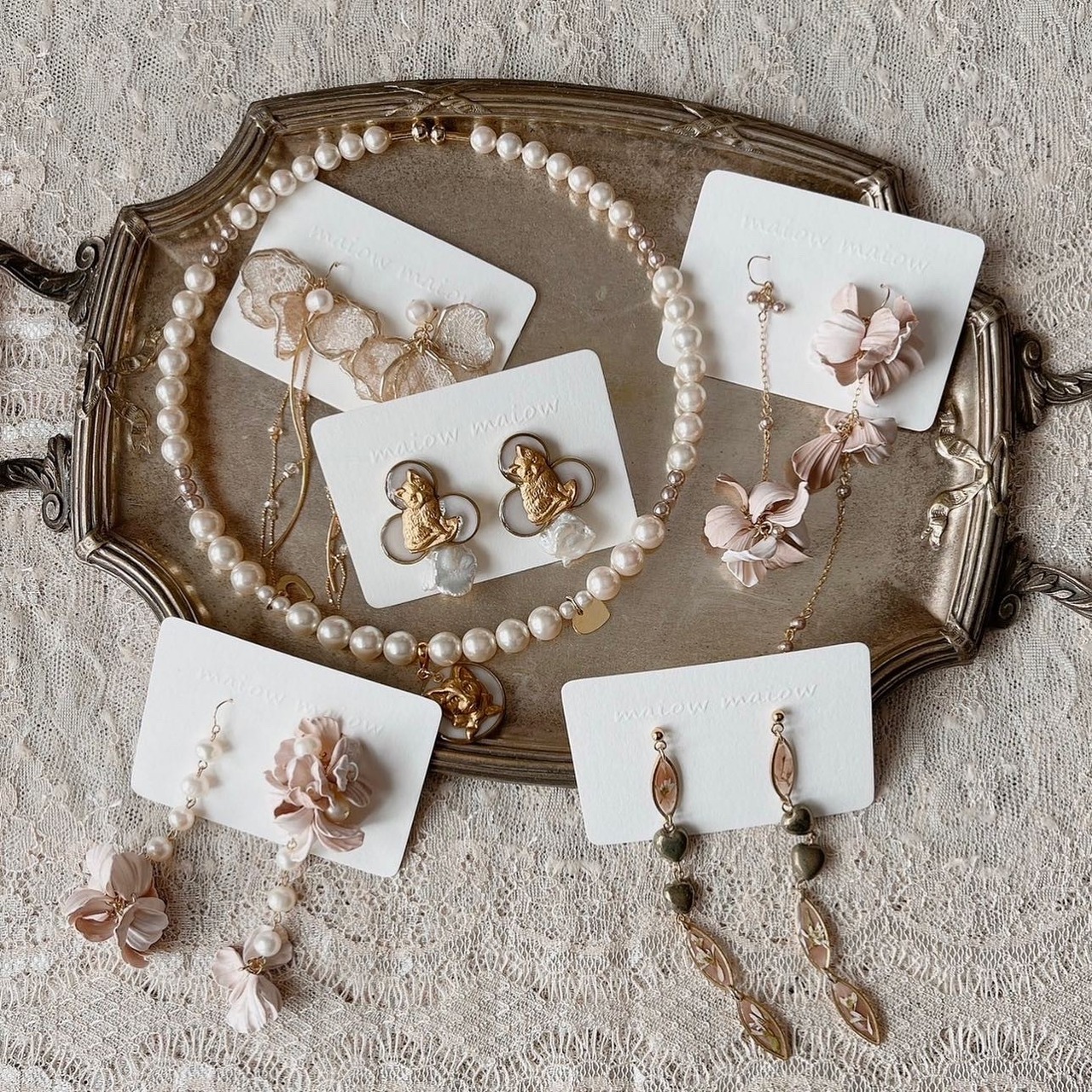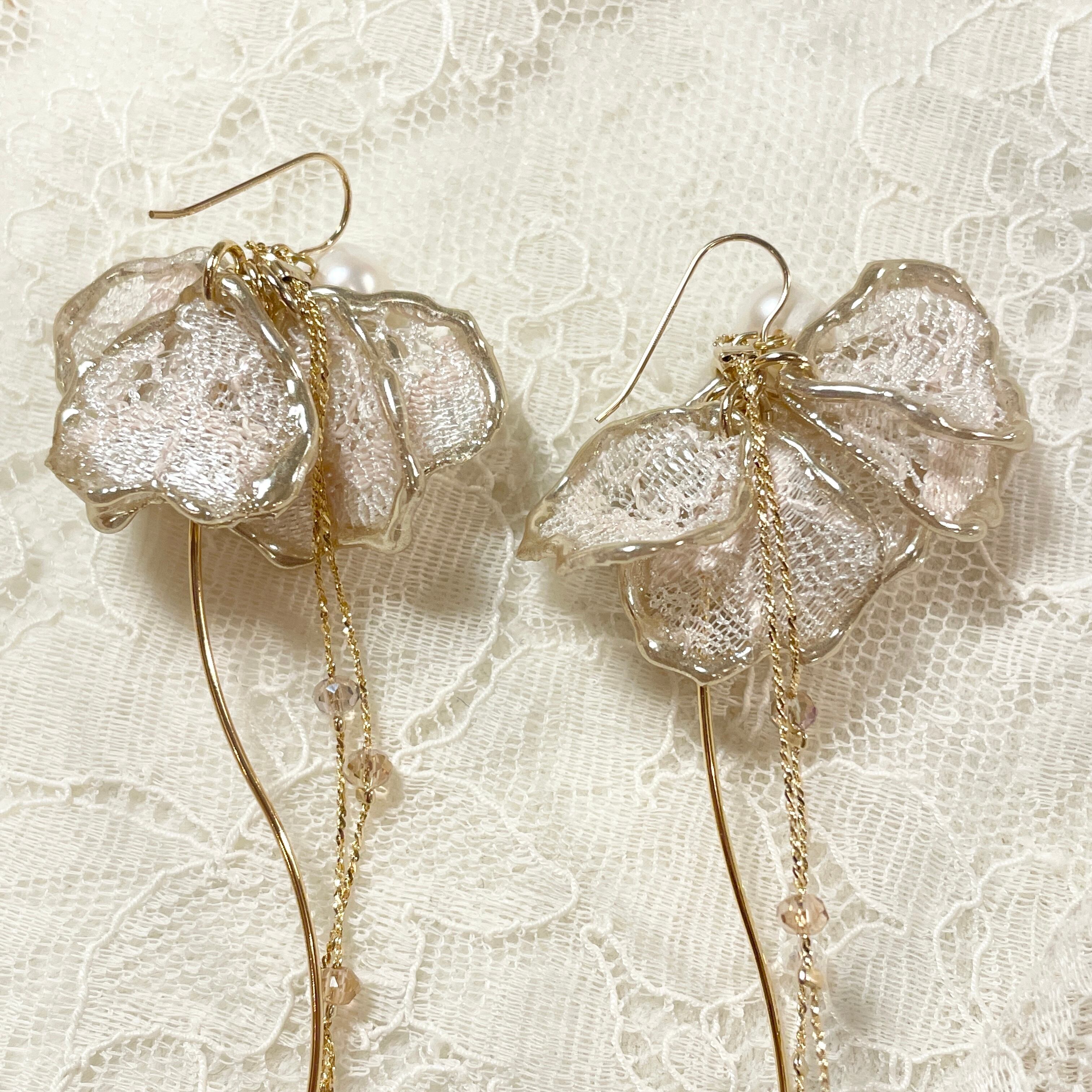 花びら一枚一枚のパーツからハンドメイドで制作した繊細なデザインのアクセサリー。