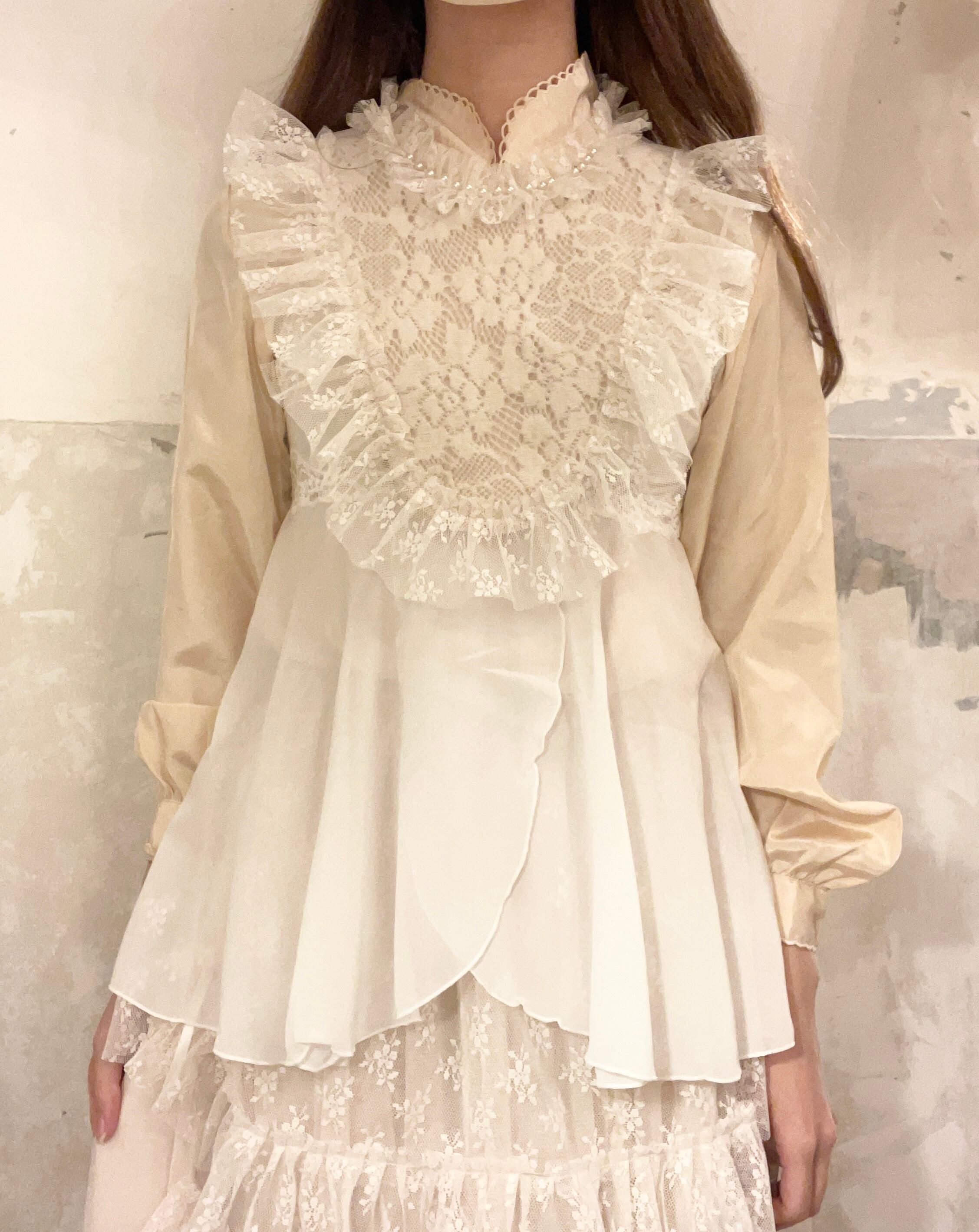 レースとパールの装飾や前掛けのようなシルエットがとても可愛いです。