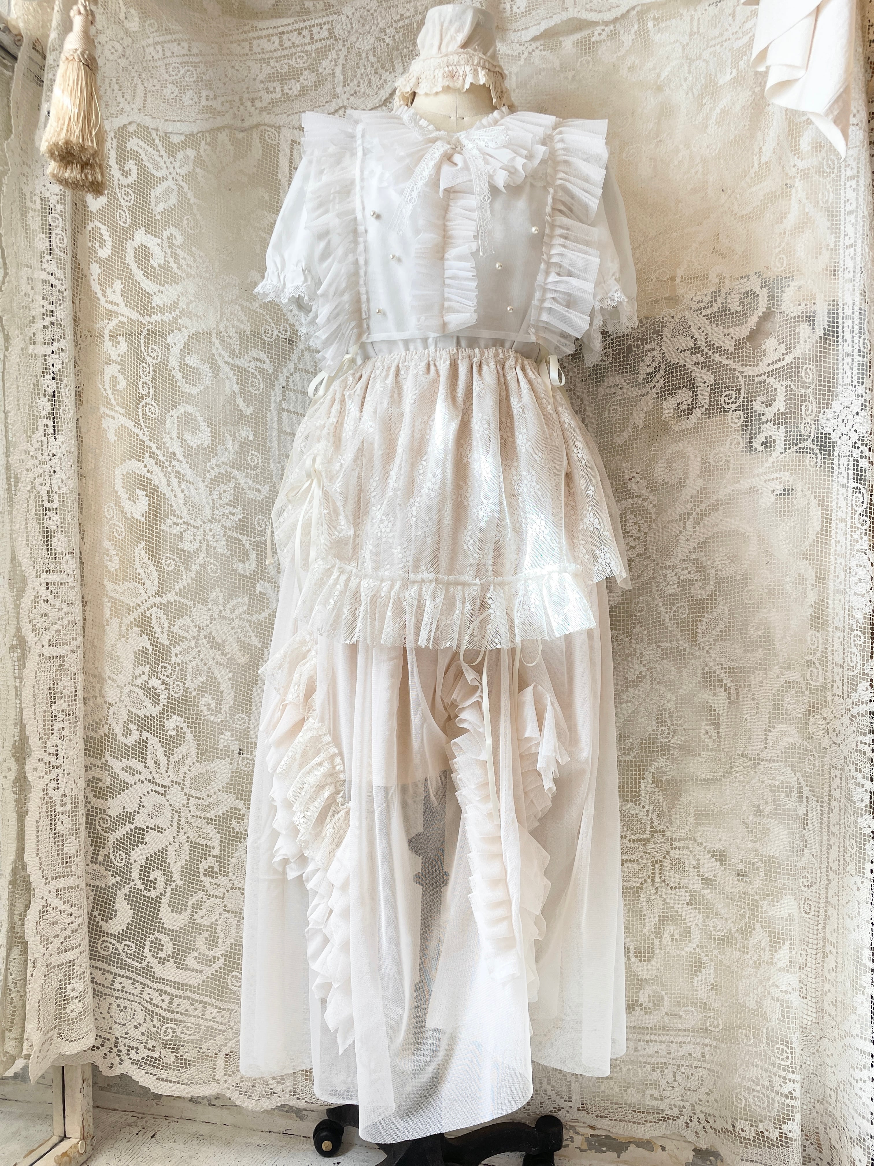 オフホワイトのチュールやレース生地をたっぷり使用し一からハンドメイドで作られています。