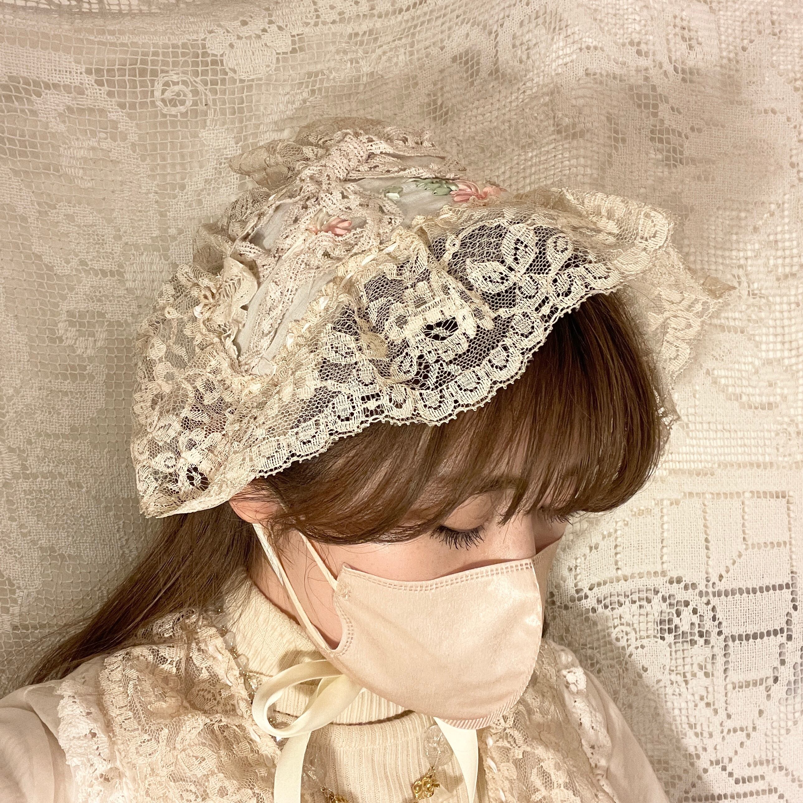 vintageレースでたっぷりを使用したボリュームたっぷりのデザイン。