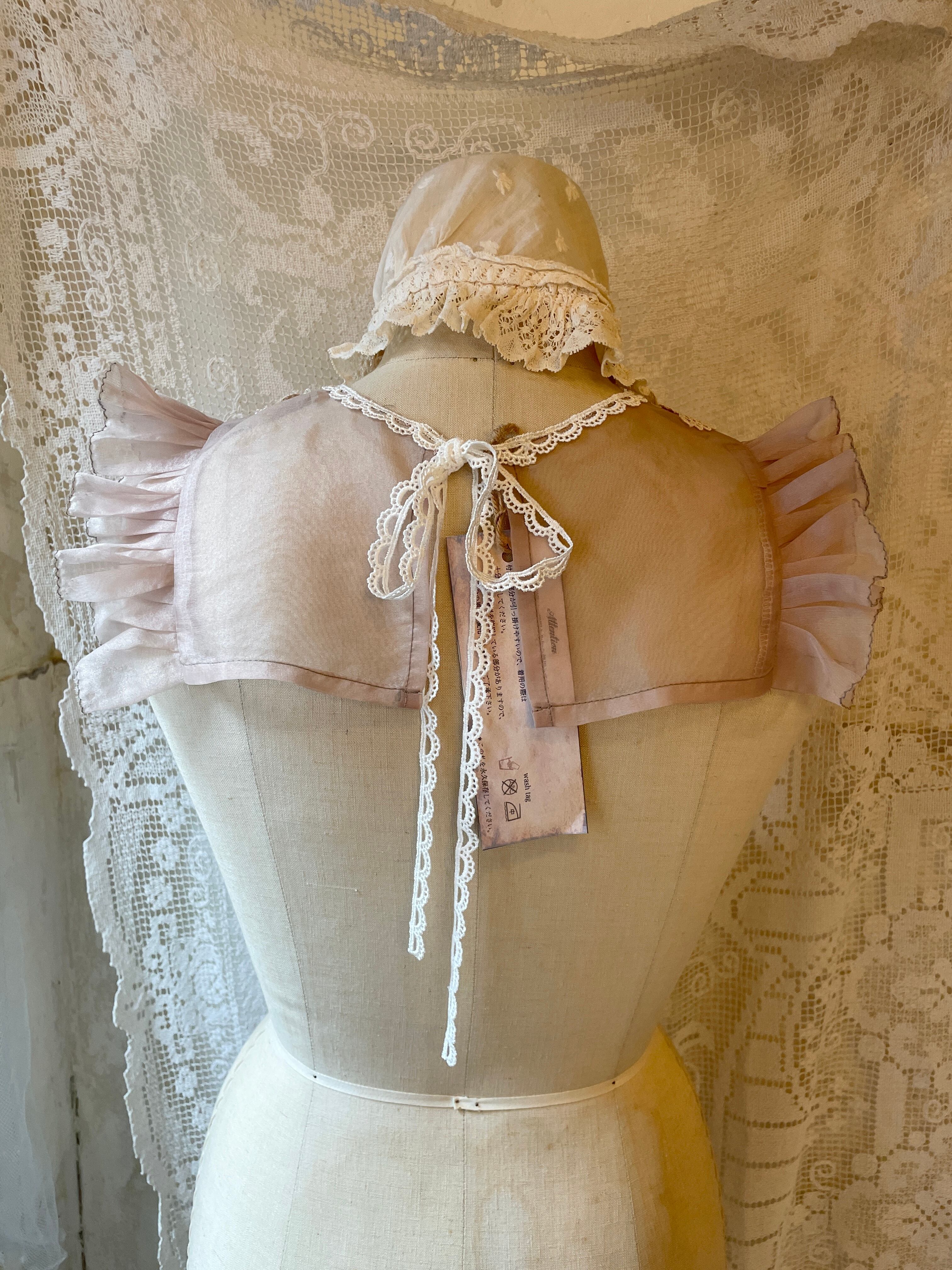 レースとパールの装飾や前掛けのようなシルエットがとても可愛いシアーつけ襟です。