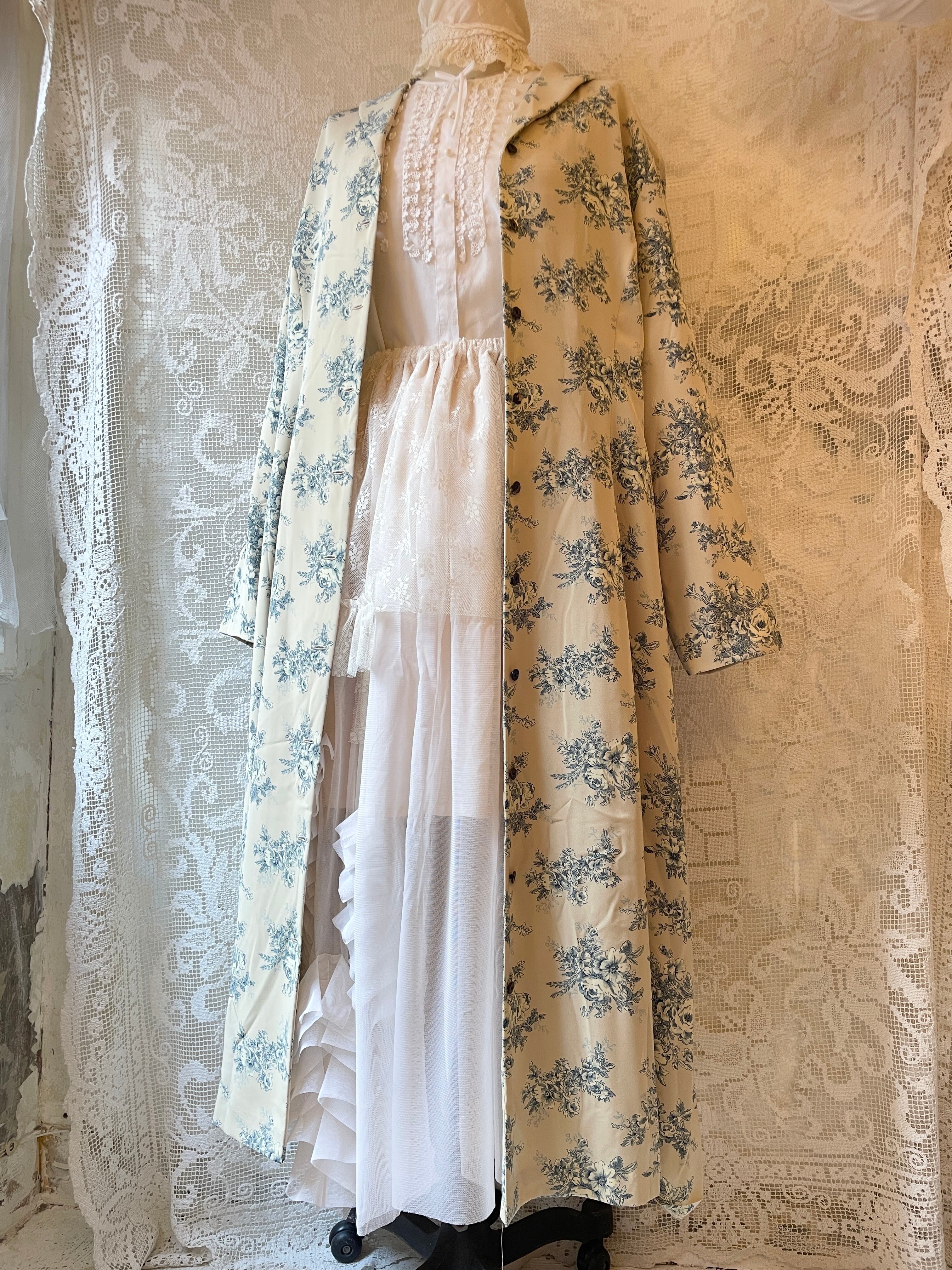 ベージュにブルー系の薔薇模様が甘すぎず可愛いワンピース。