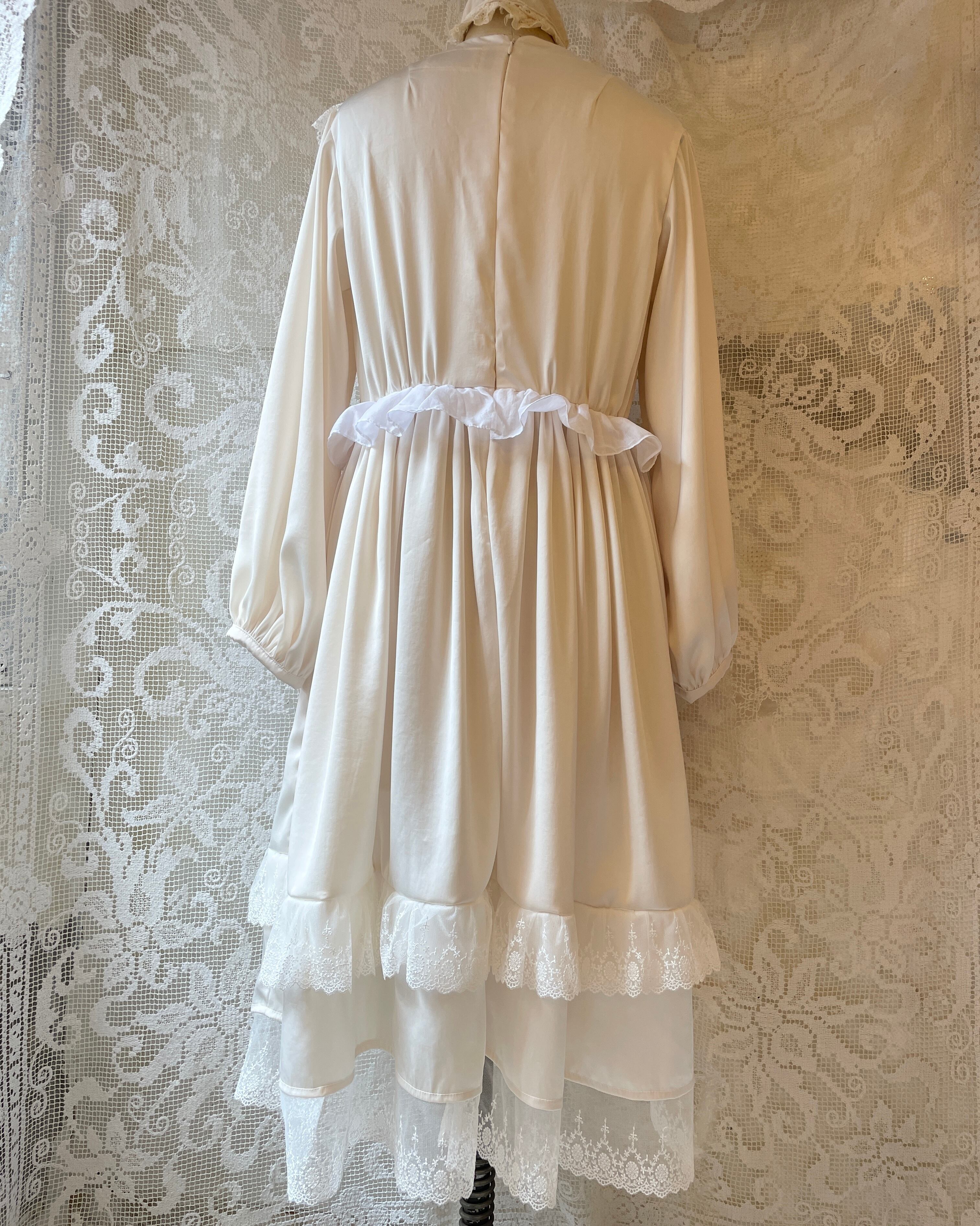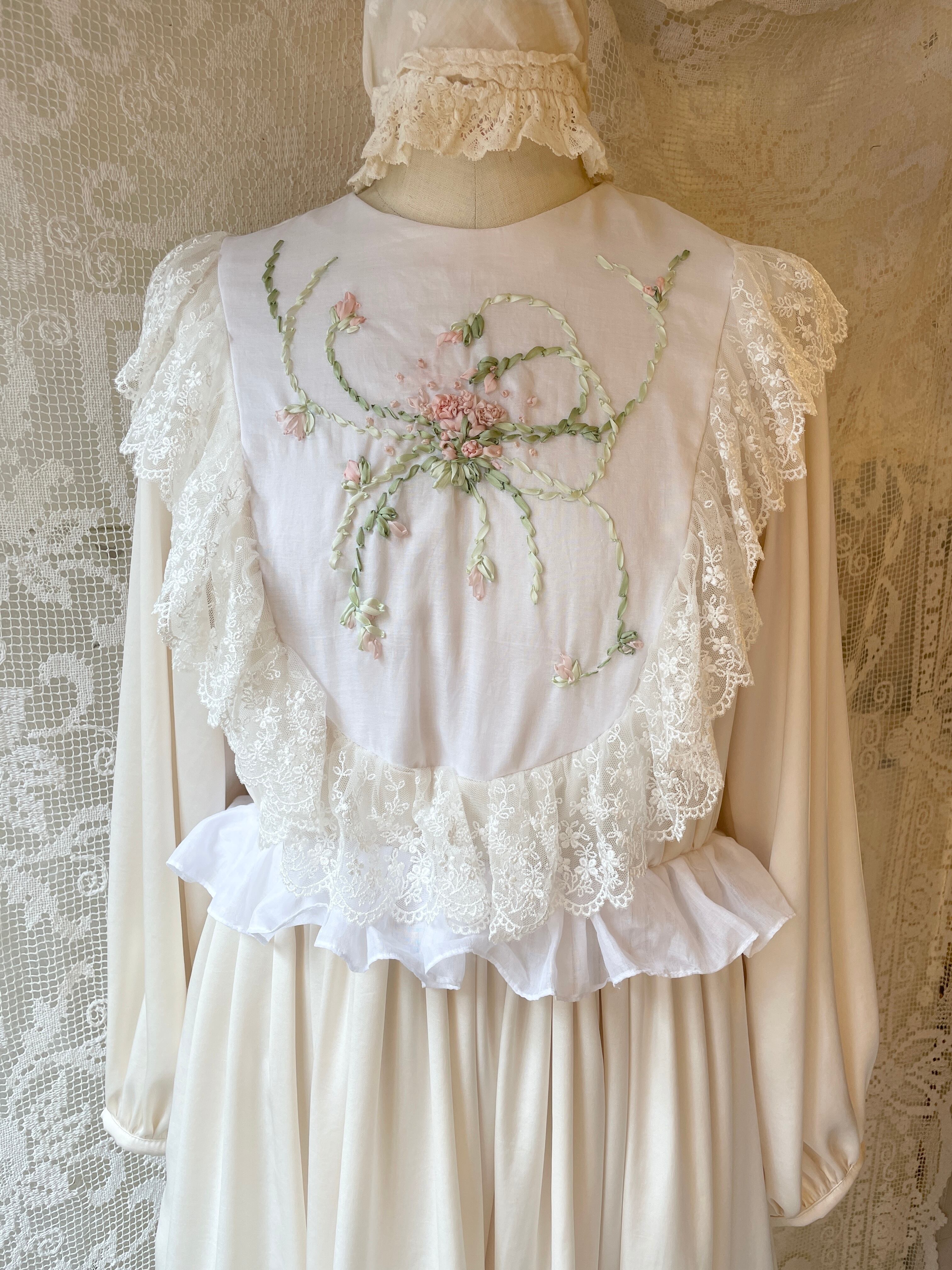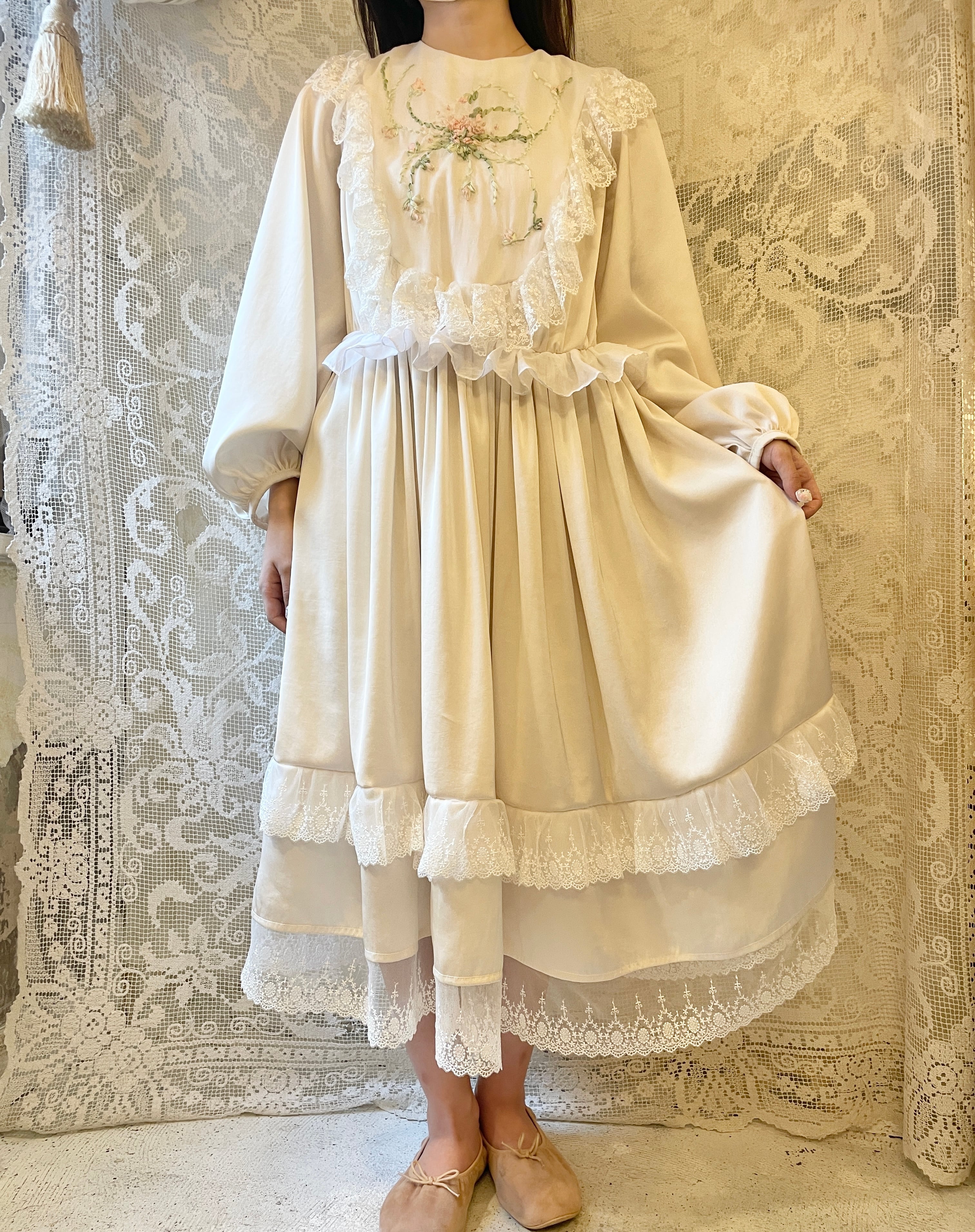 フリルやレースの切り替えや胸元の手刺繍のお花刺繍がとっても可愛いです。