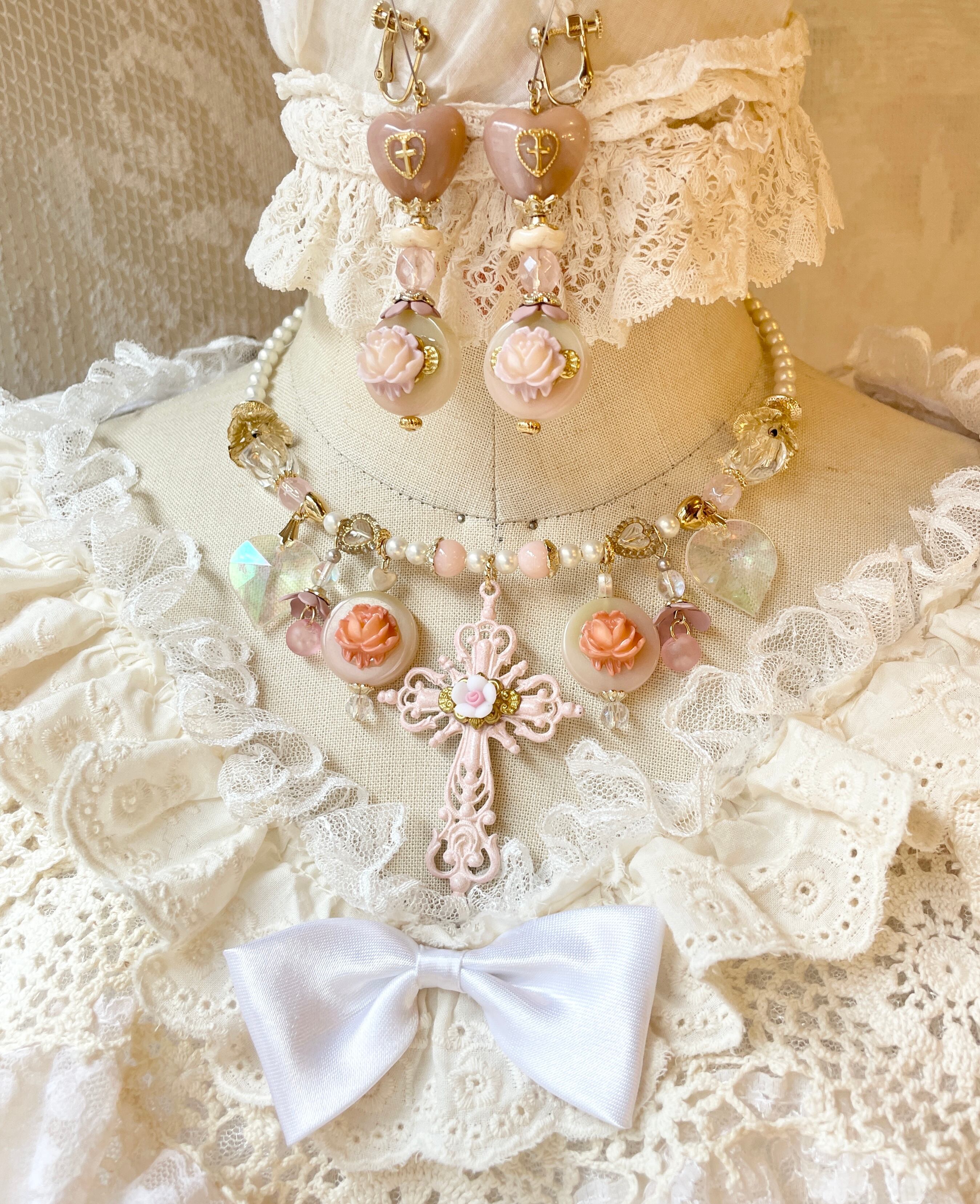 海外で集めたvintageパーツ等も使用して制作された華やかで個性的なデザインがとても可愛いアクセサリーです。