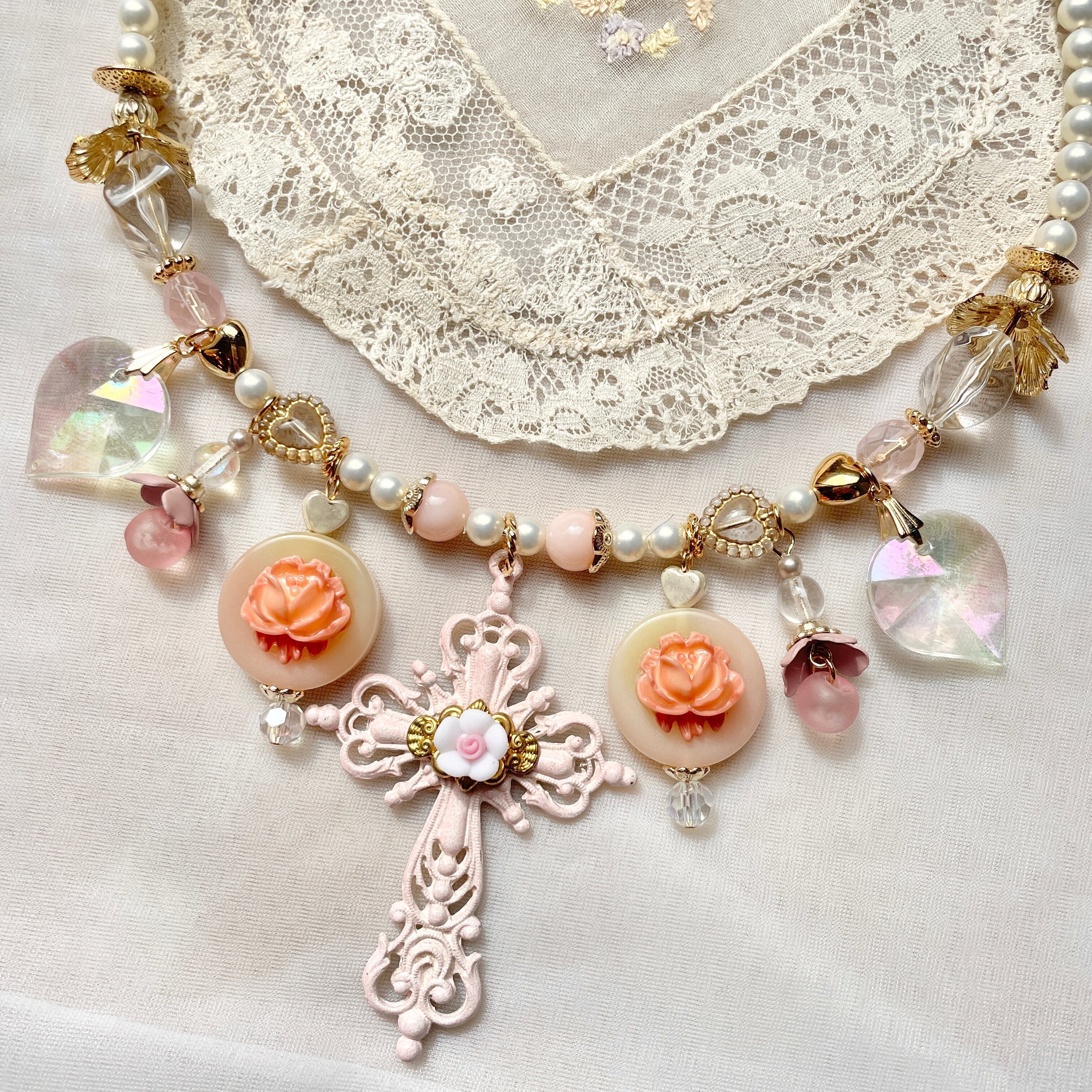ロマンティックなパーツを組み合わせた甘いデザインが美しいワイヤーチョーカー。