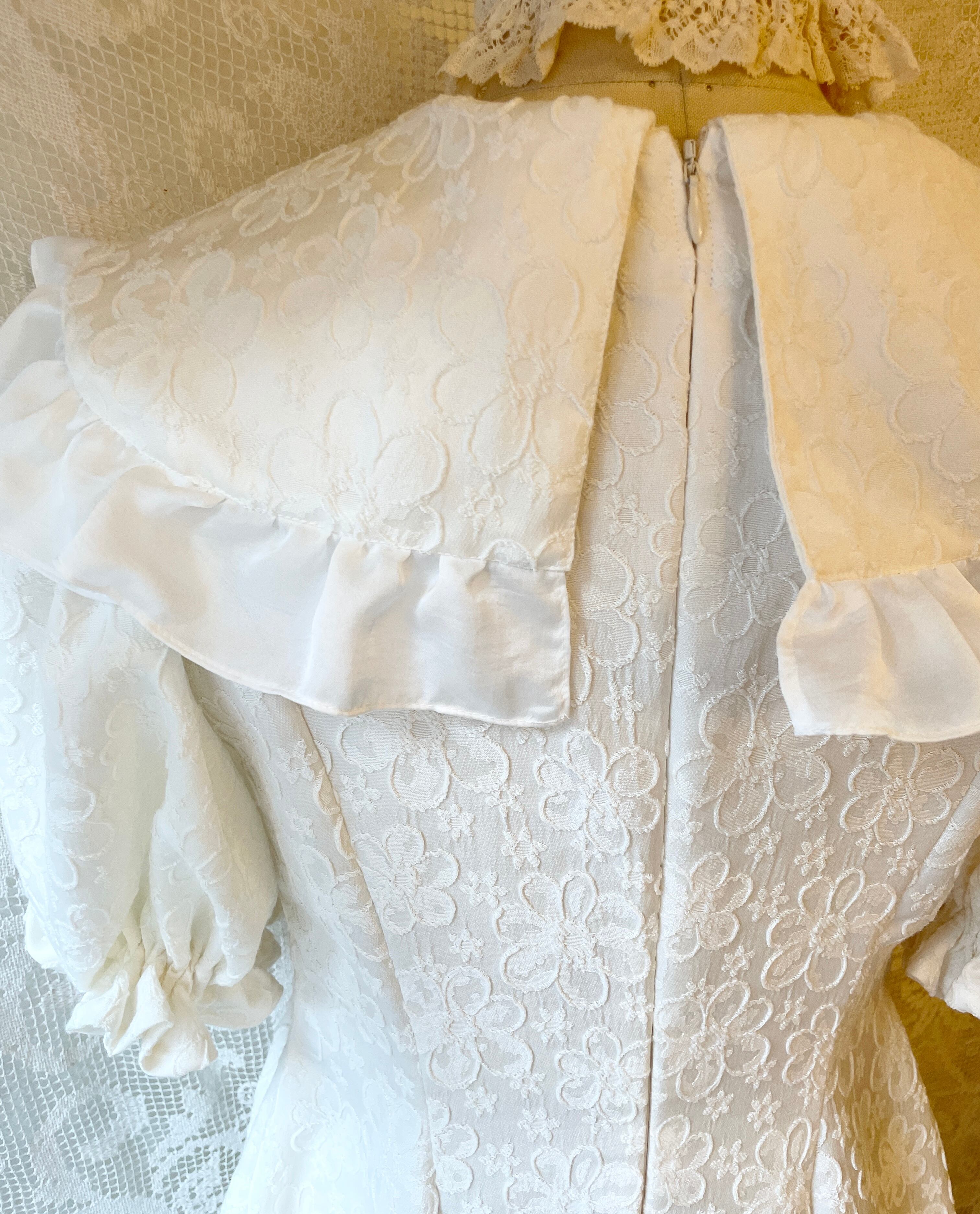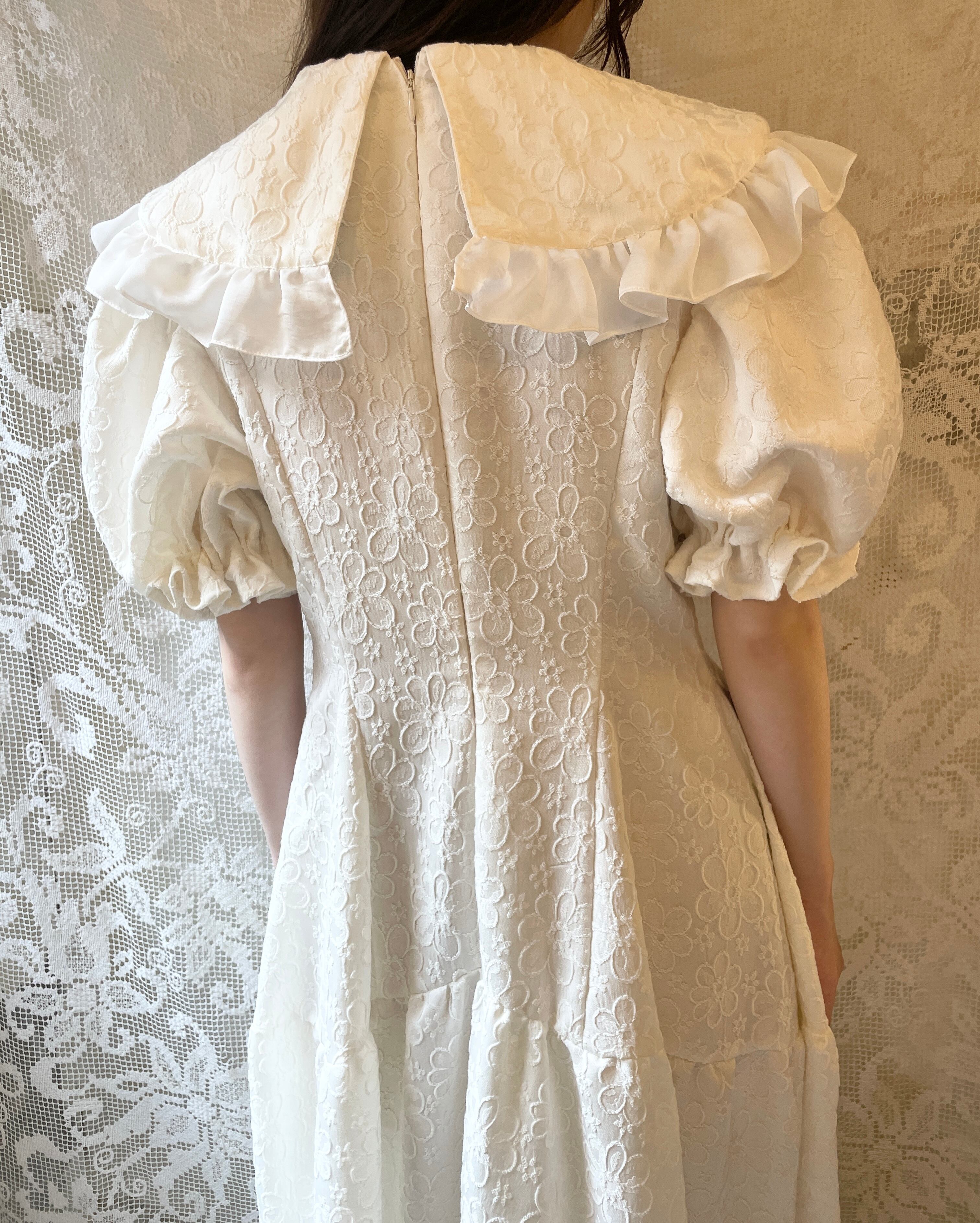 大きな襟やパフスリーブのシルエット、シルバーのお花の装飾がとっても可愛いです。