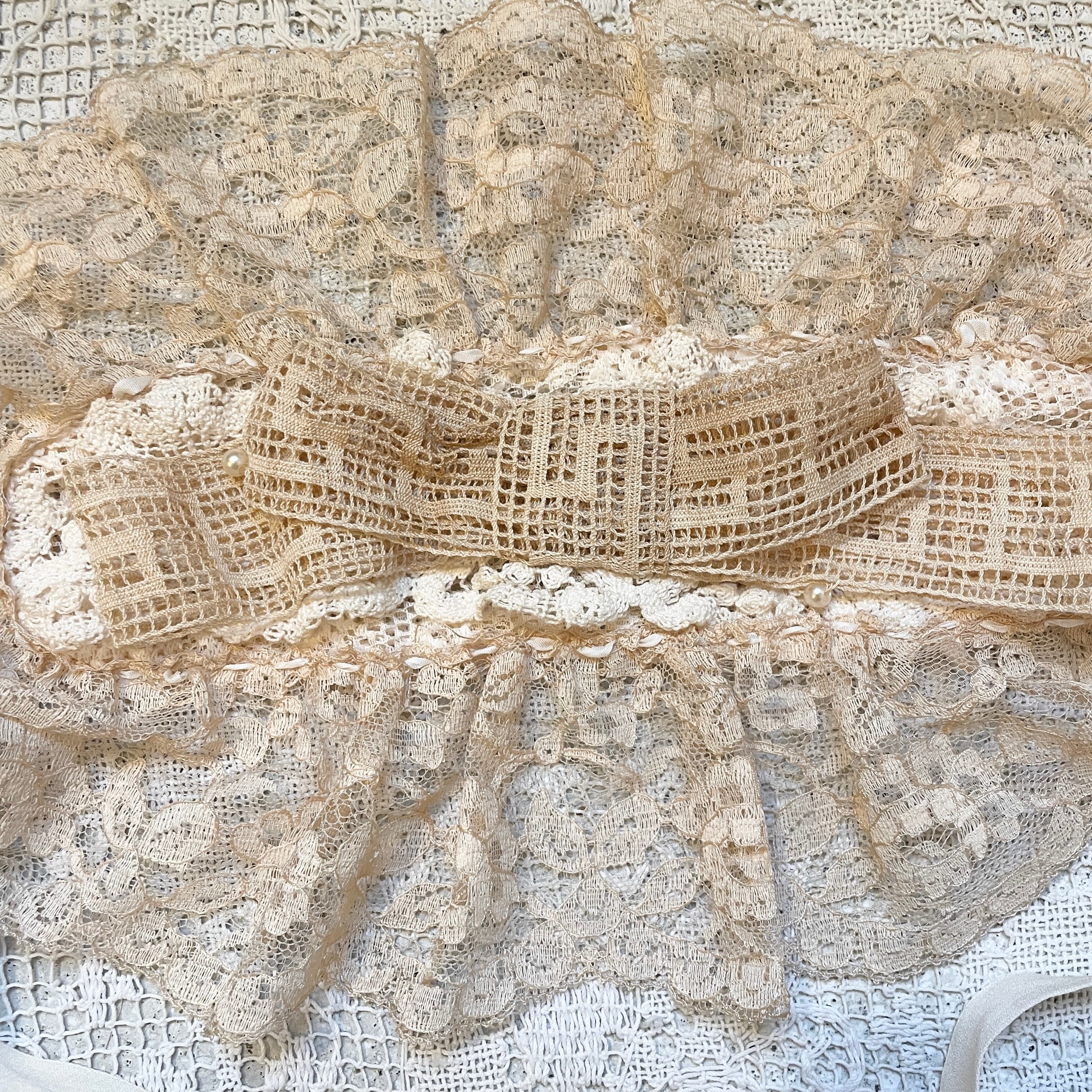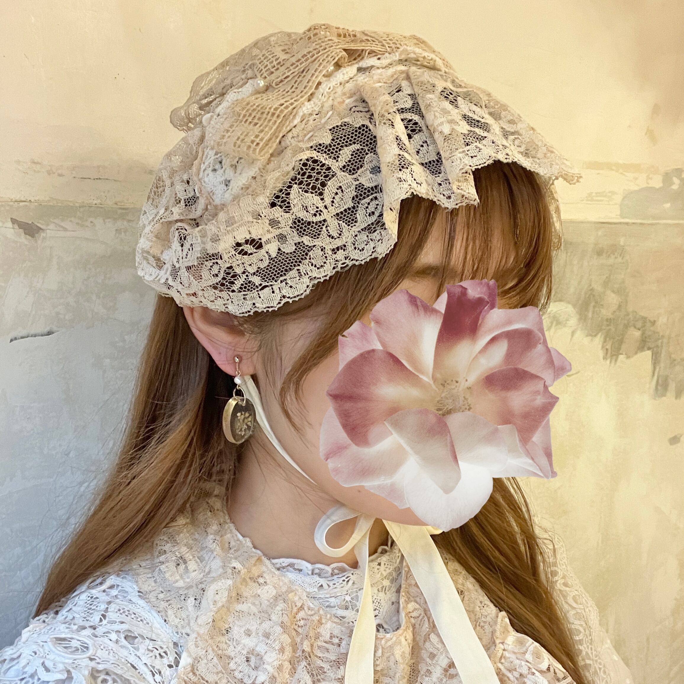 vintageレースでたっぷりを使用したボリュームたっぷりのデザイン。