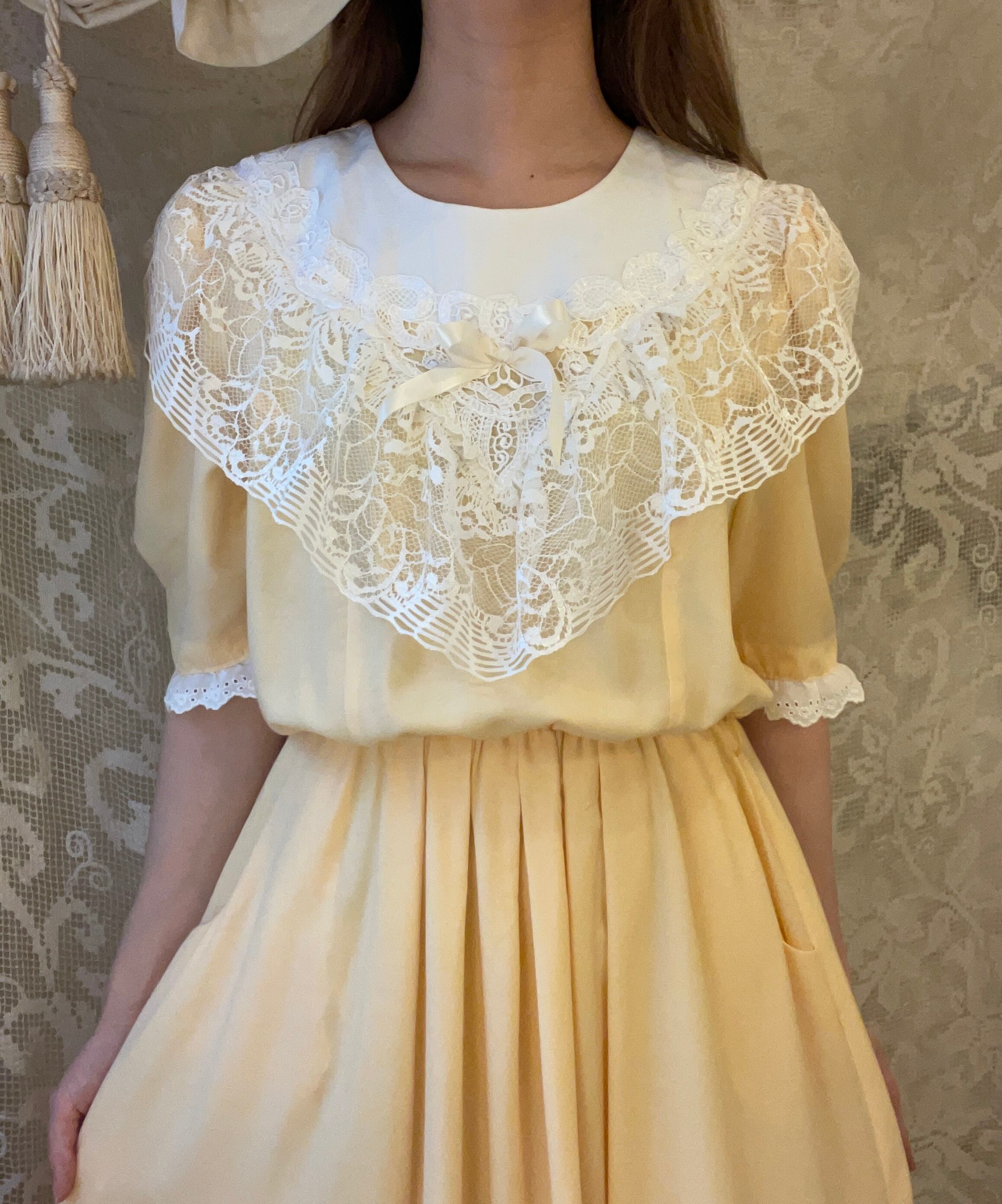 ひよこカラーのレースたっぷりなワンピース。