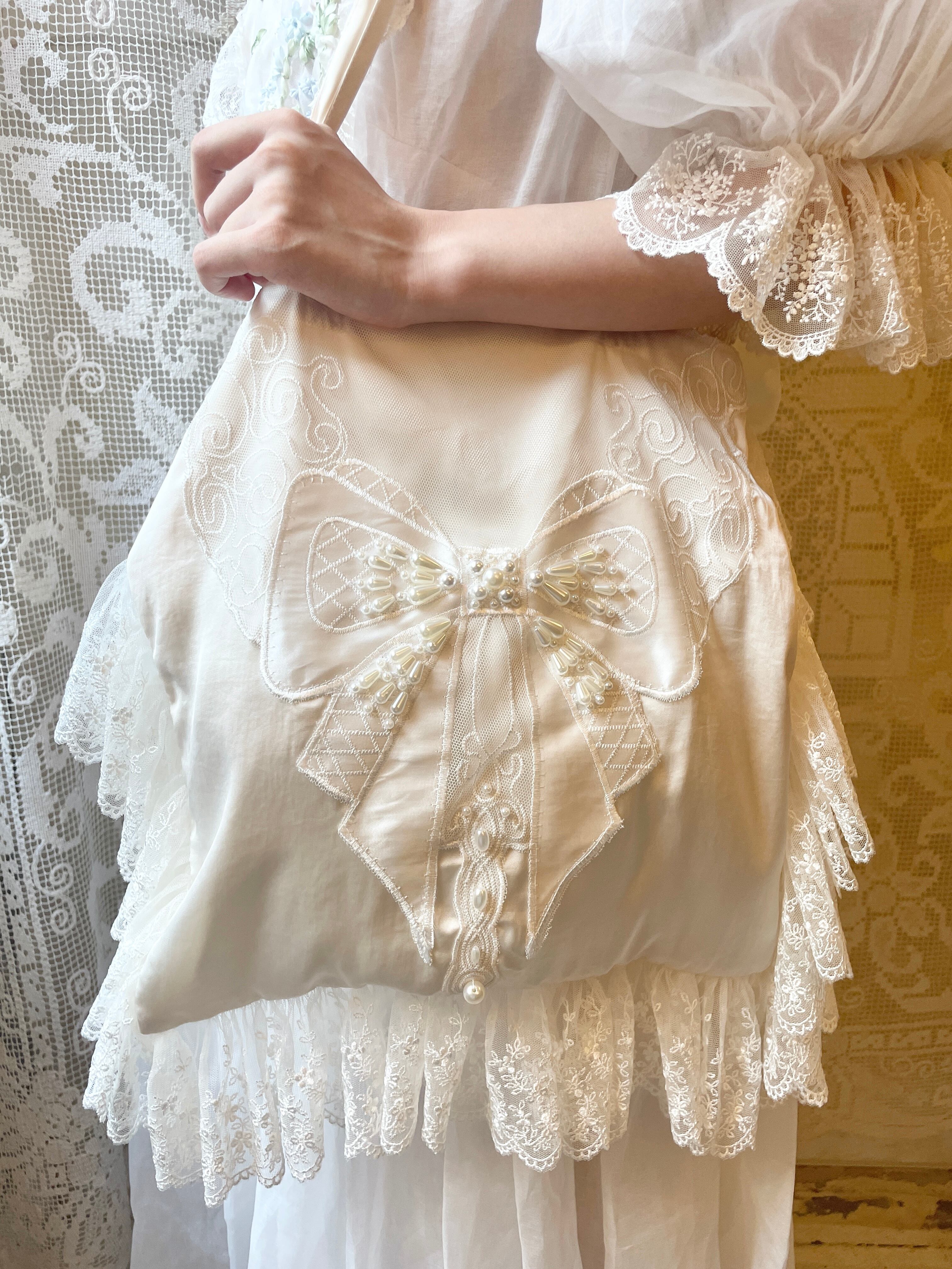 一からハンドメイドで制作し手刺繍やvintageレース等の装飾を施しています。