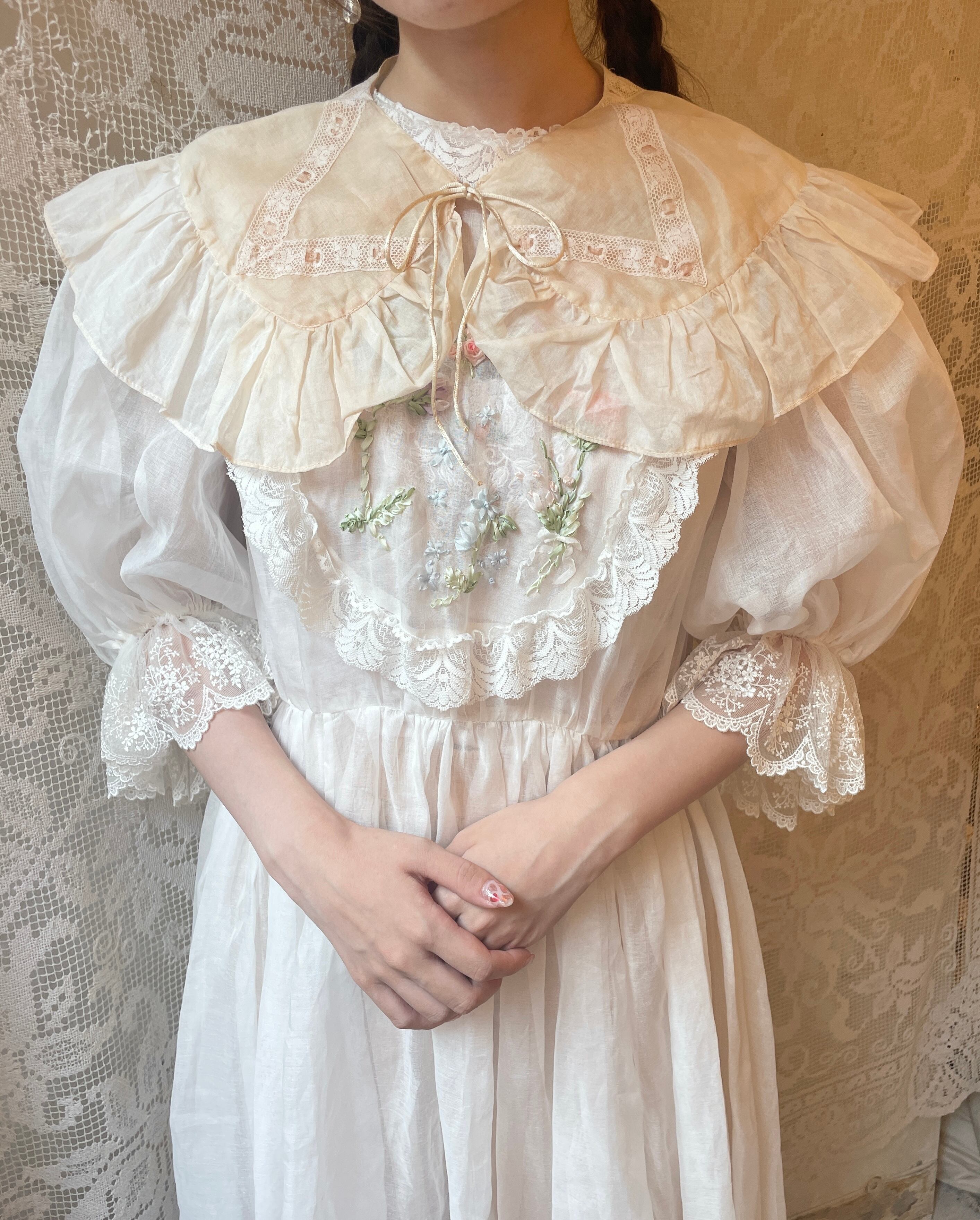 アンティークな雰囲気漂う紅茶でムラ染めしたコットンオーガンジーのつけ襟。