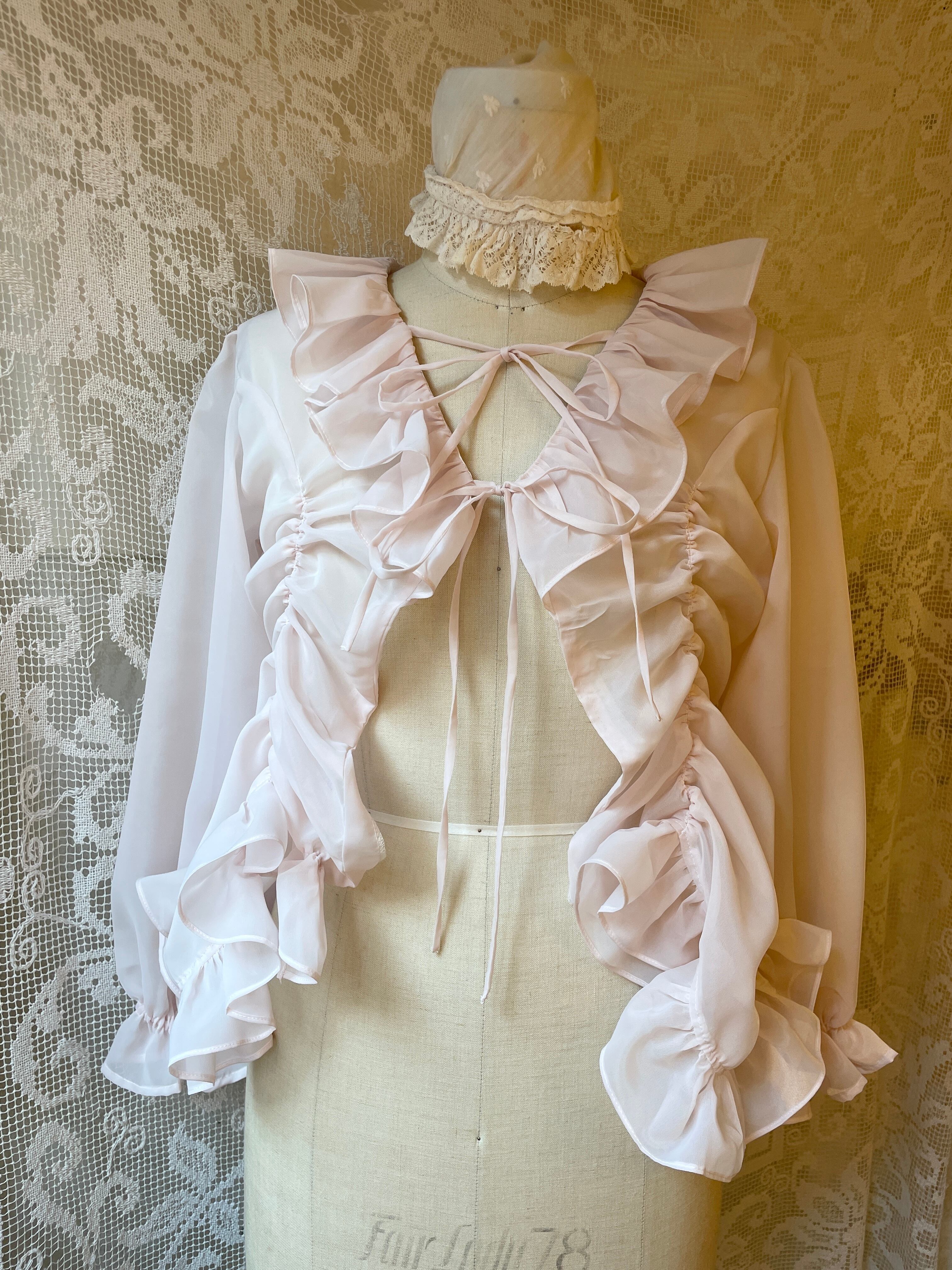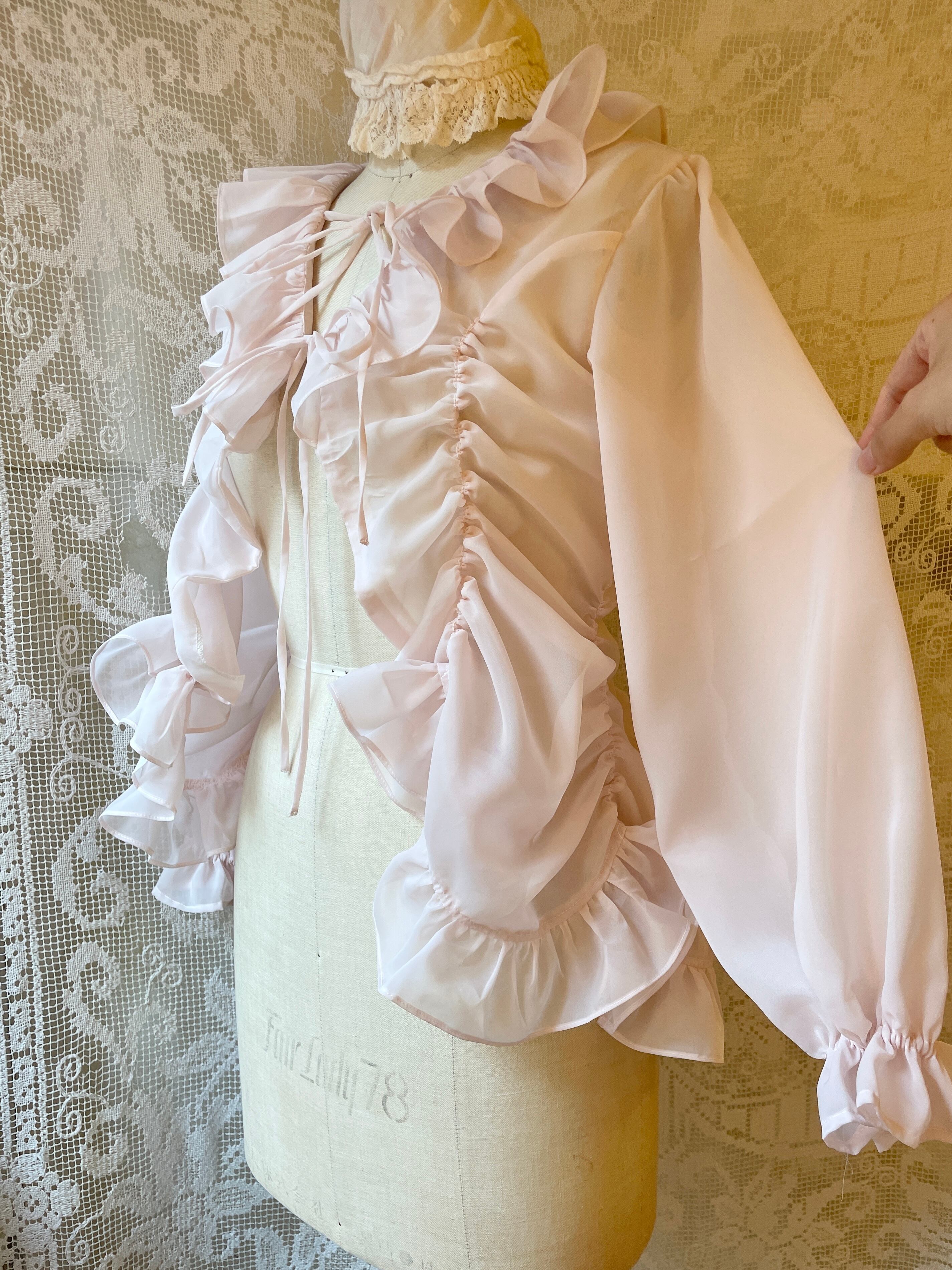 vintageドレスのような淡いピンクのオーガンジー生地で制作しています。