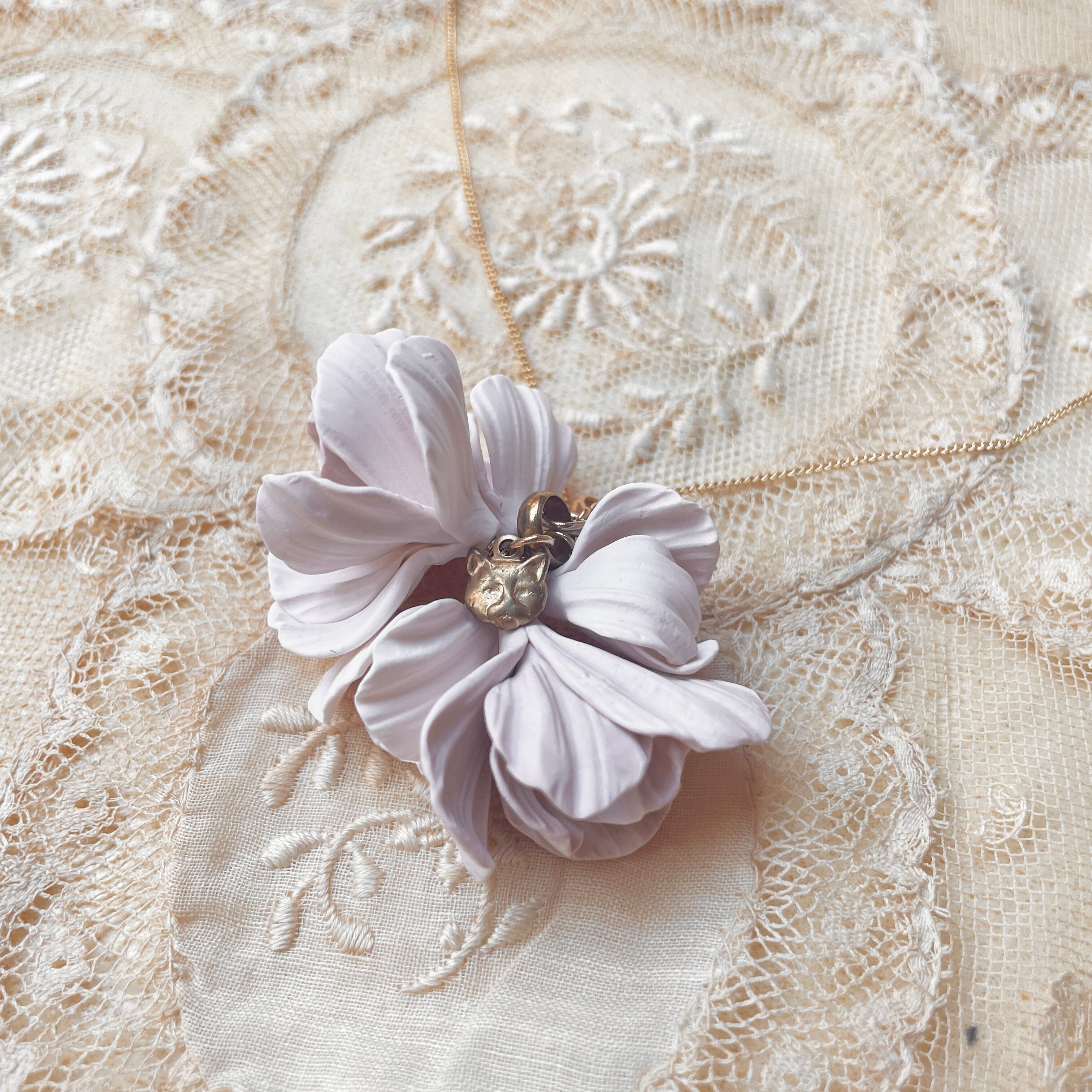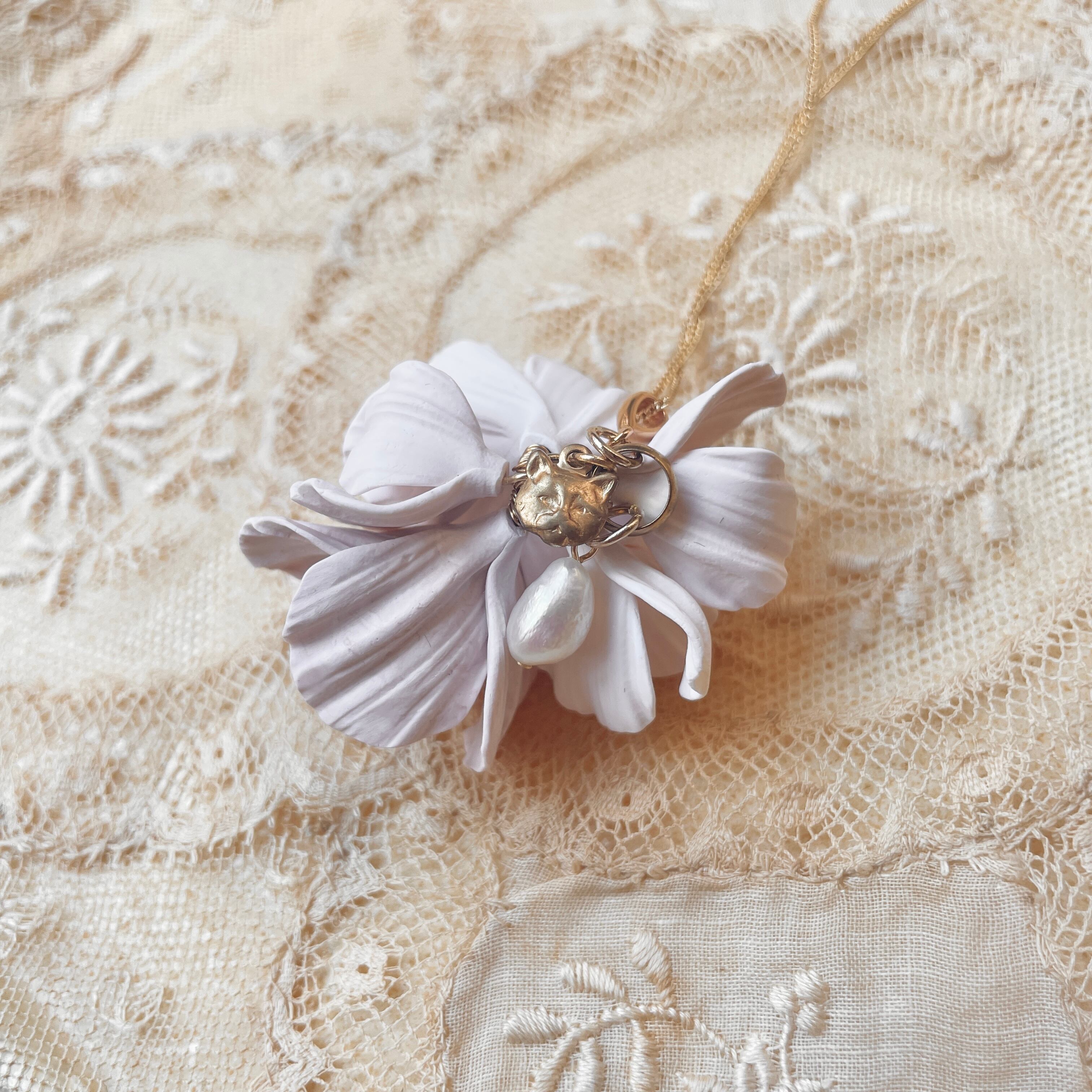 花びら一枚一枚のパーツからハンドメイドで制作した繊細なデザインのアクセサリー。