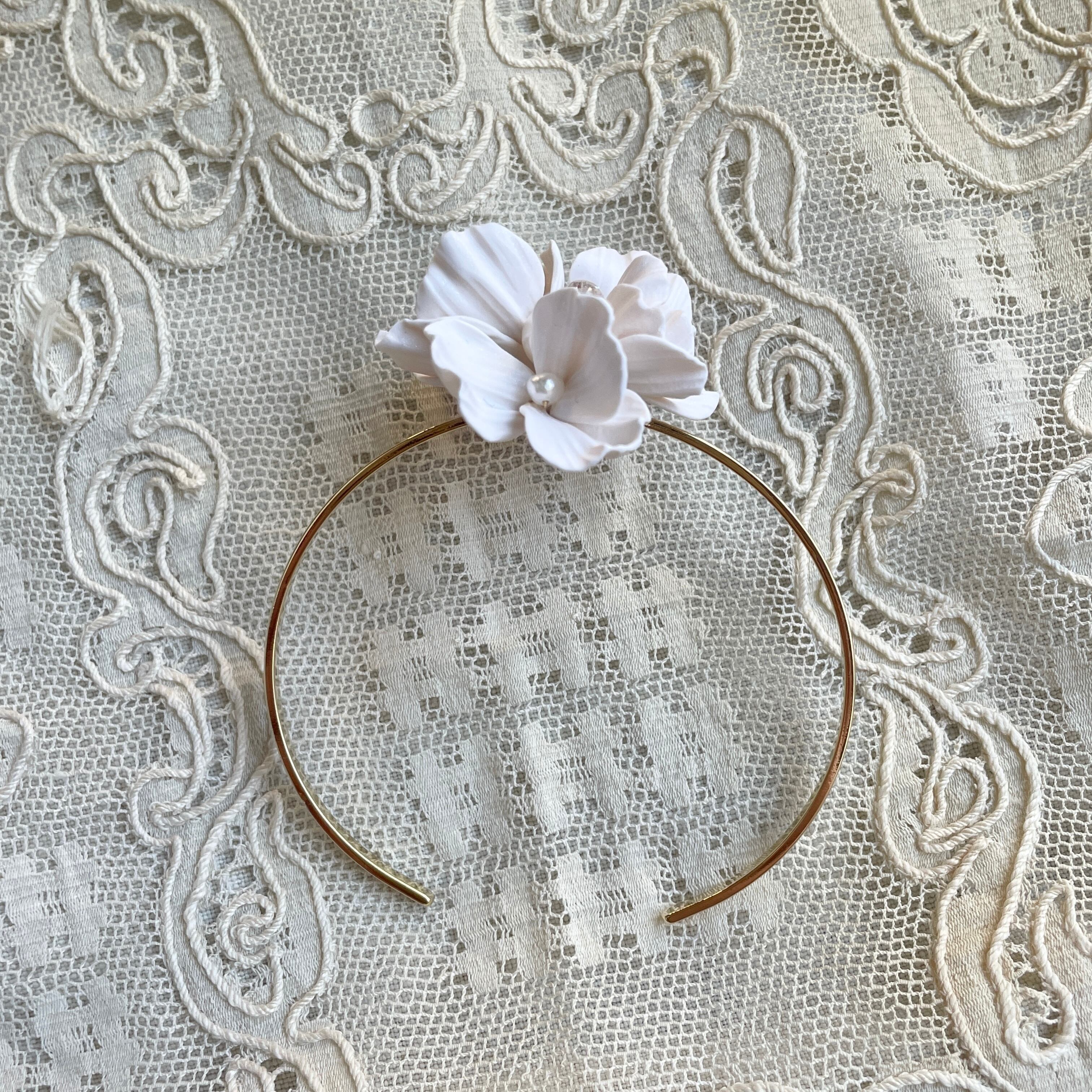 花びら一枚一枚のパーツからハンドメイドで制作した繊細なデザインのバングル。