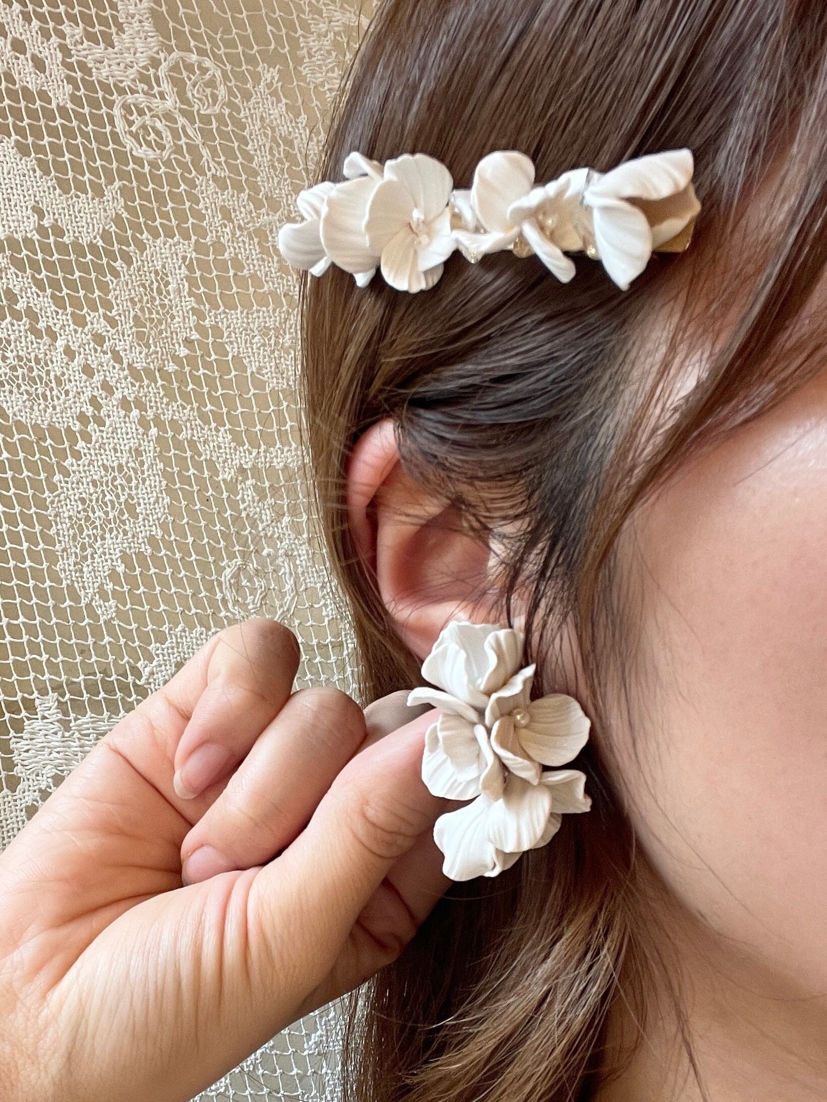 エクリュカラーの花びらがゆらゆら揺れるデザインでとても繊細で美しいです。