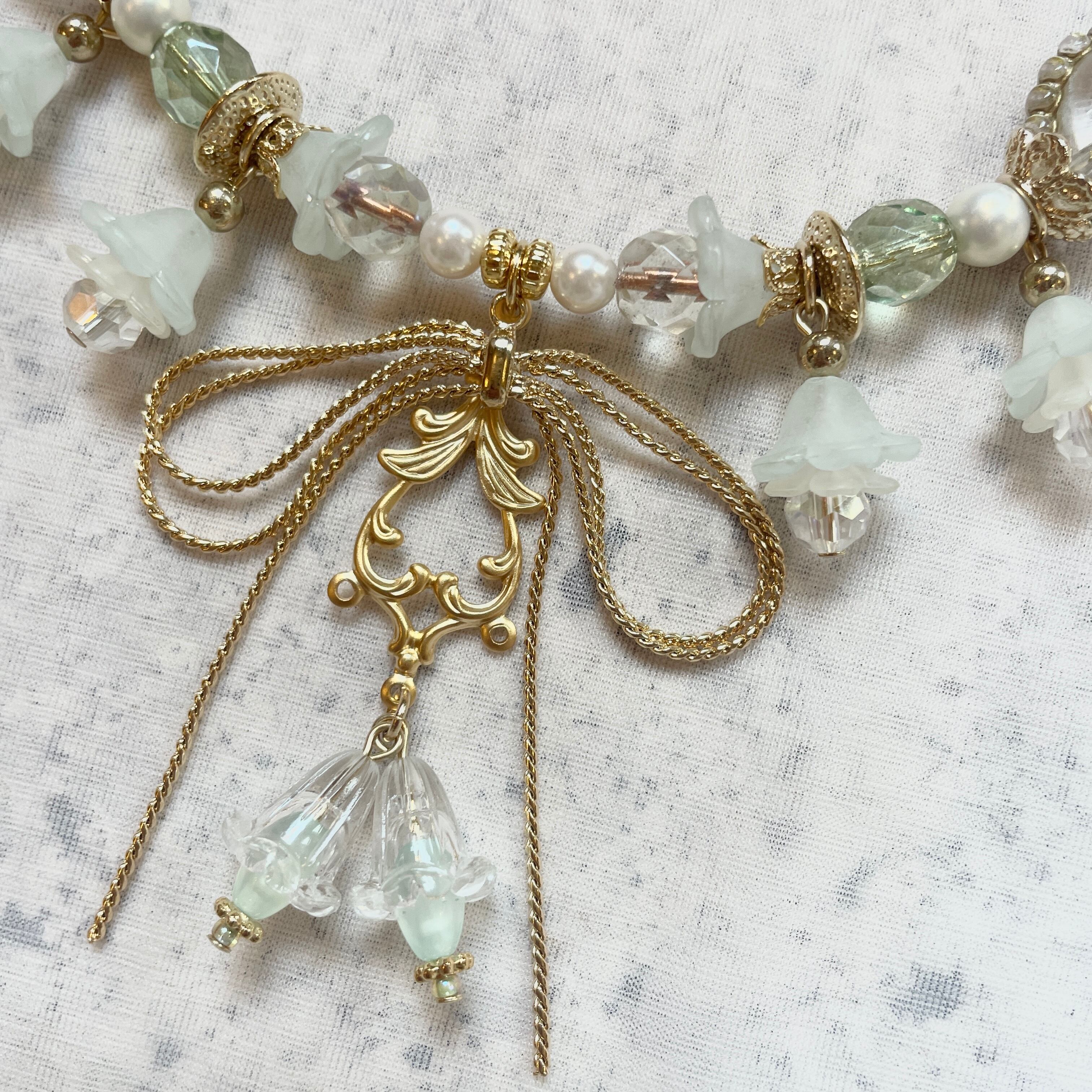 ロマンティックなパーツを組み合わせた甘いデザインが美しいワイヤーチョーカー。