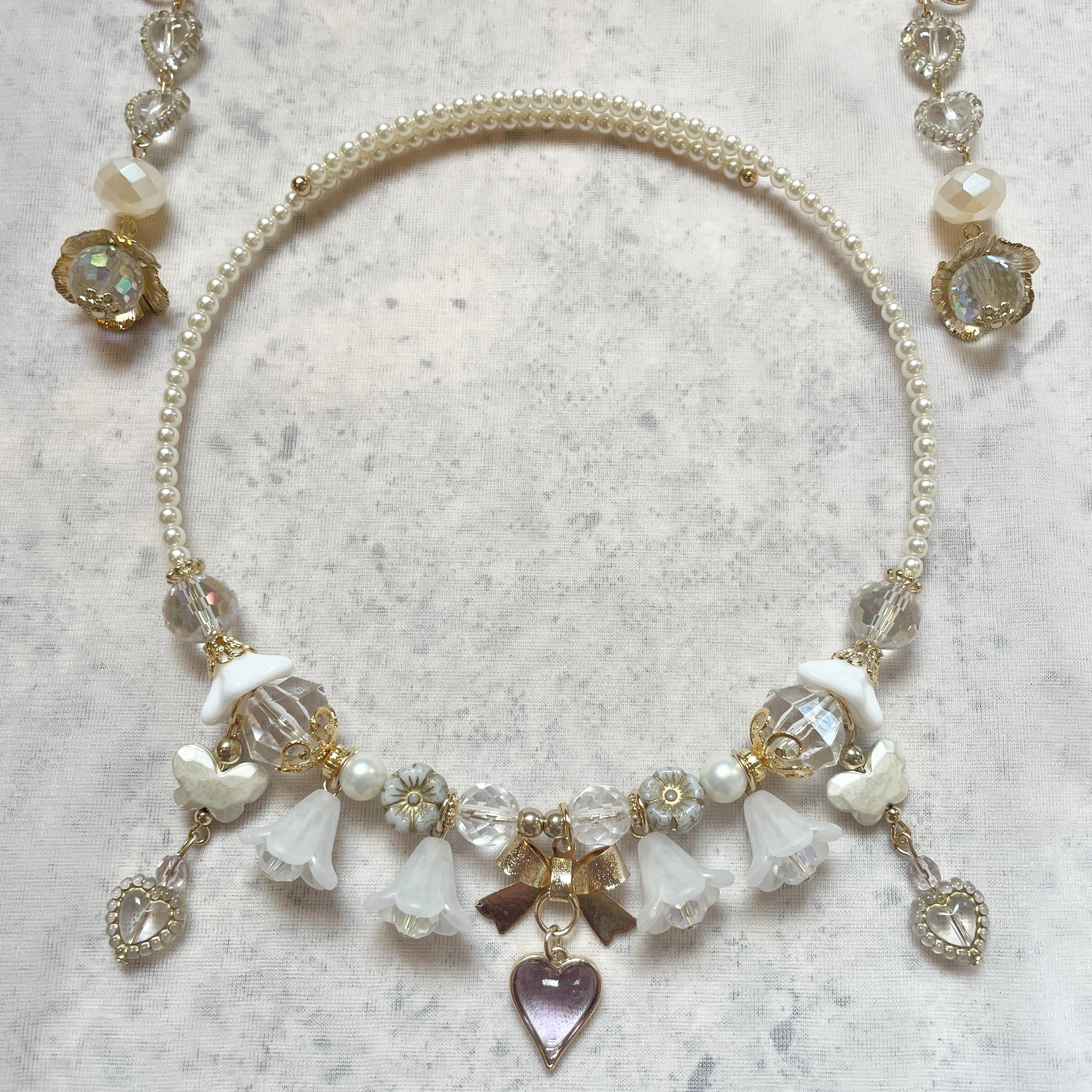 ロマンティックなパーツを組み合わせた甘いデザインが美しいワイヤーチョーカー。