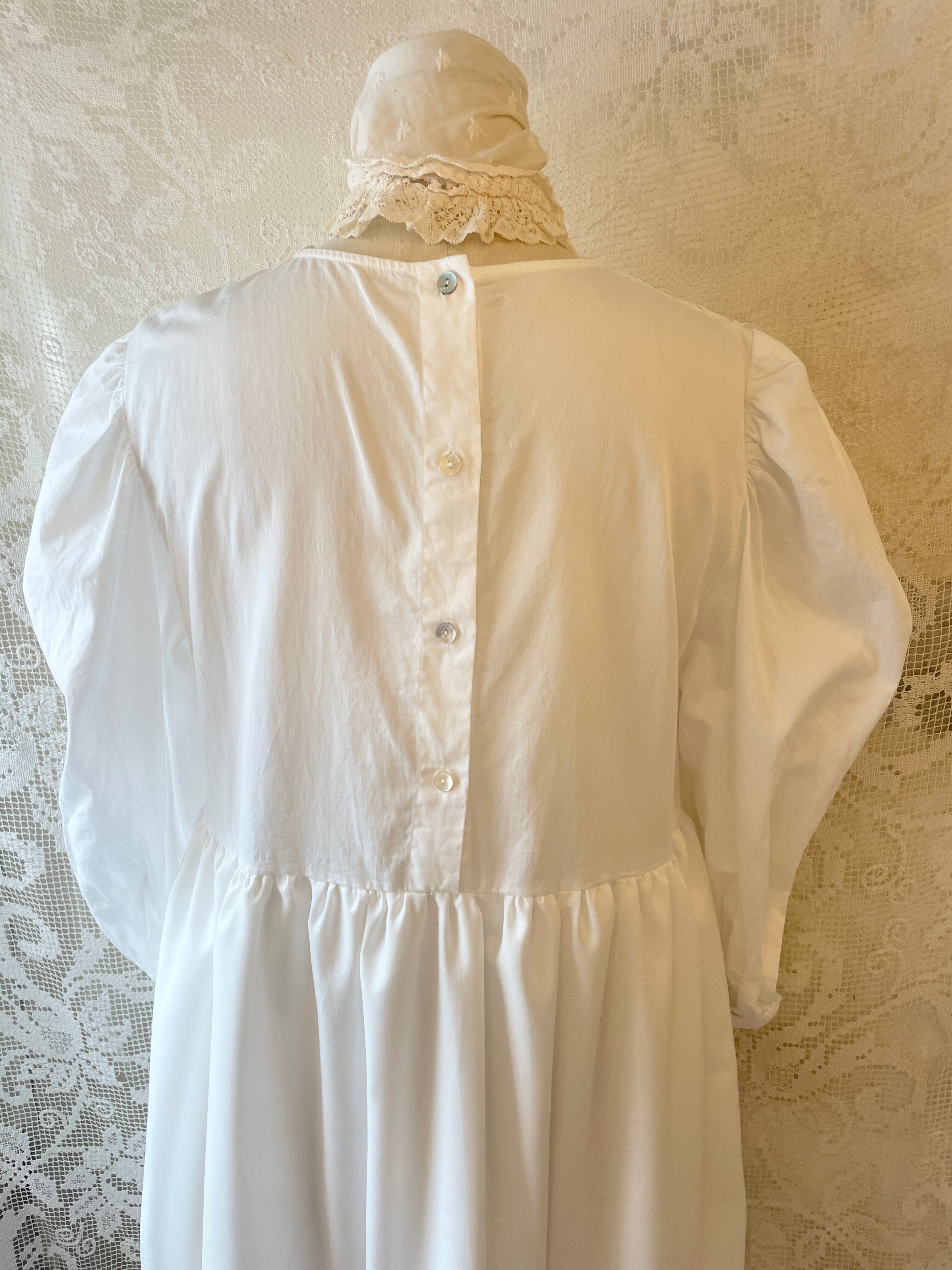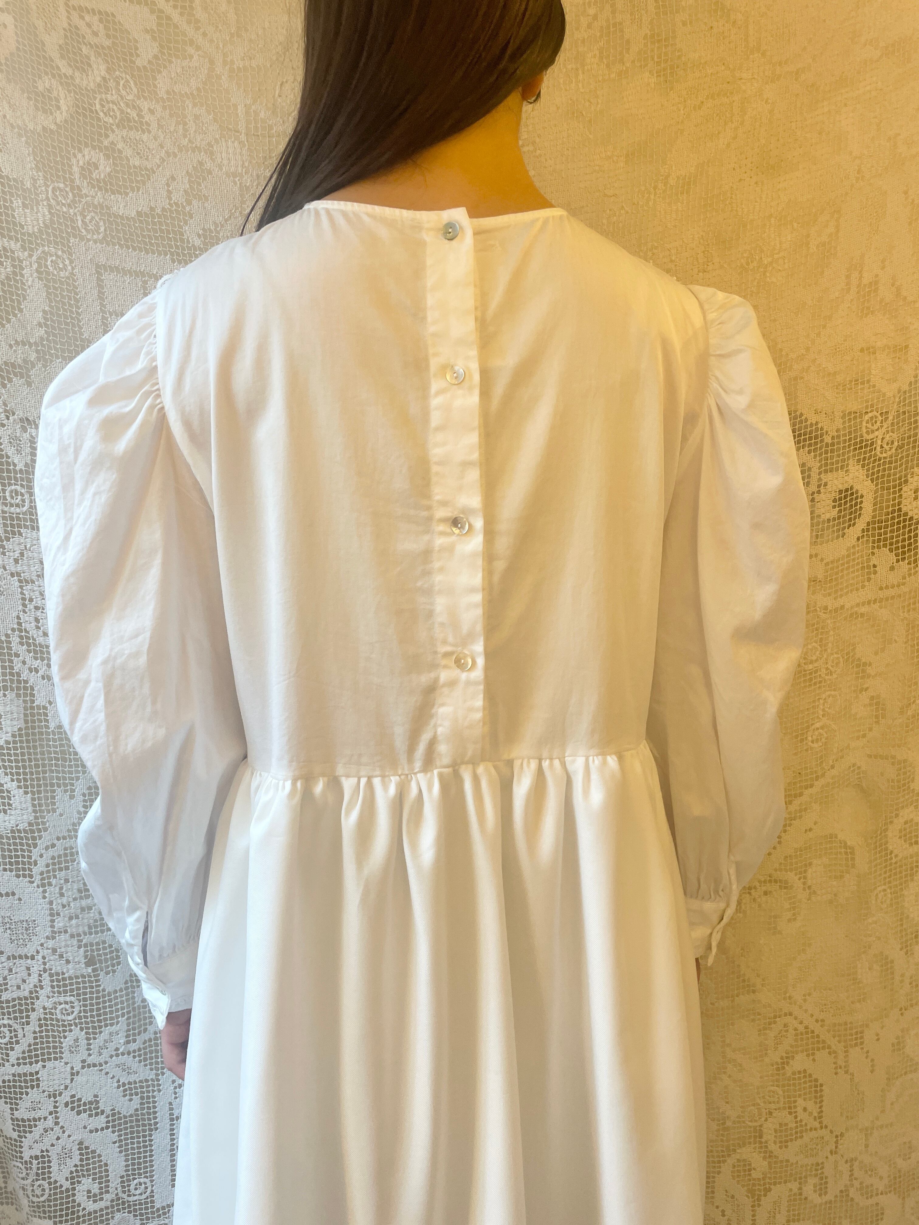 ボリュームのある袖が可愛いブラウスをリメイクしたワンピース 。