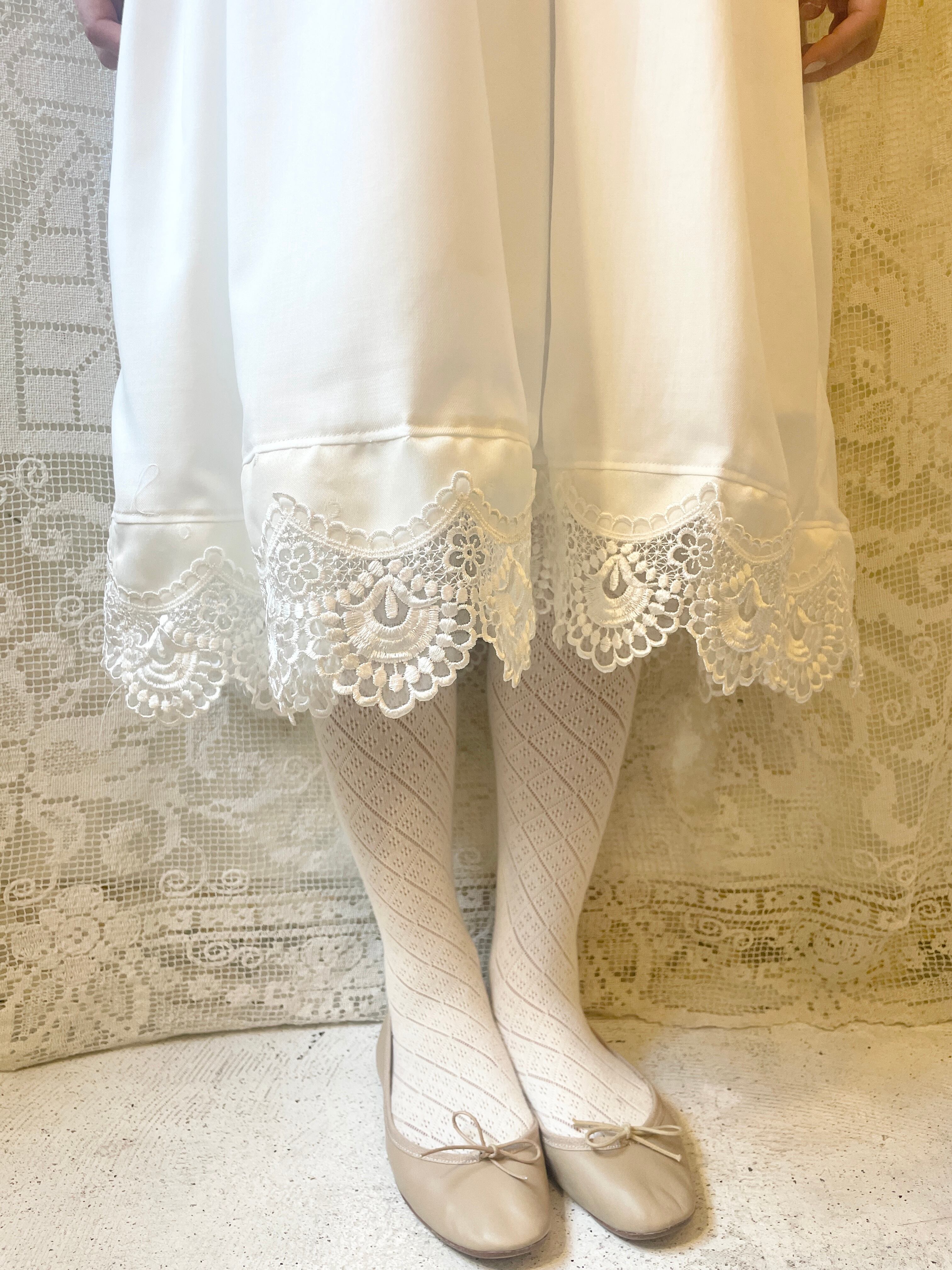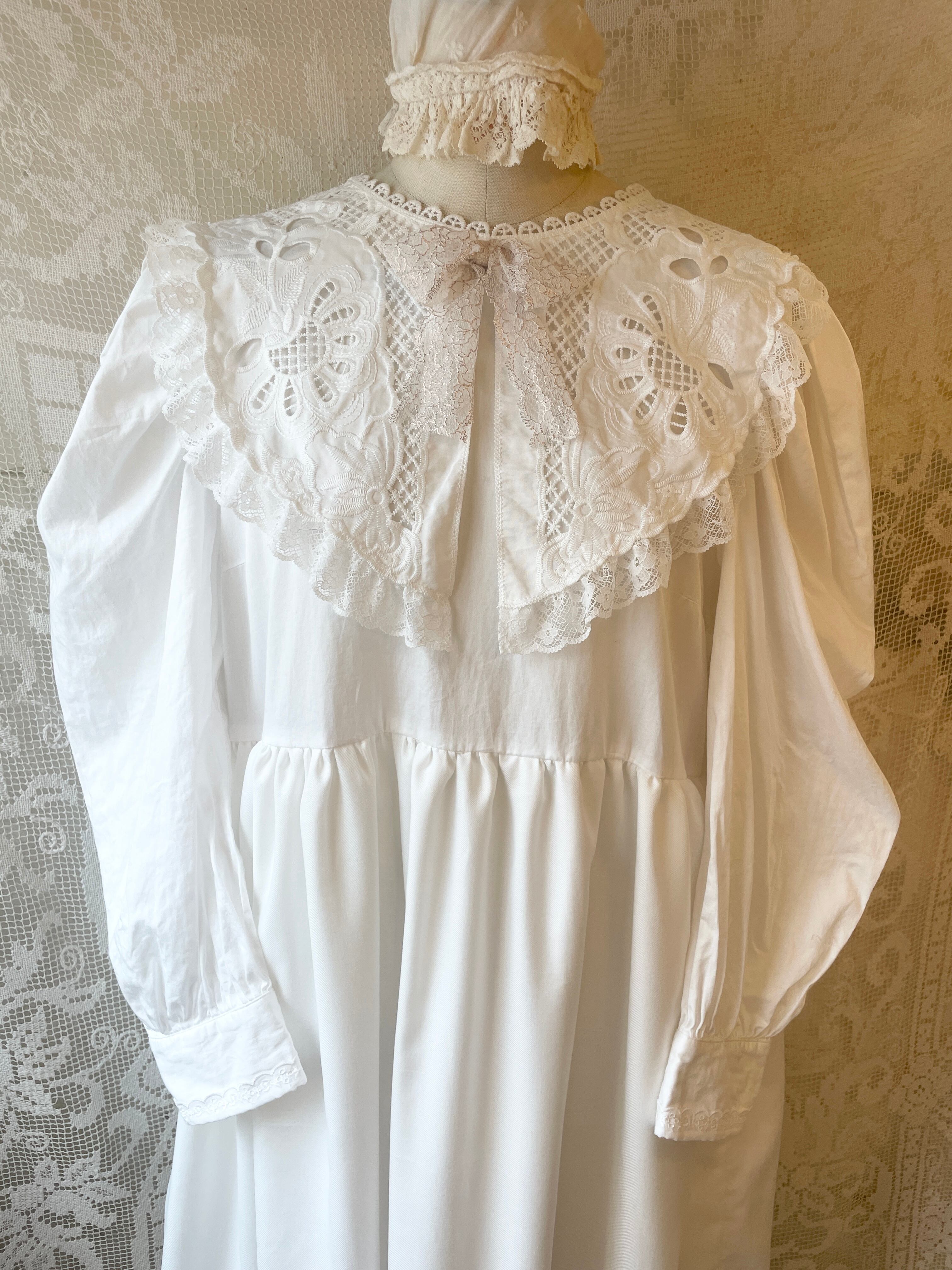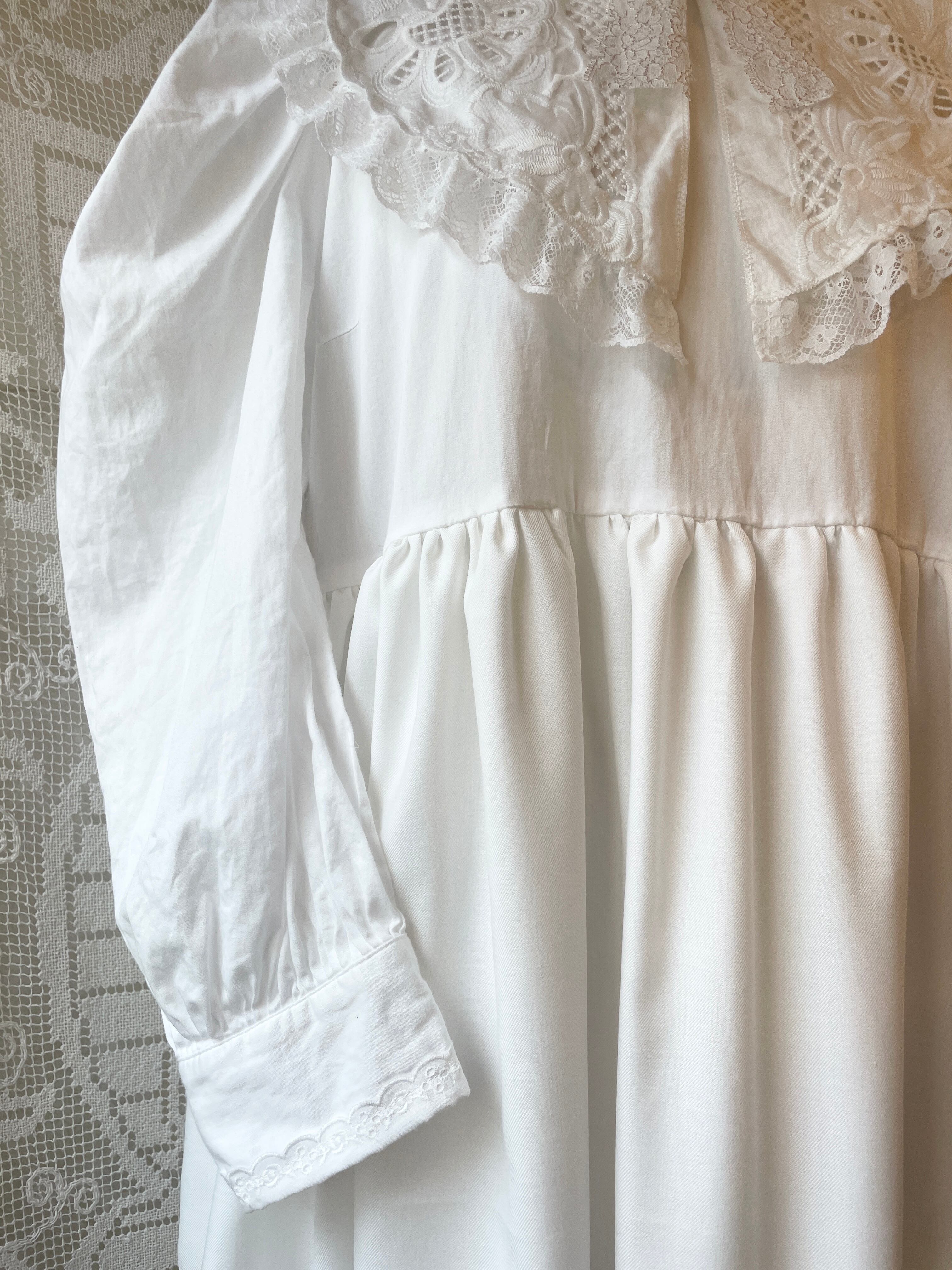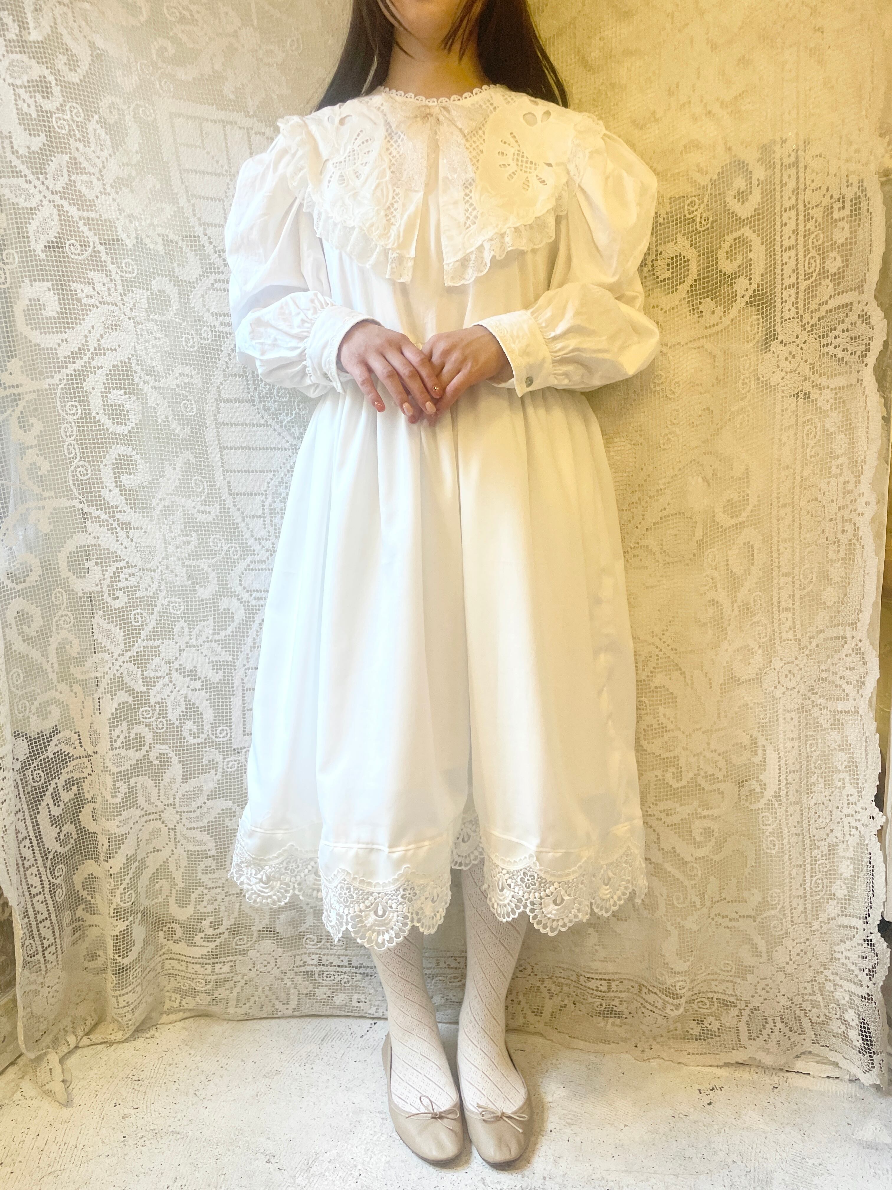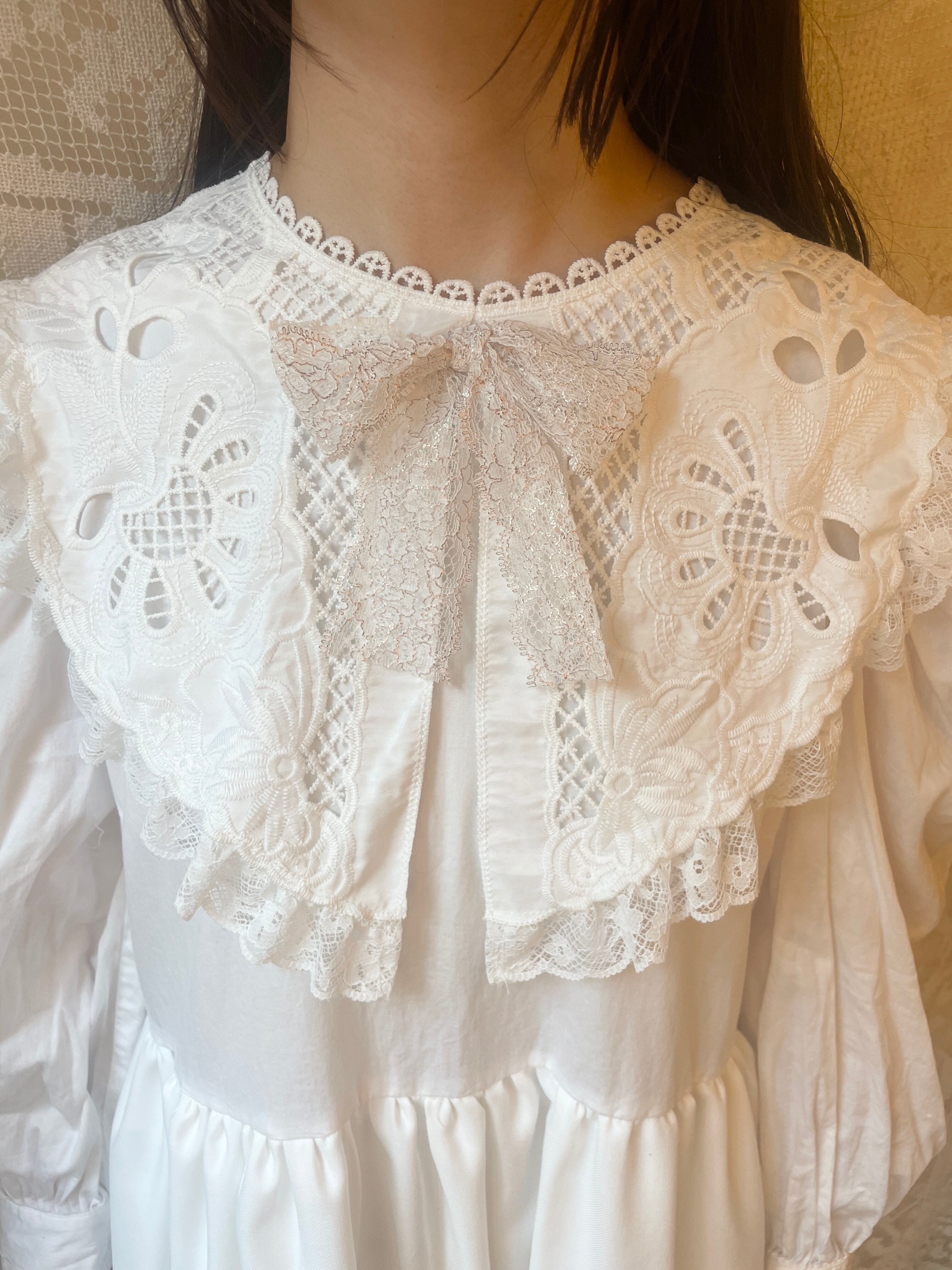 大きな刺繍襟に控えめなピンクラメが入ったレースリボンがロマンティックで可愛いです。